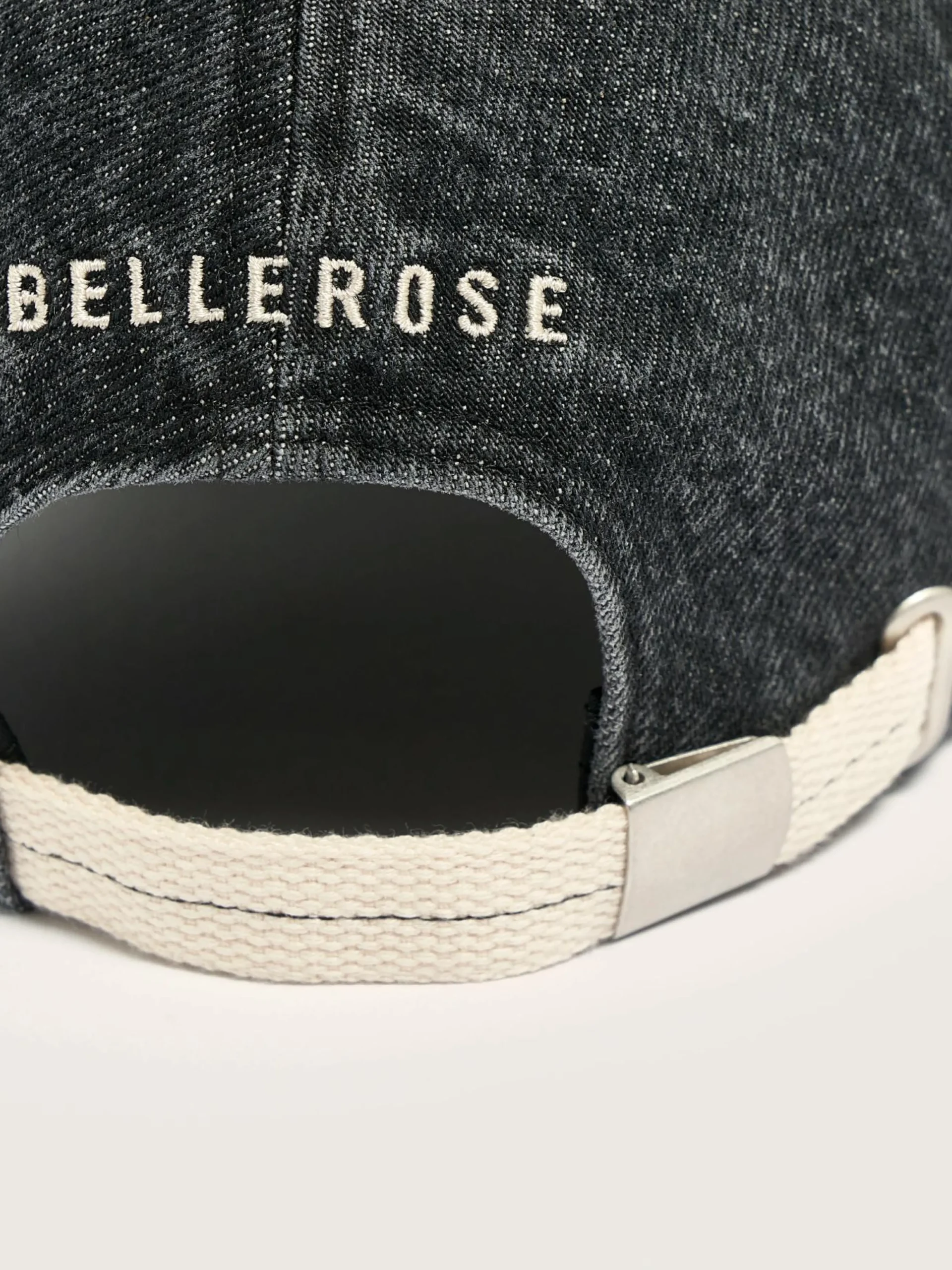 Klassieke 6-panel cap van zwart katoendenim, met Bellerose-borduursel op de achterkant.