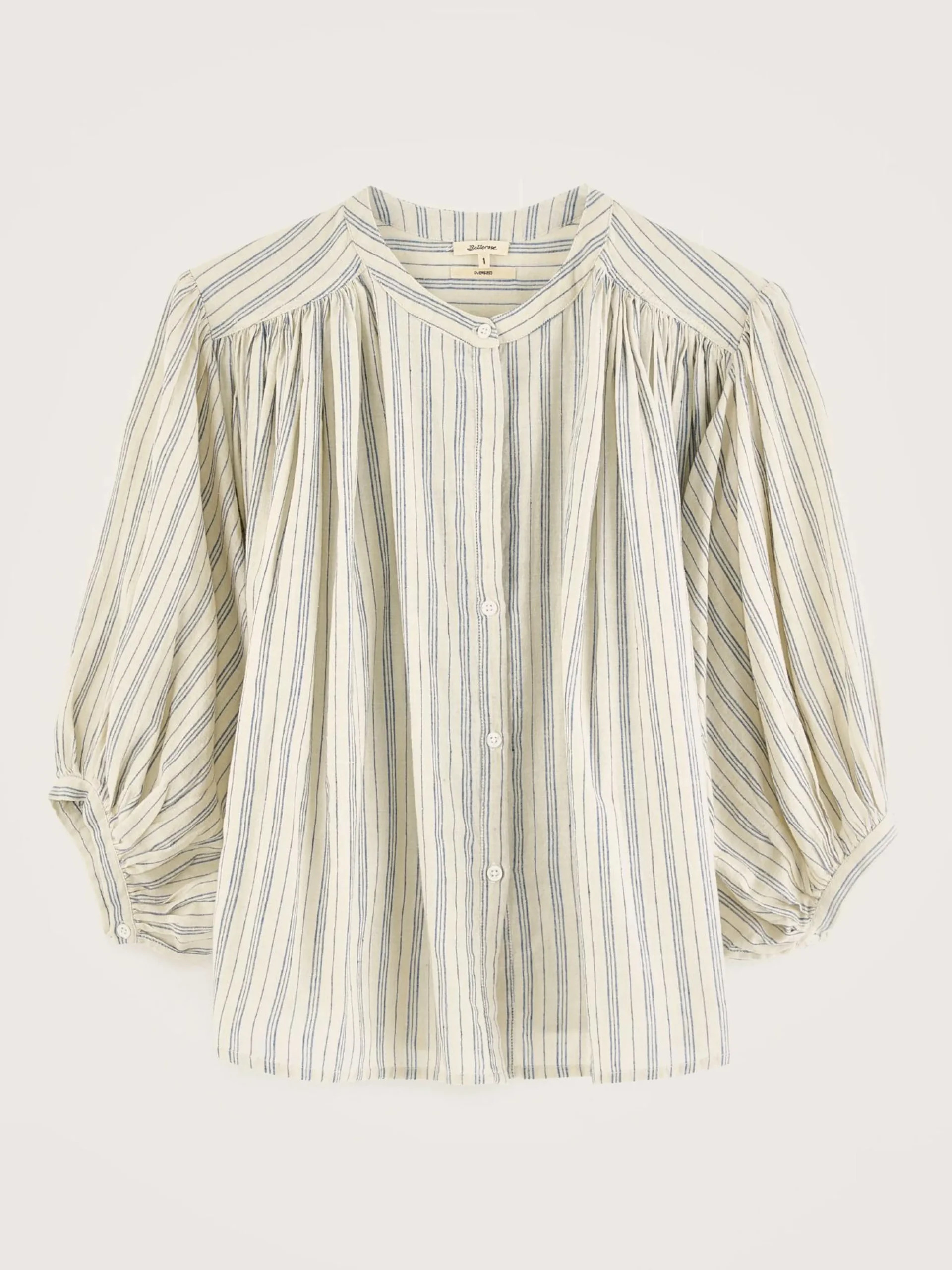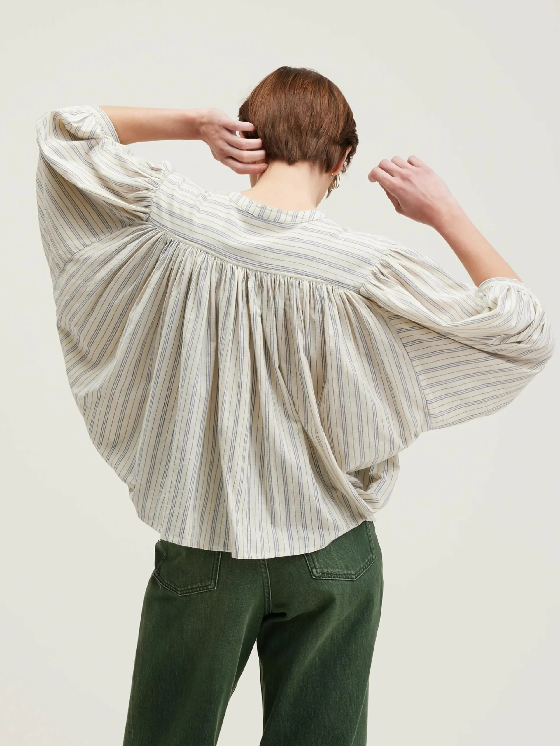 Oversizede, cropped blouse van gestreept katoen, met gefronste details.