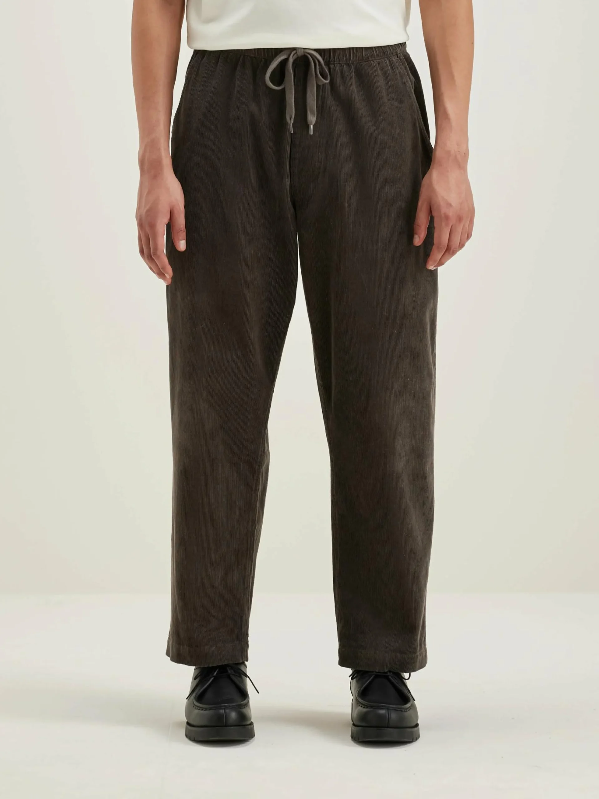 Relaxede broek in baggy-stijl, met lage taille en rechte pijpen, van donkergrijs corduroykatoen.