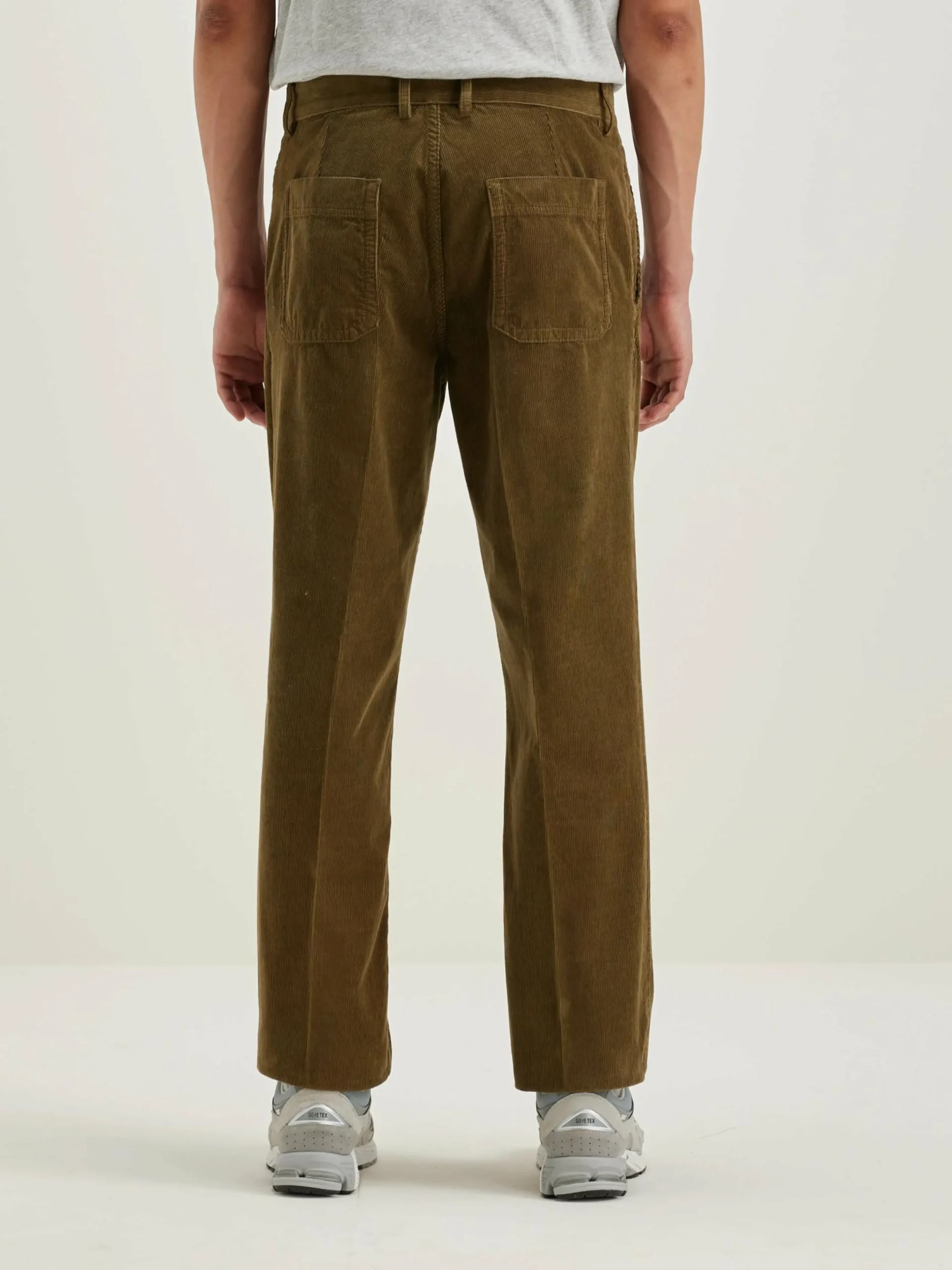 Regular fit, broek met rechte pijpen, van kakigroen baby corduroy katoen.