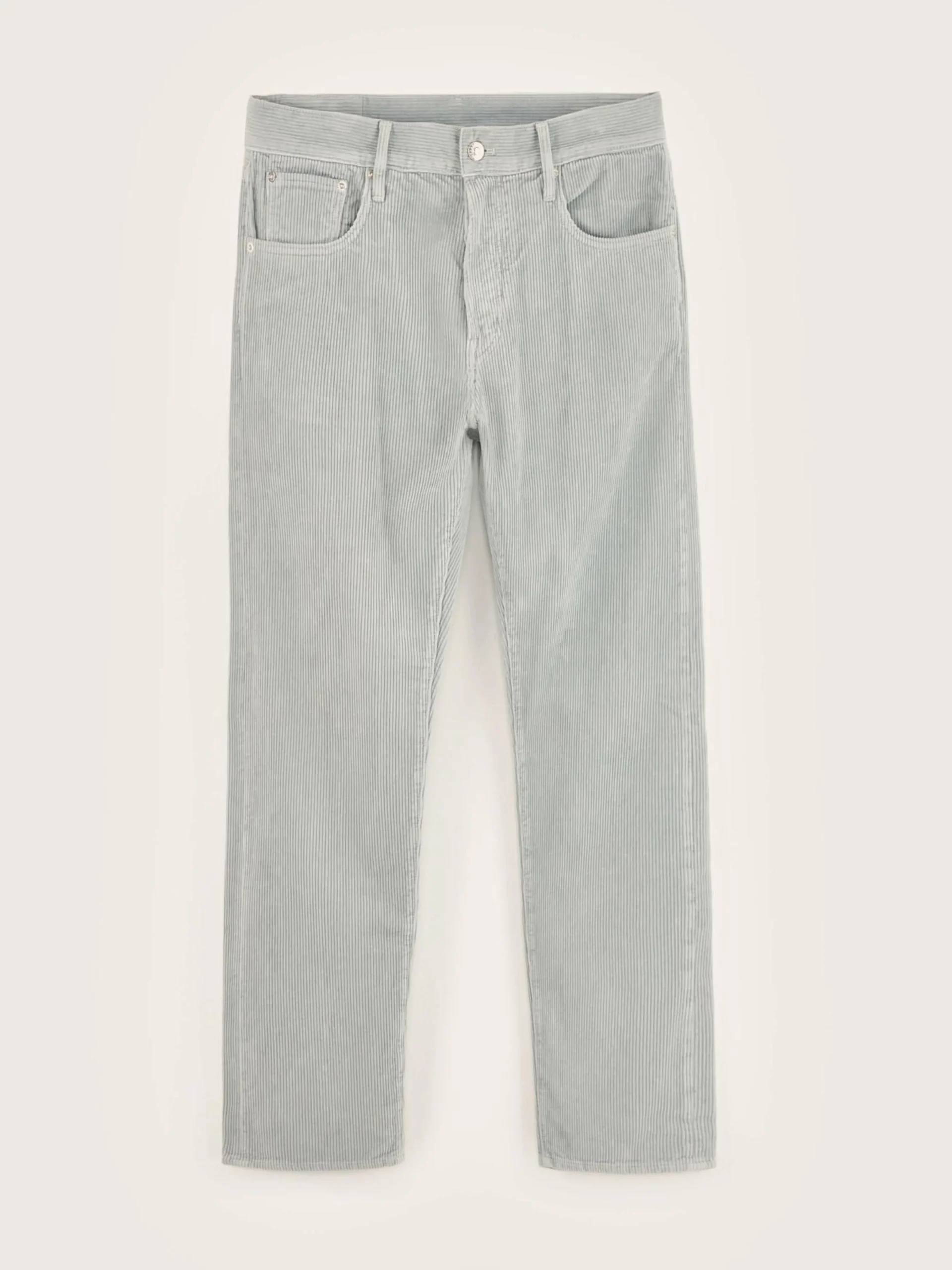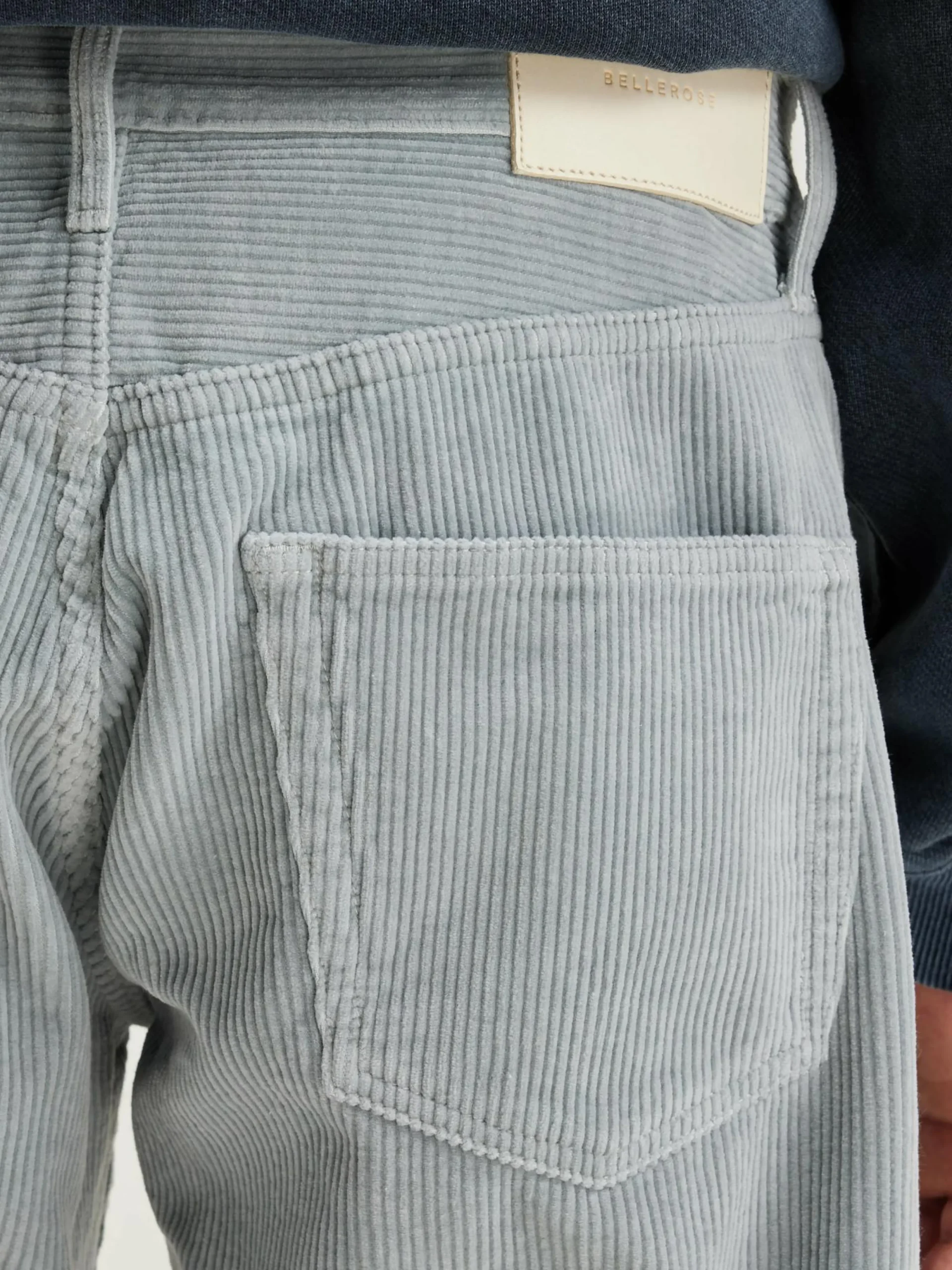 “Dad-style” broek met lage taille en rechte pijpen, in five-pocket uitvoering, van mistblauw corduroy katoen.