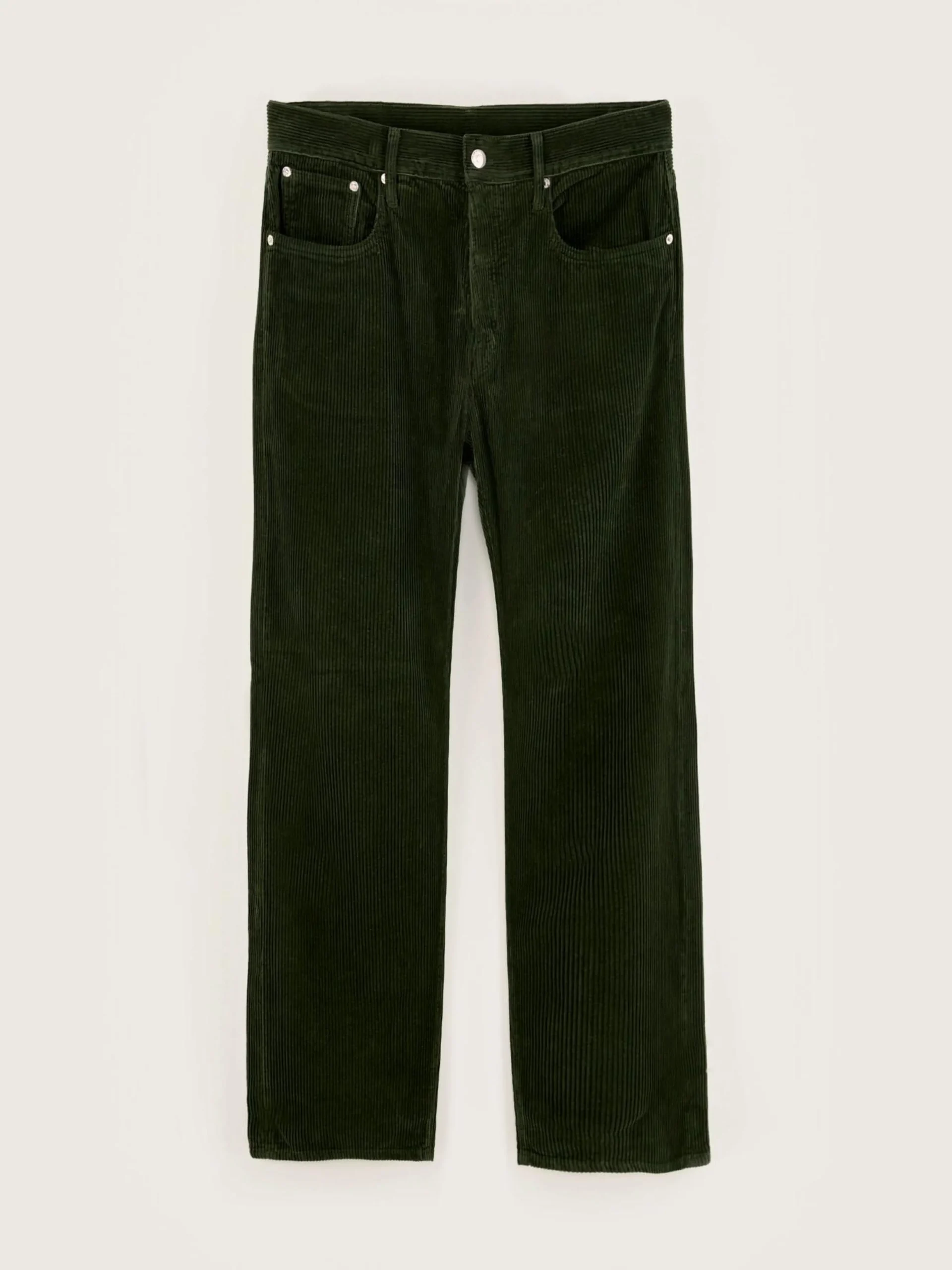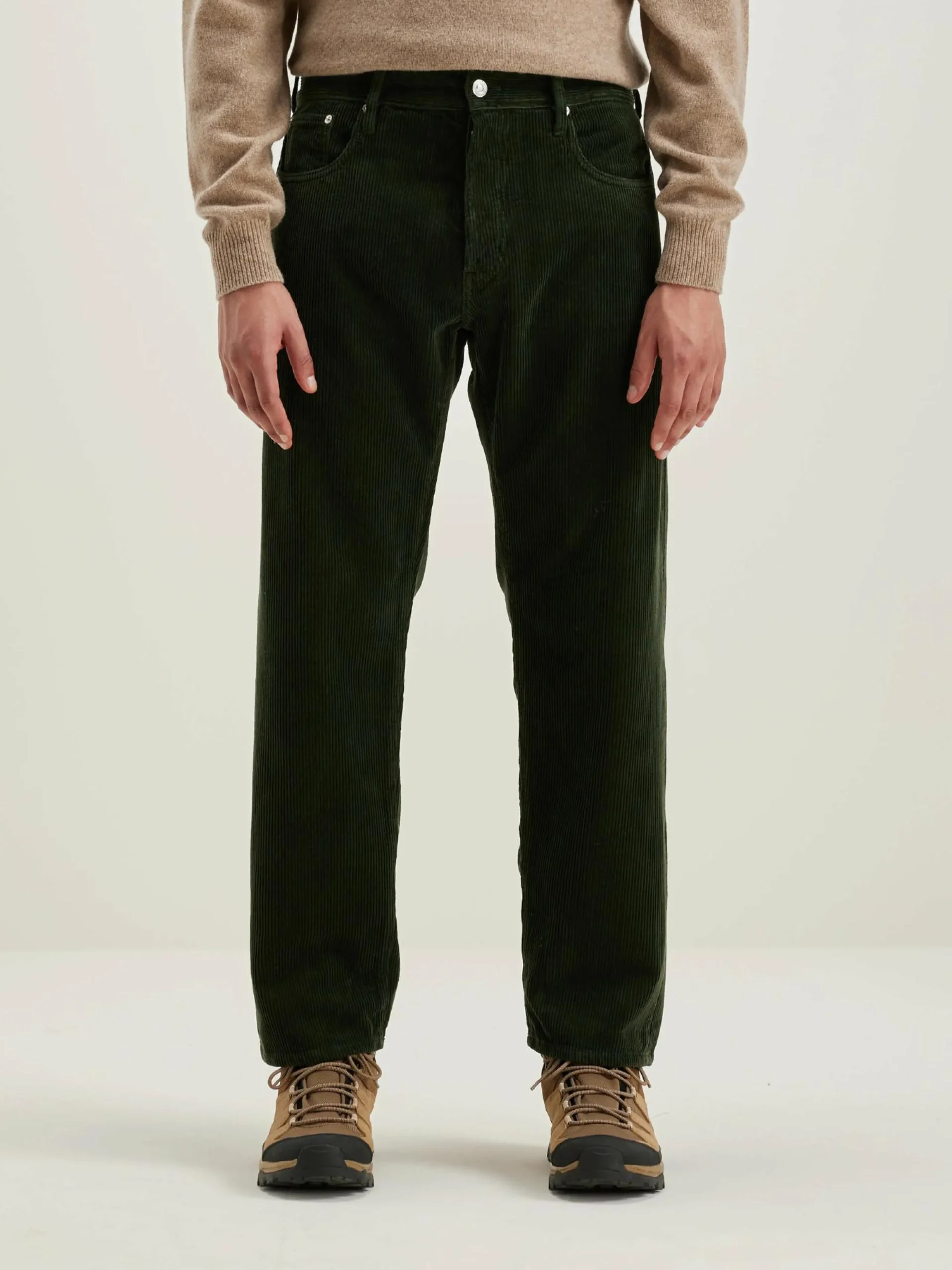 “Dad-style” broek met lage taille en rechte pijpen, in five-pocket uitvoering, van olijfgroen corduroy katoen.