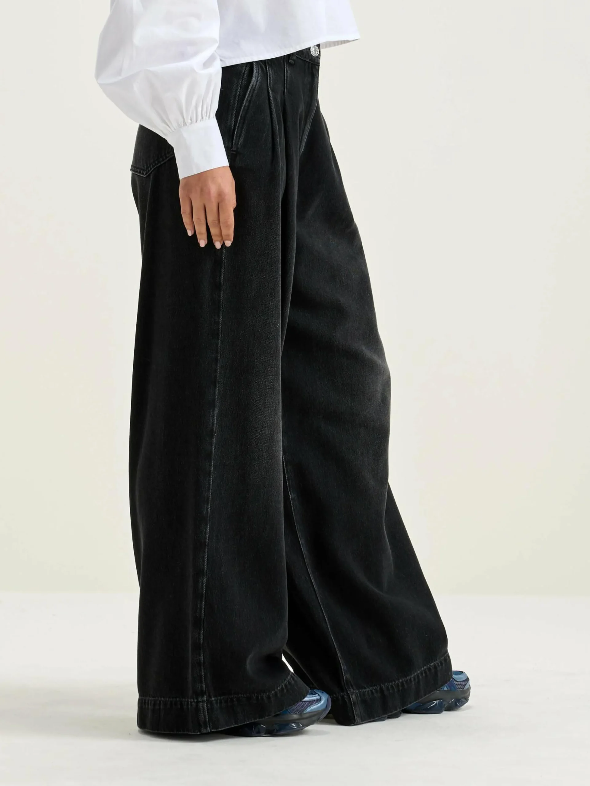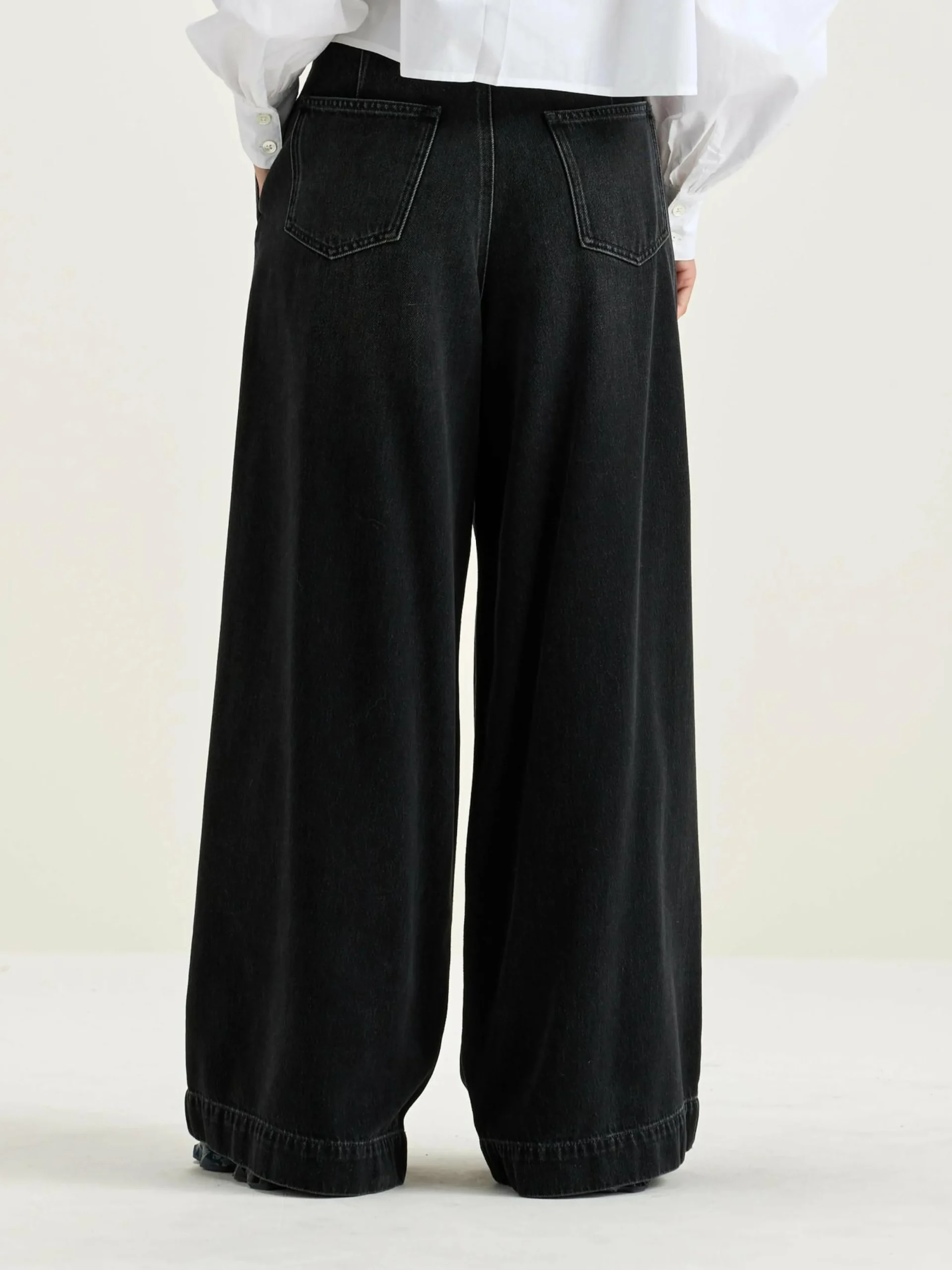 Geplooide high-waist jeans met superwijde pijpen, van zwart stonewashed denim.
