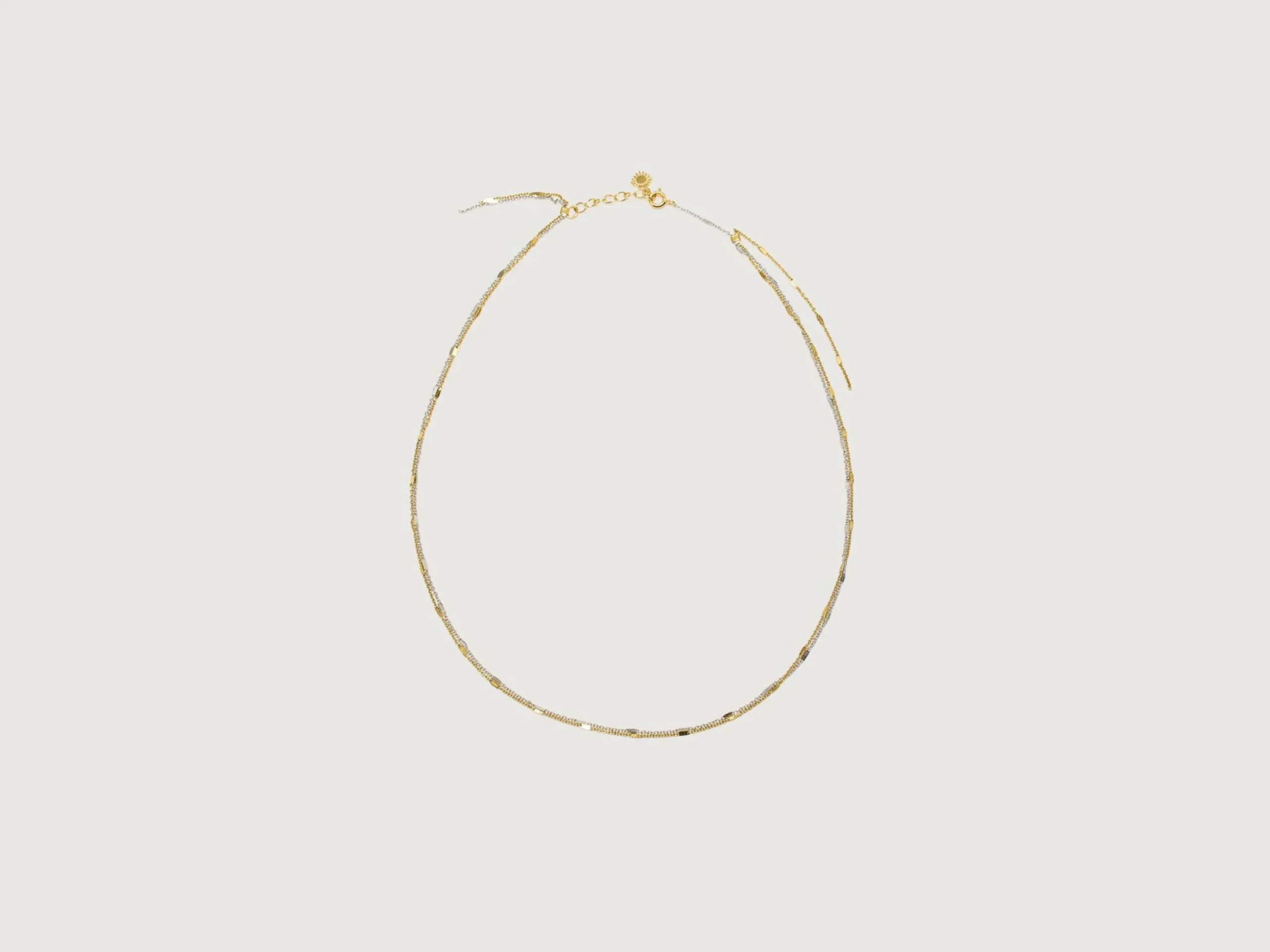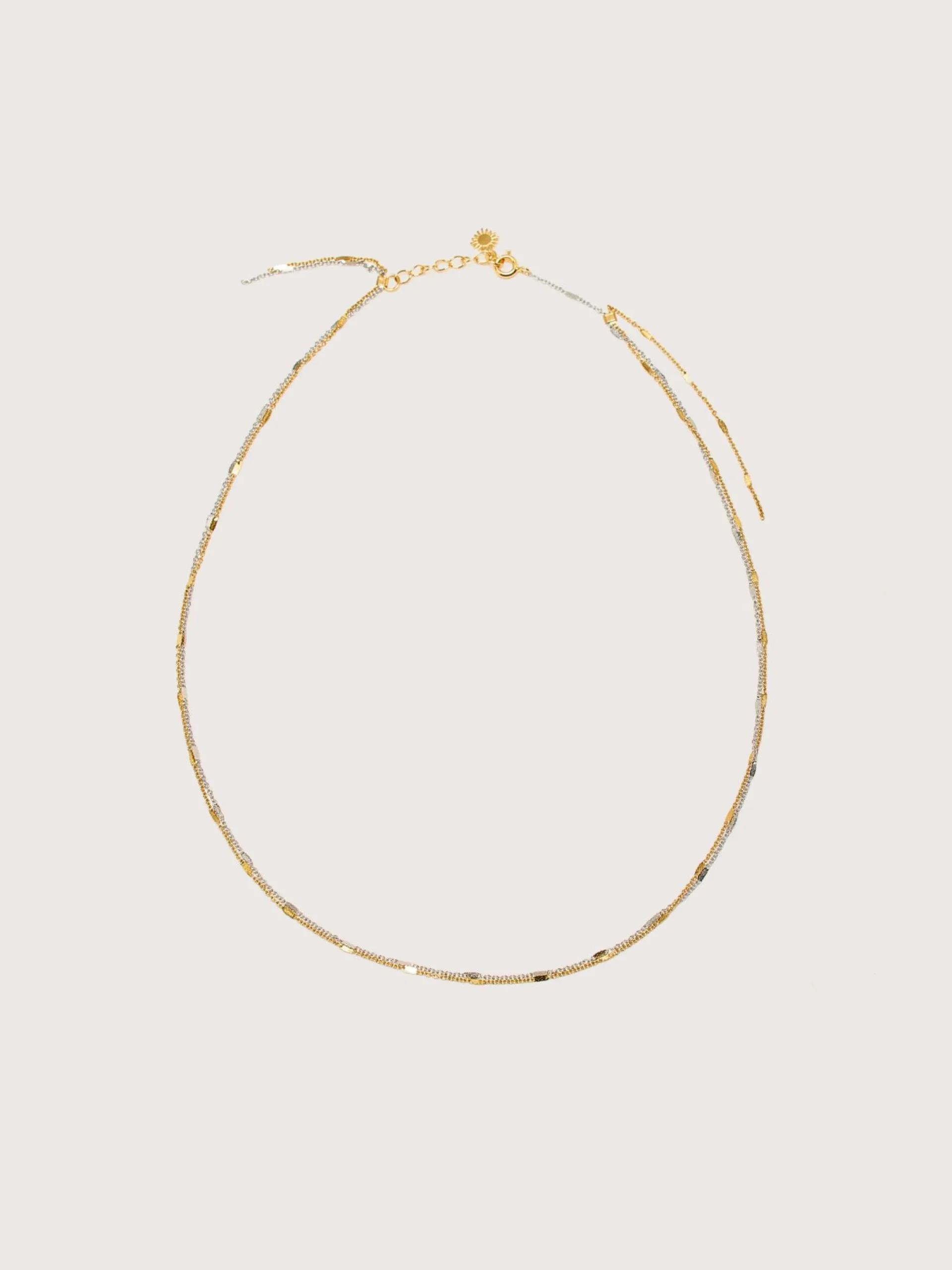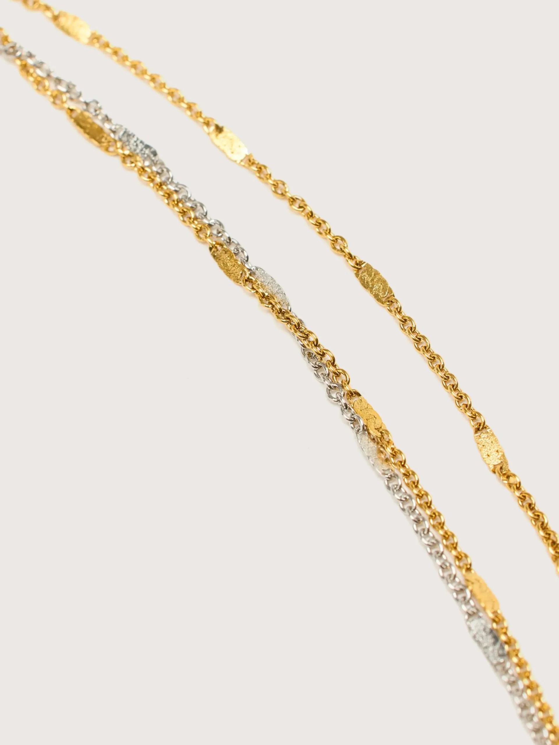 The Vadi Jewels Lydia necklace is a double chain of gold and silver.