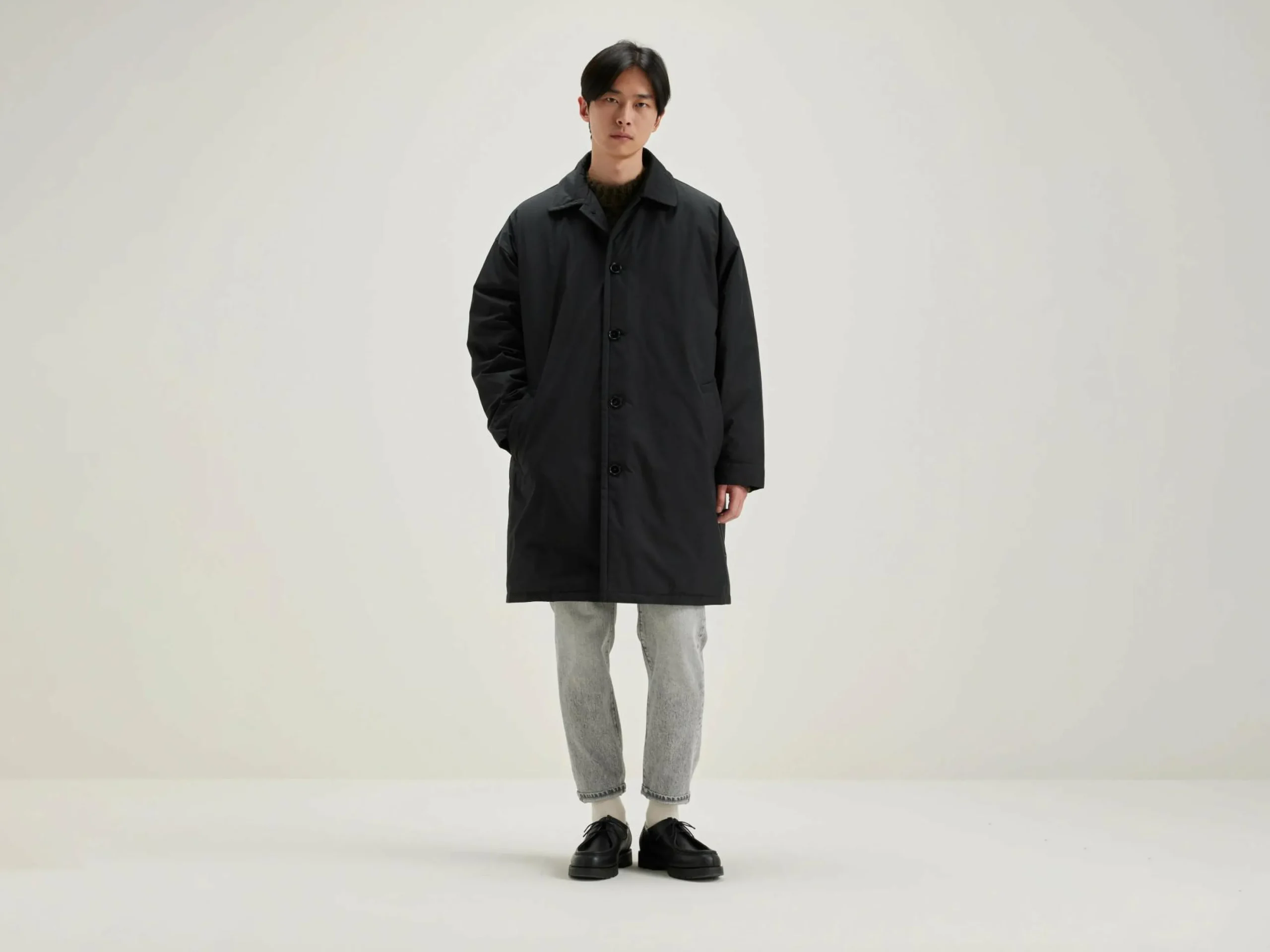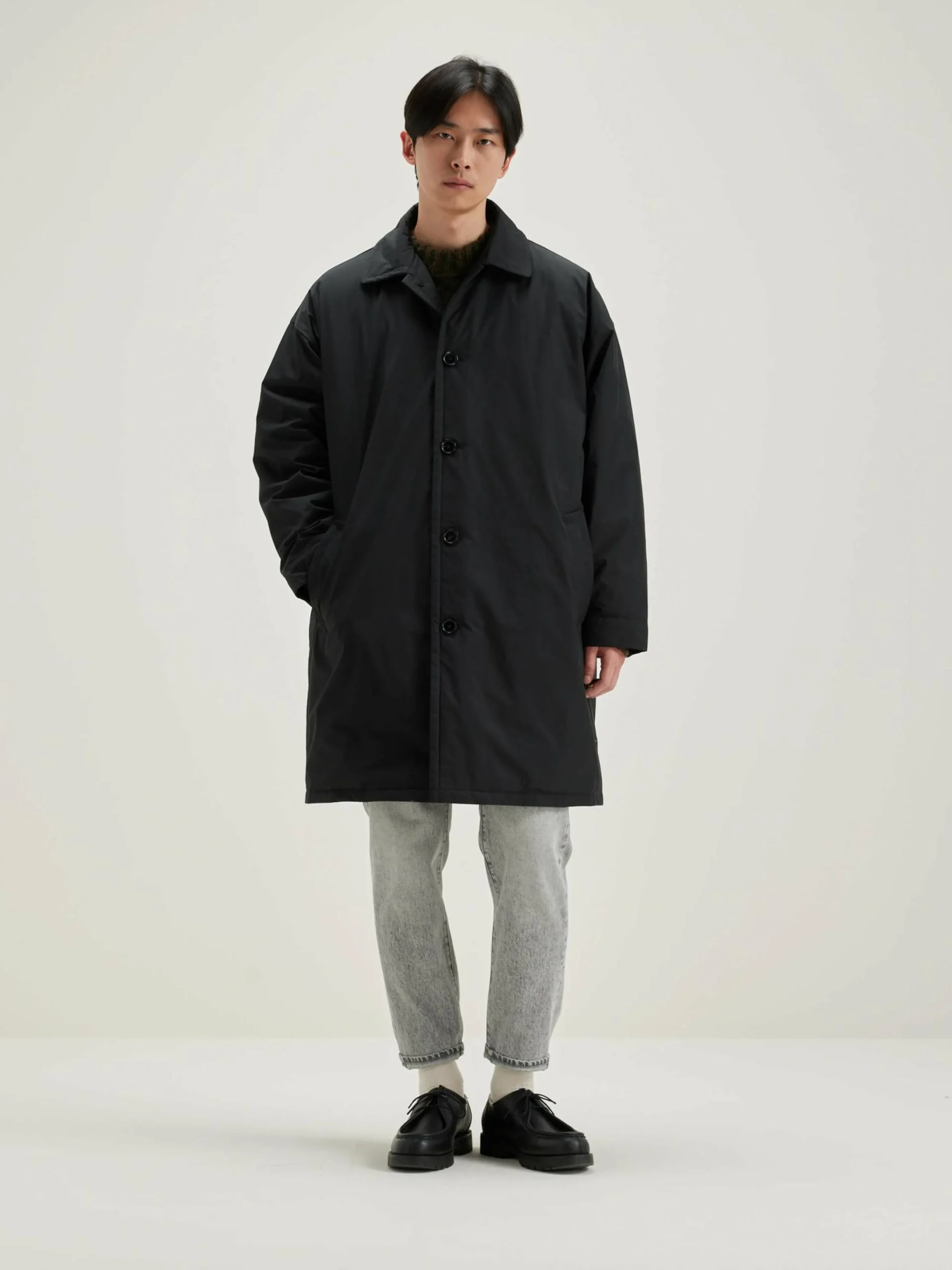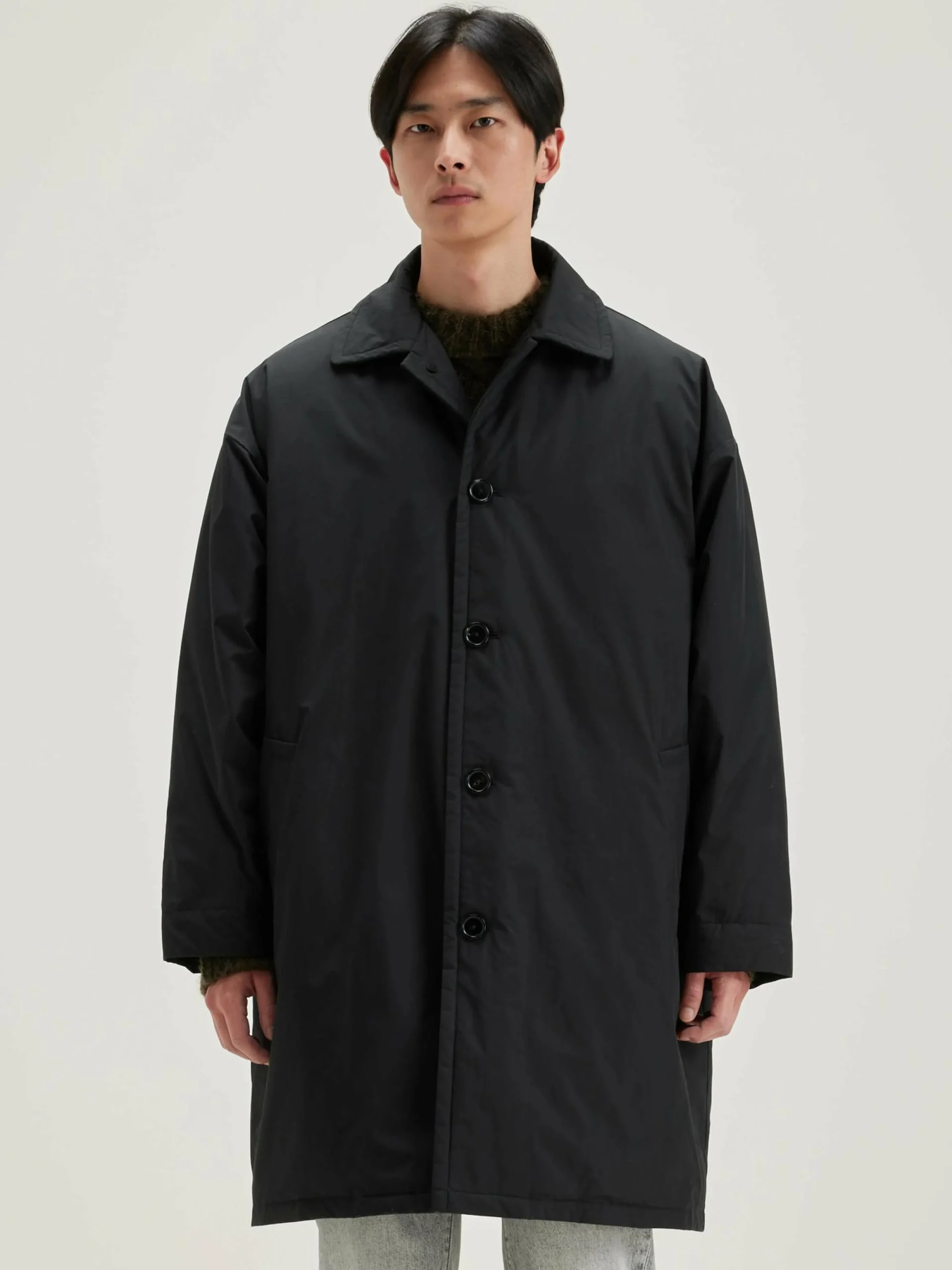 Oversizede, rechte parka van zwarte popeline katoenmix.