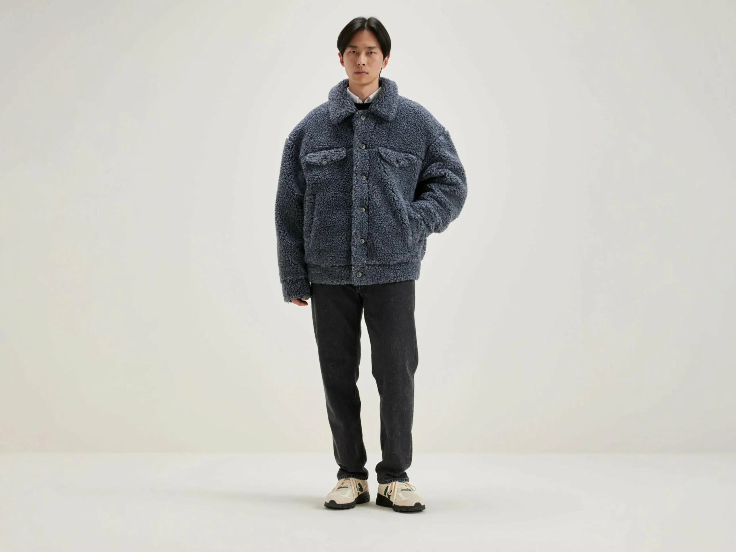 Oversizede jas geïnspireerd door denimjassen, van antracietgrijze chiné teddy.