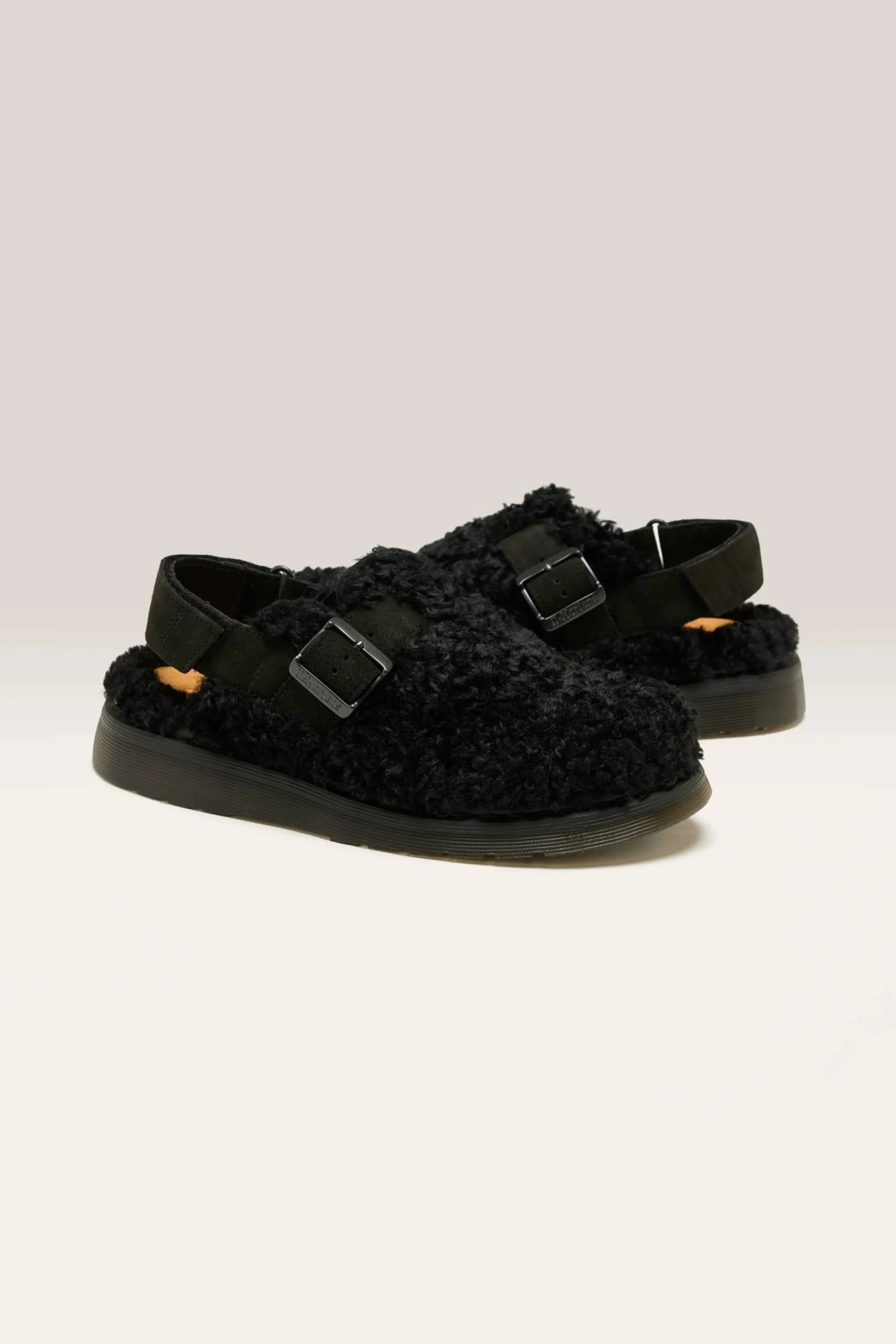 The Dr. Martens Jorge II mules feature a deluxe borg faux fur fleece upper design with soft suede details.