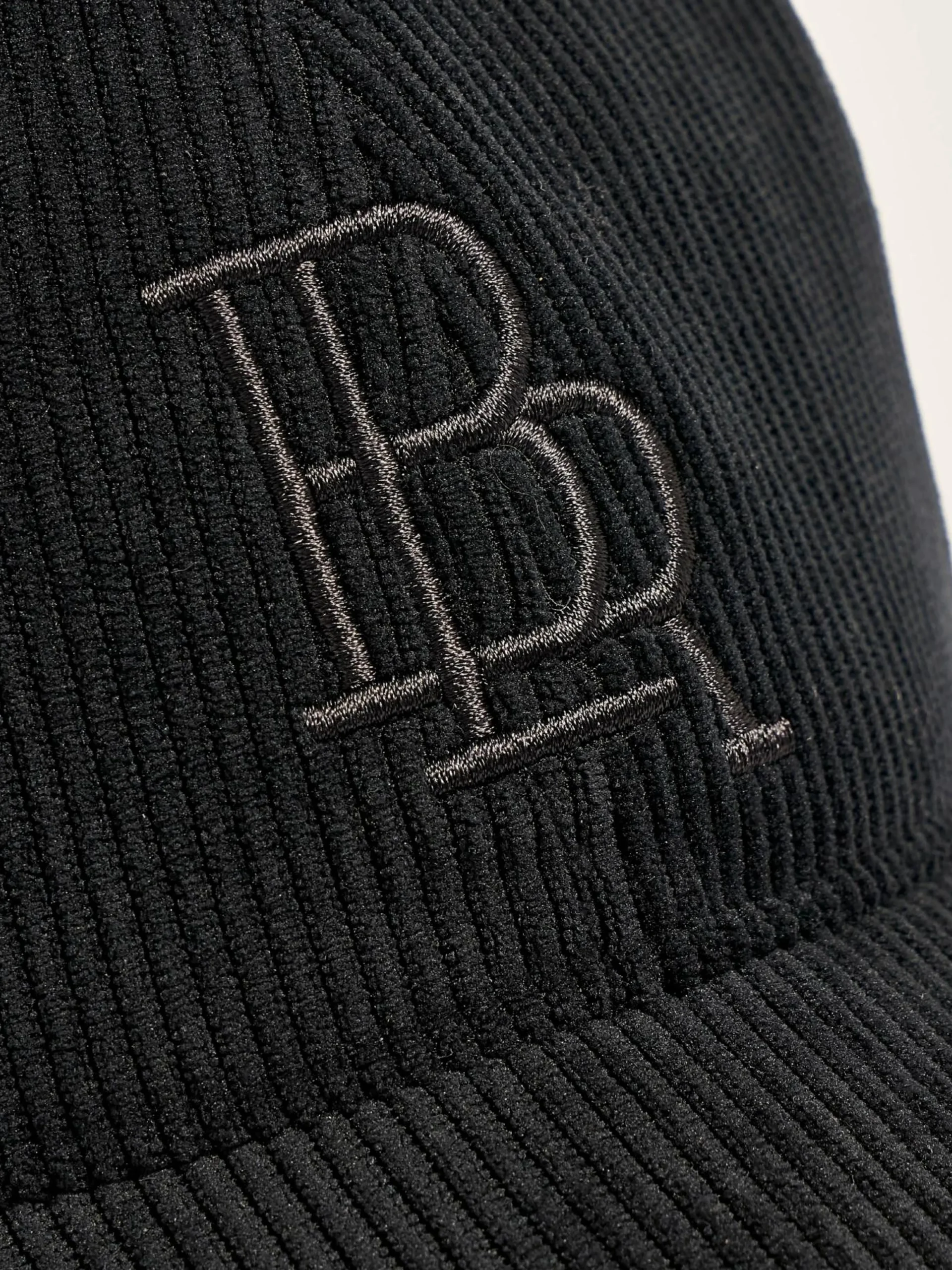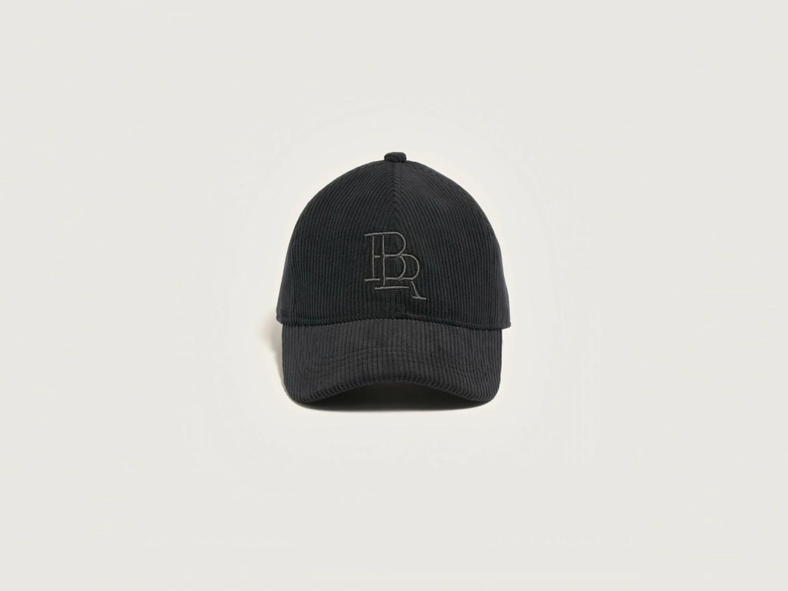 Klassieke honkbalpet van zwart corduroy met BLR-borduursel op de voorkant.