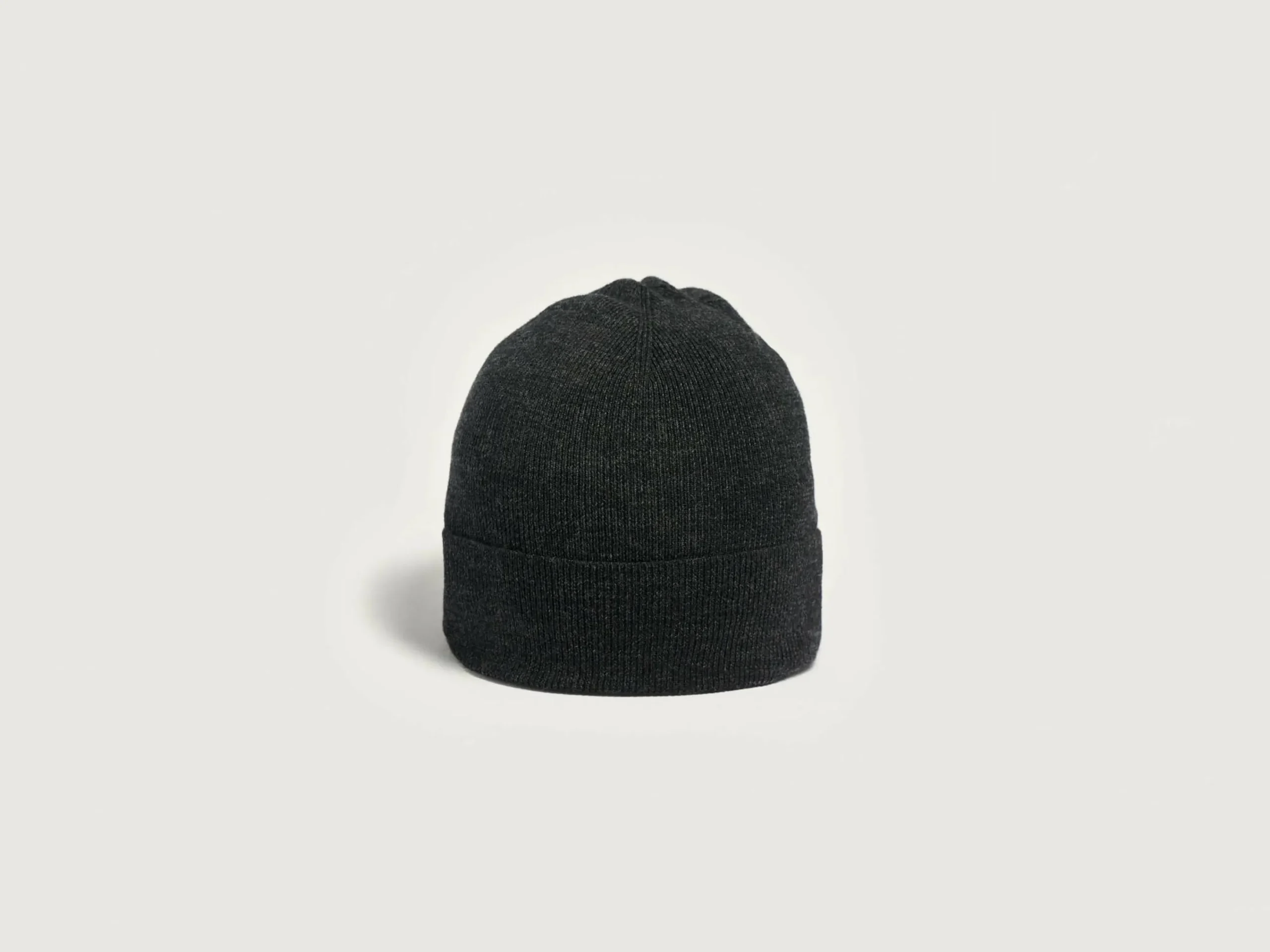 Klassieke geribbelde beanie van off-black, superfijne merinowol.
