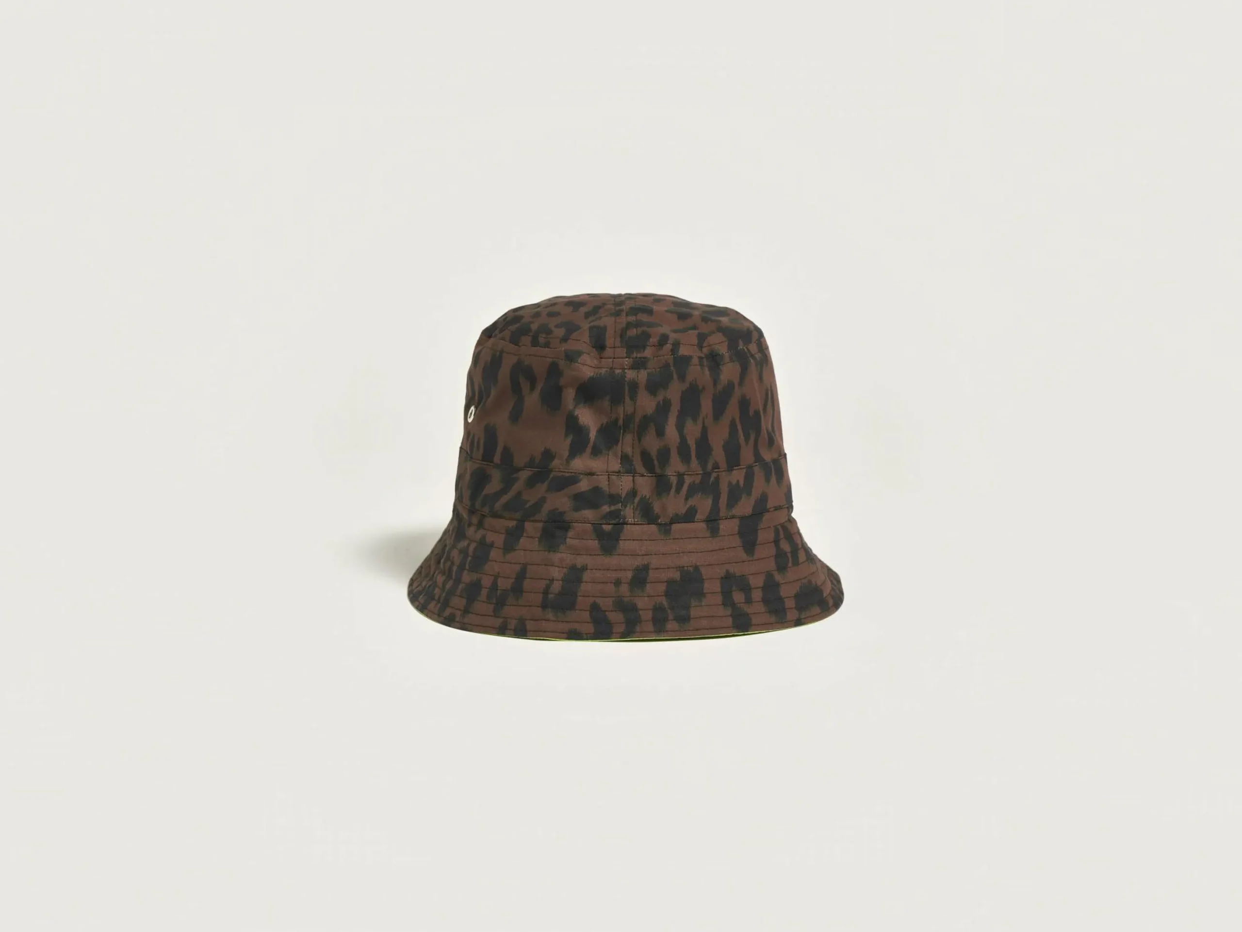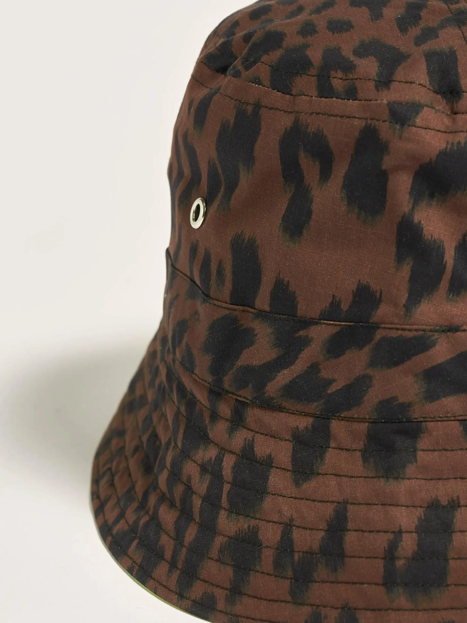 Omkeerbare vissershoed met luipaardprint en binnenzak.