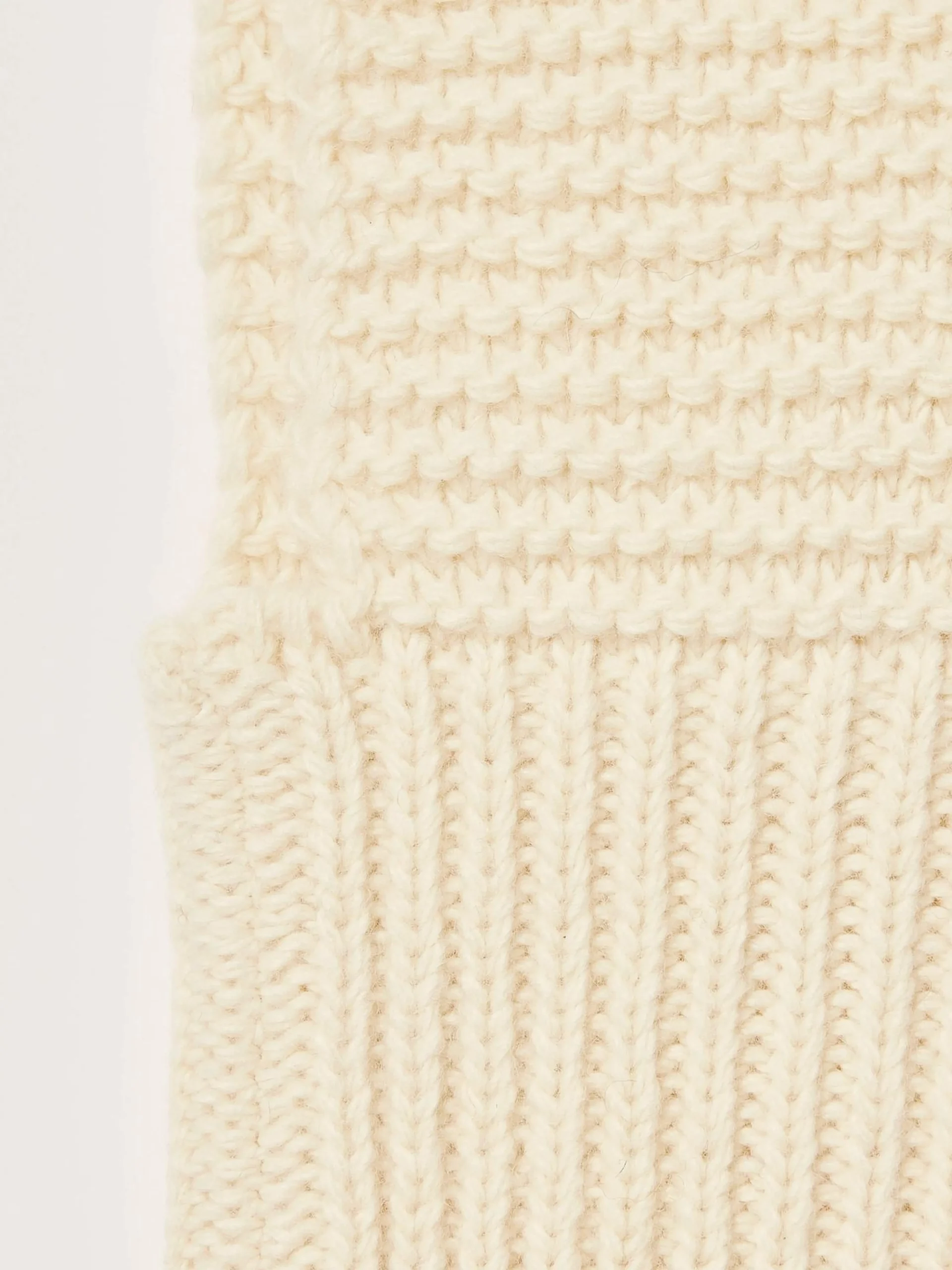 Ivoorwitte, gebreide balaclava van dik garen, met Bellerose-label op de achterkant.