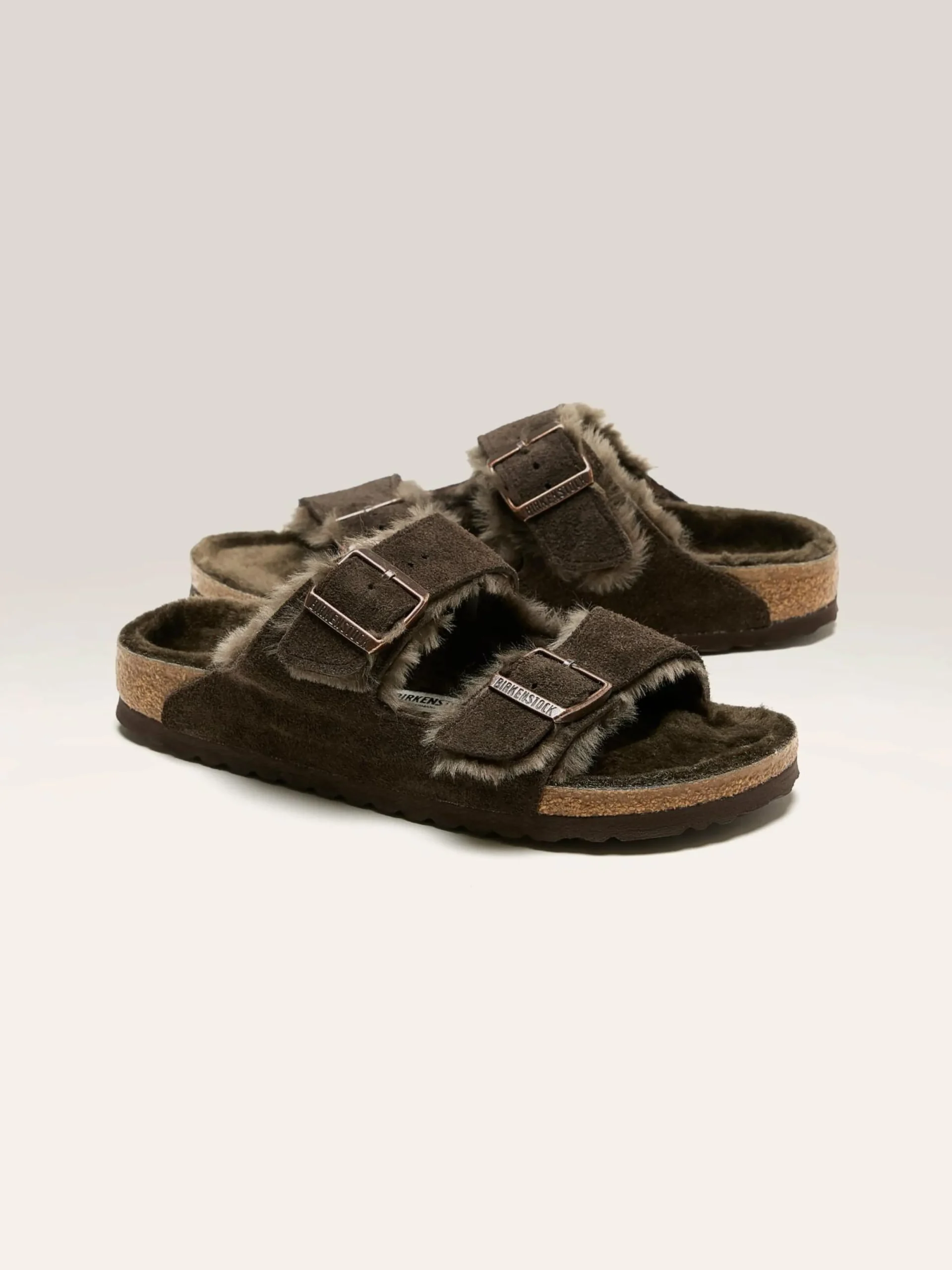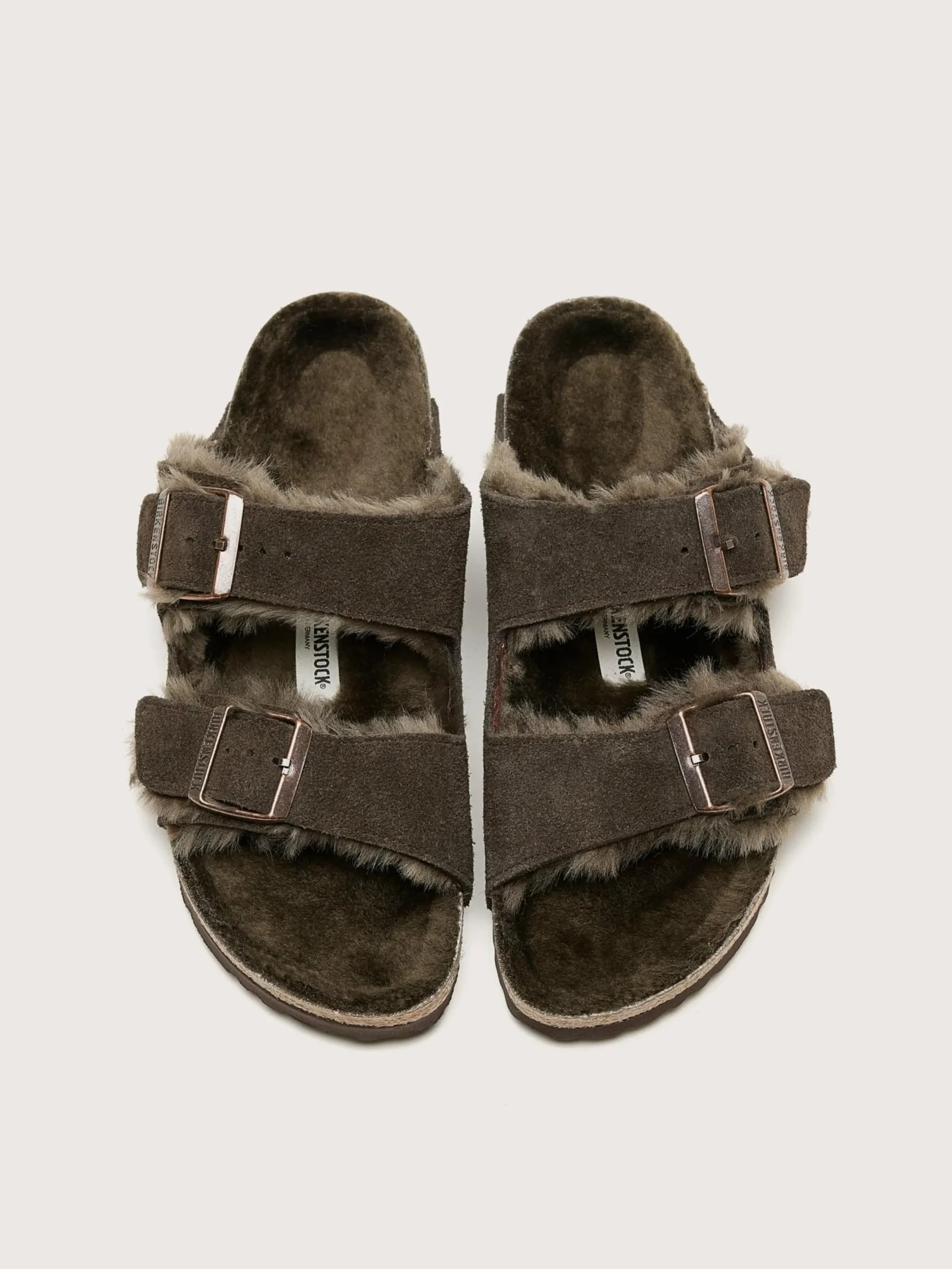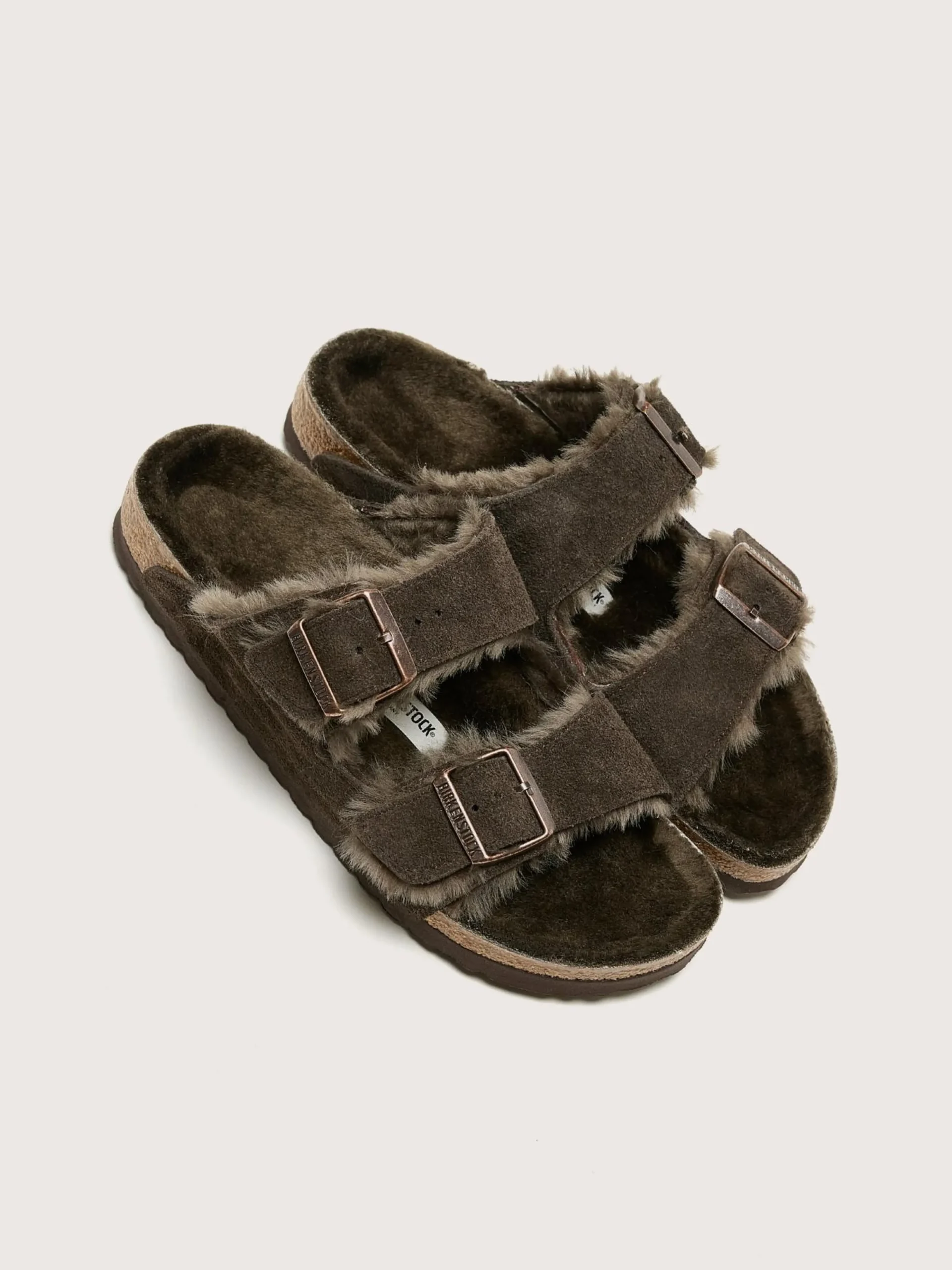 De Birkenstock Arizona Shearling sandalen hebben een suède bovenwerk en een anatomisch gevormd voetbed gevoerd met zacht lamsvel.