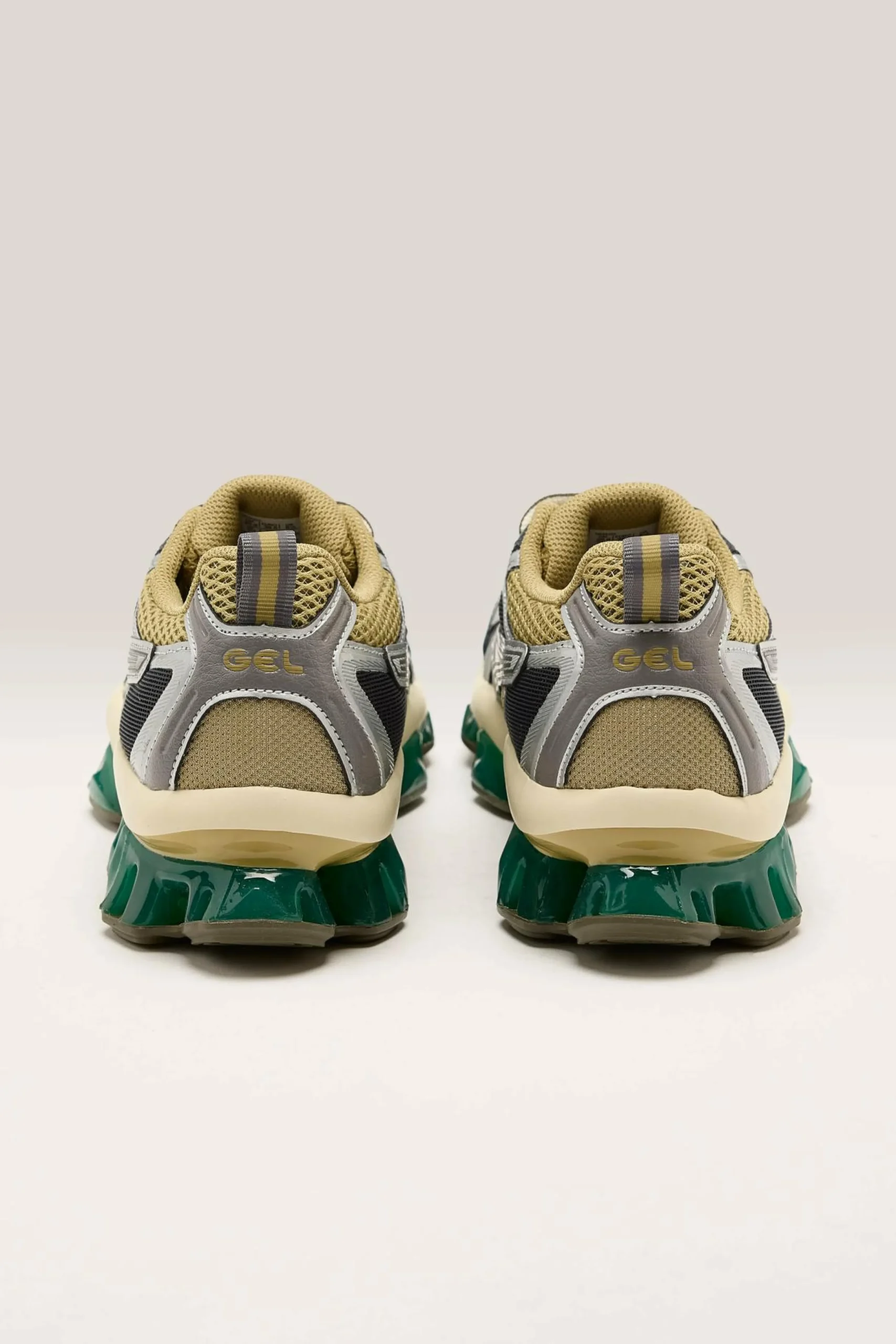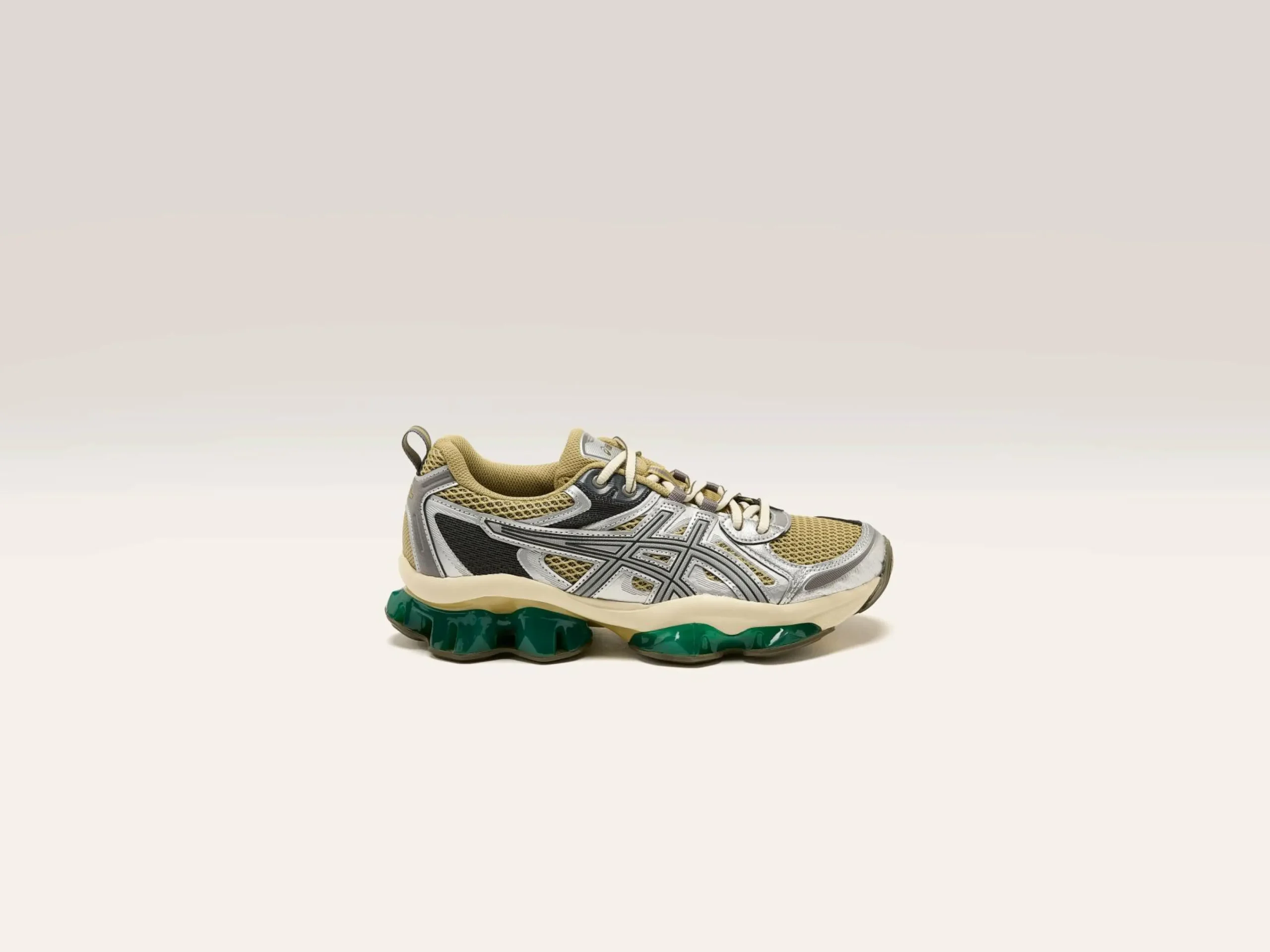The Asics Gel-Quantum Kinetic sportstyle sneakers feature experimental engineering with synthetic leathers and mesh panels on a cushioned midsole.