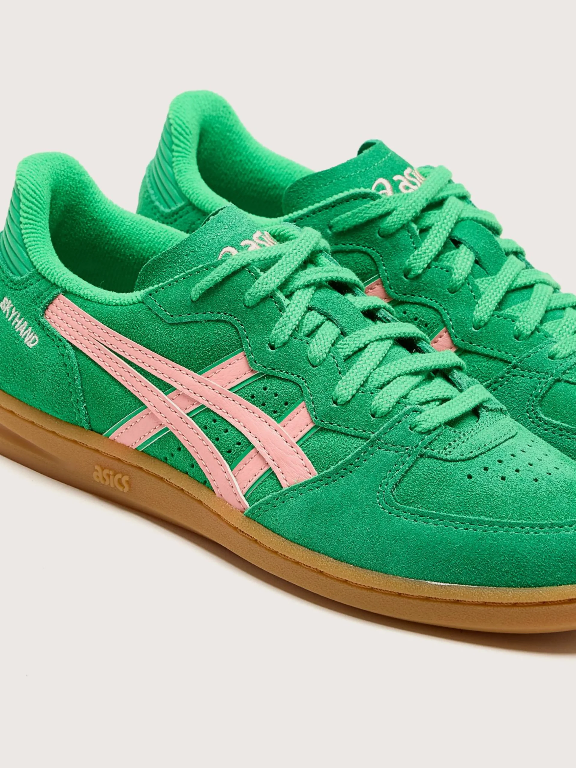 De Asics Skyhand OG handbal heritage sneakers hebben een slank court silhouet met een retro suède bovenwerk.