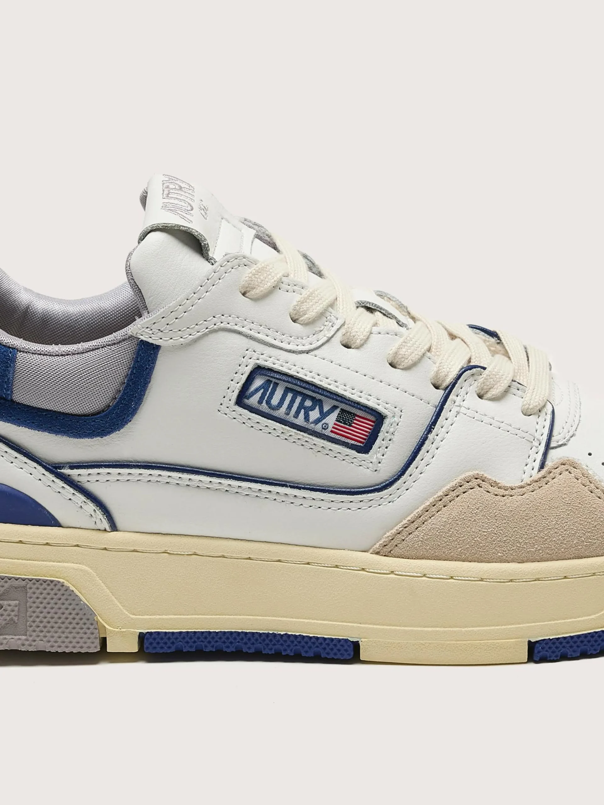 De Autry CLC Low zijn op basketbal geïnspireerde sneakers met een lederen en suède bovenwerk, een gewatteerde kraag van mesh en een verhoogde rubberen zool.