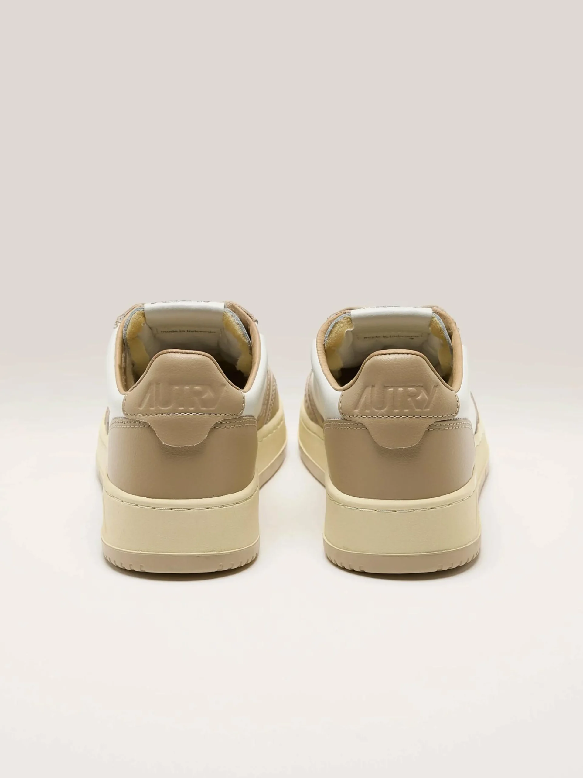 De Autry Medalist Low Bicolor sneakers hebben een soepel wit en peper lederen bovenwerk met een geperforeerde neus en een rubberen zool in dezelfde kleur.