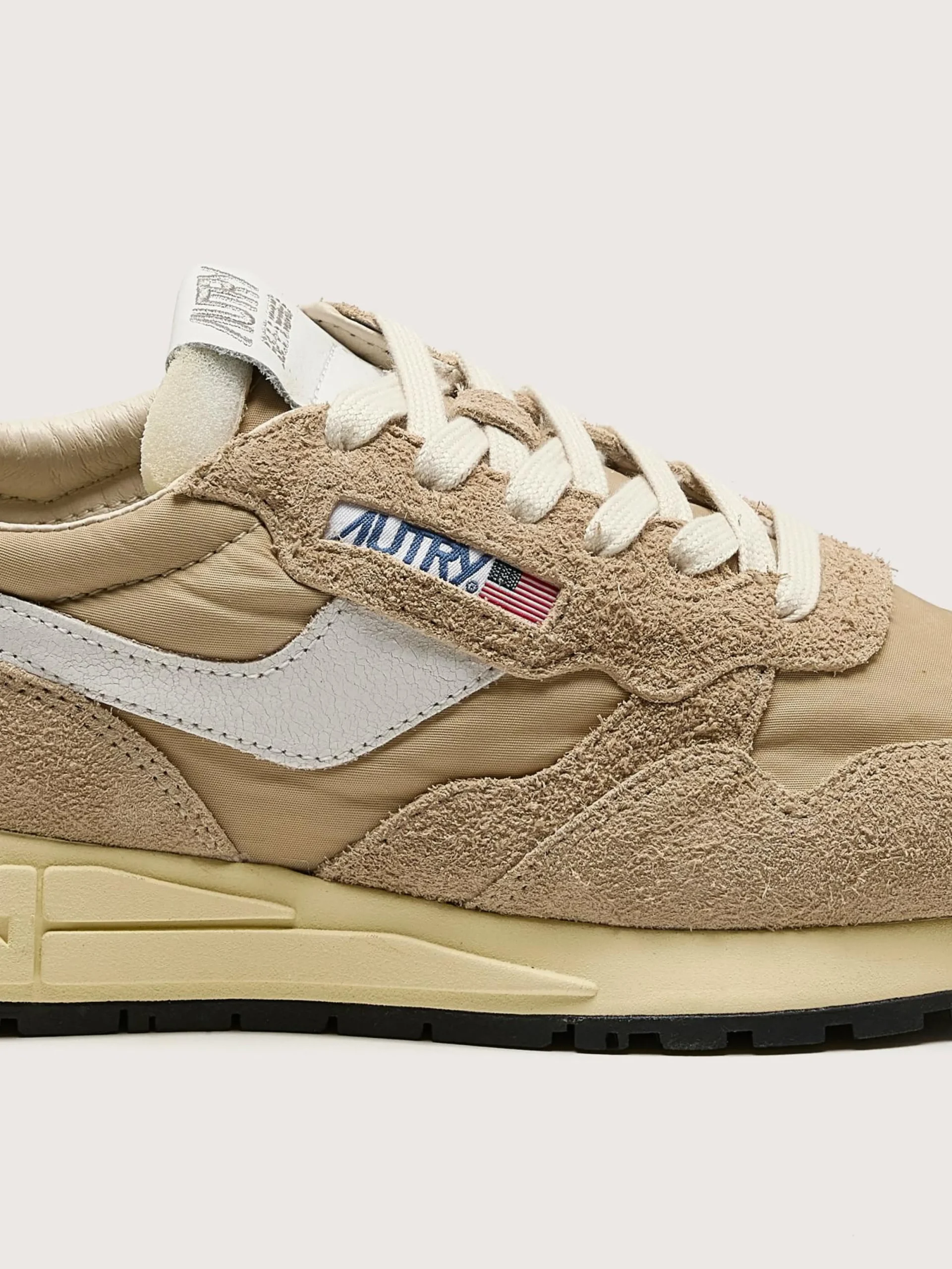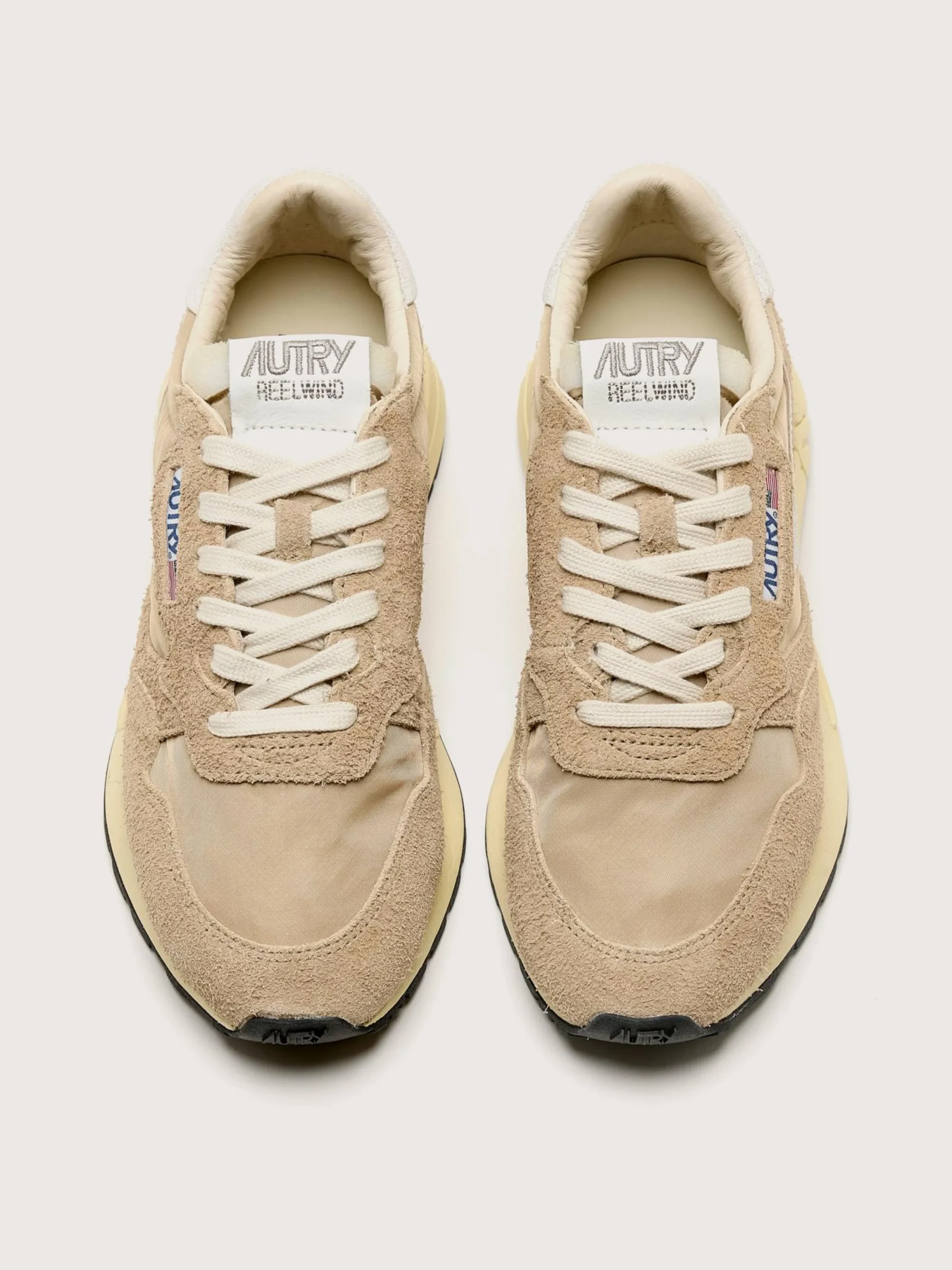 De Autry Reelwind low-top sneakers zijn een unieke vintage esthetiek en een combinatie van nylon, leder en suède.