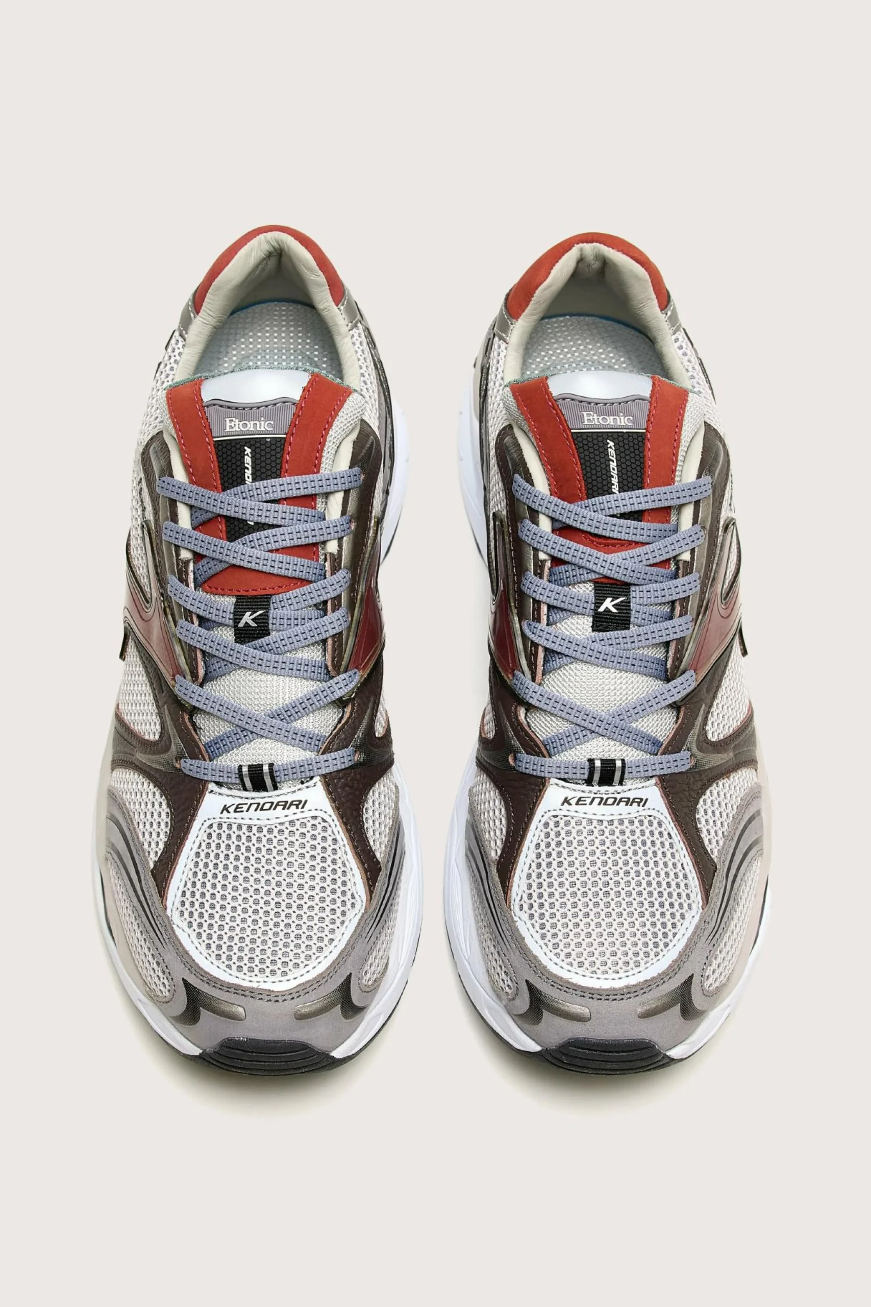 The Etonic Kendari Multi running sneaker features a technical textile and mesh upper with leather panels, tonal laces, and comfort details.