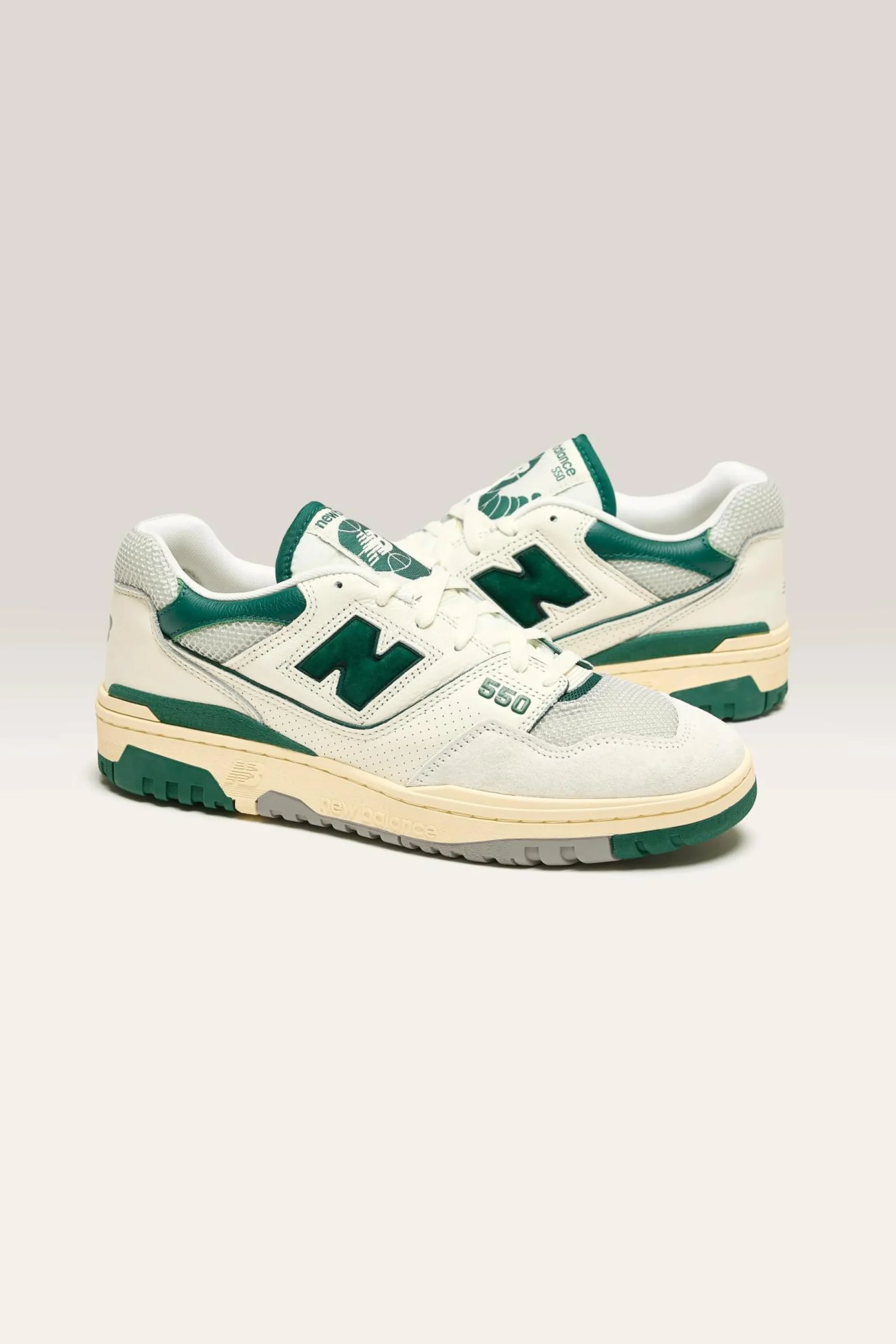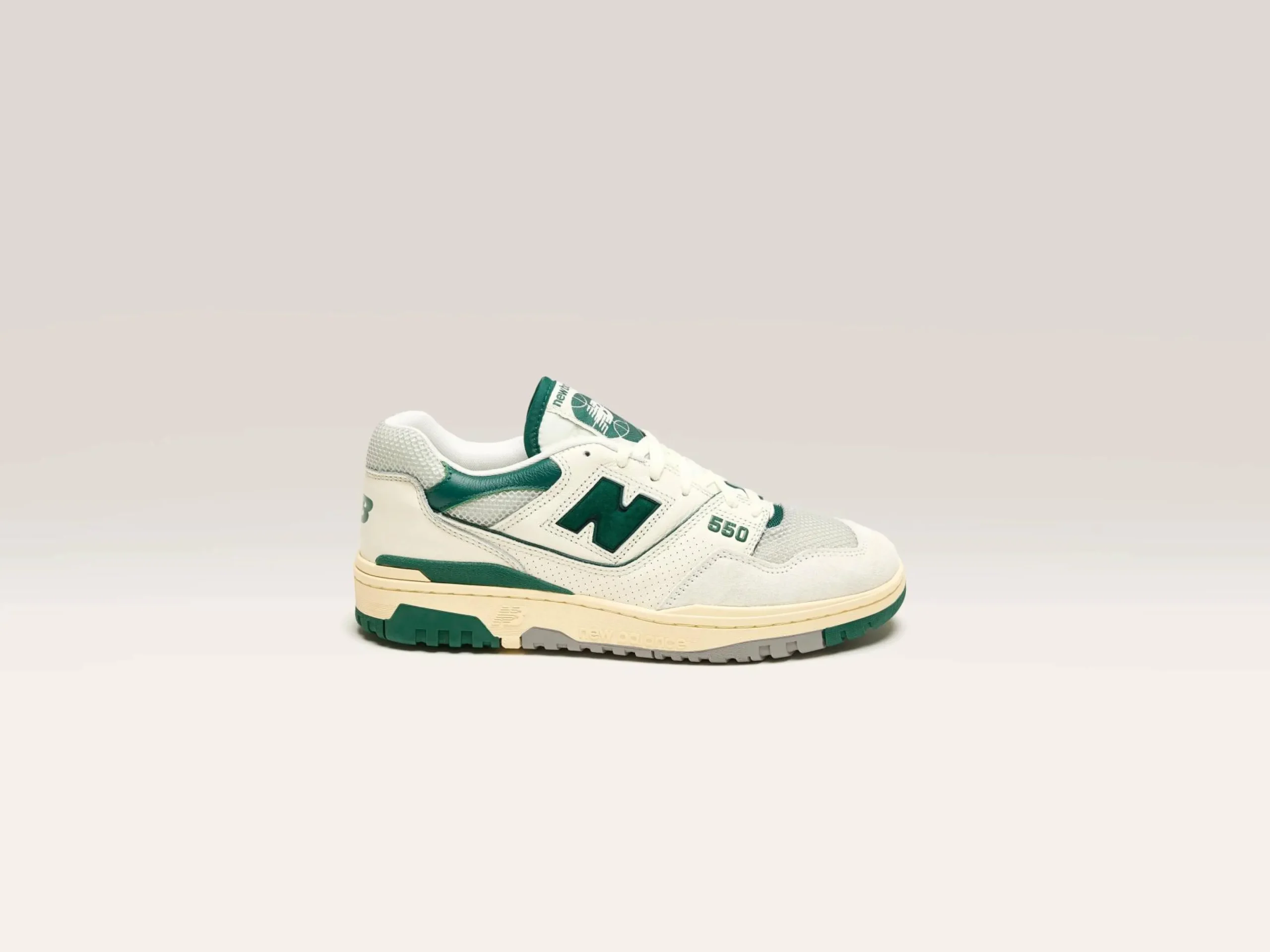 The New Balance 550 low-top everyday sneakers feature a dependable leather, synthetic, and mesh upper design.