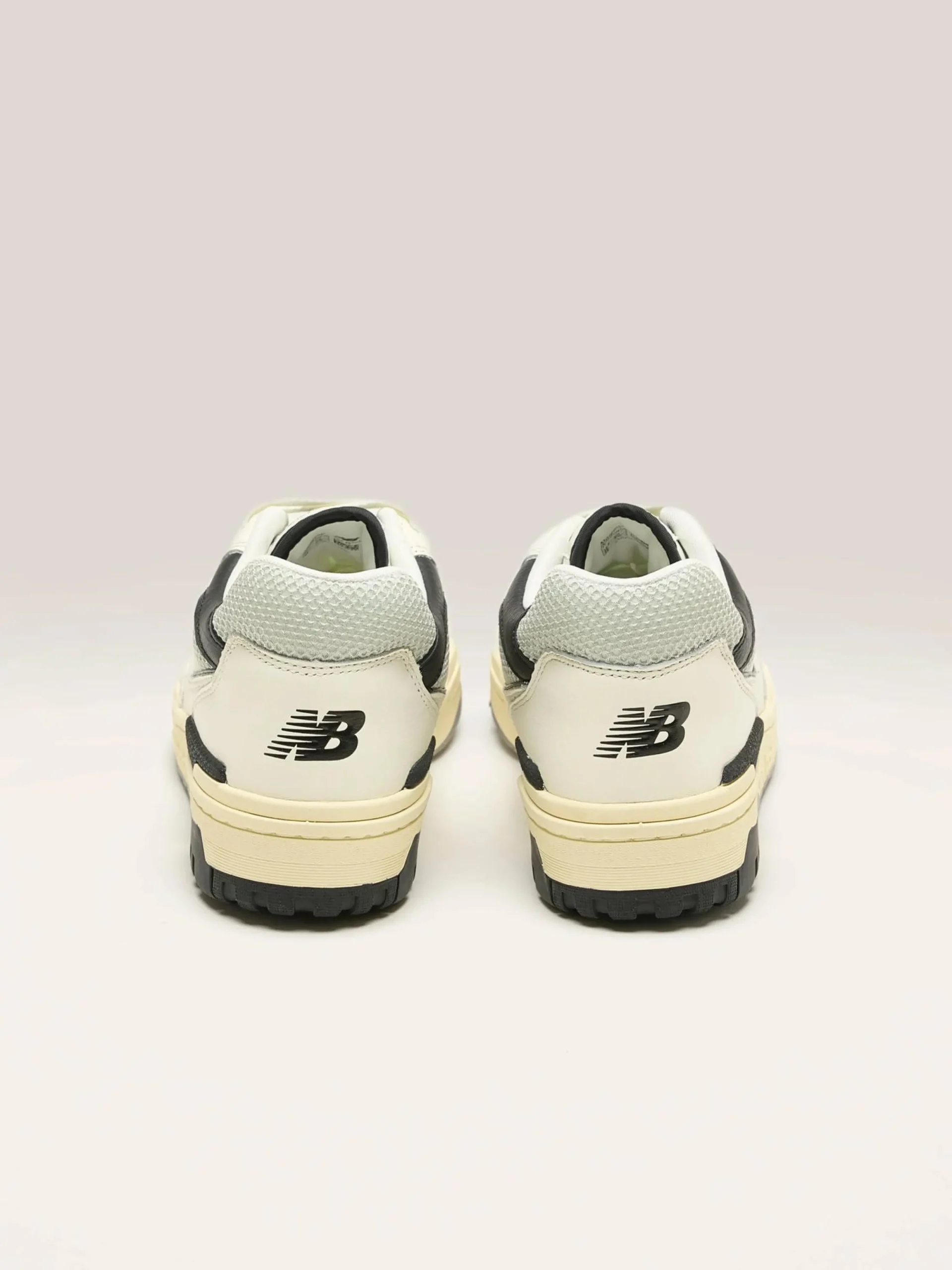 De New Balance 550 low-top alledaagse sneakers hebben een bovenwerk van leder, synthetisch suède, en mesh.