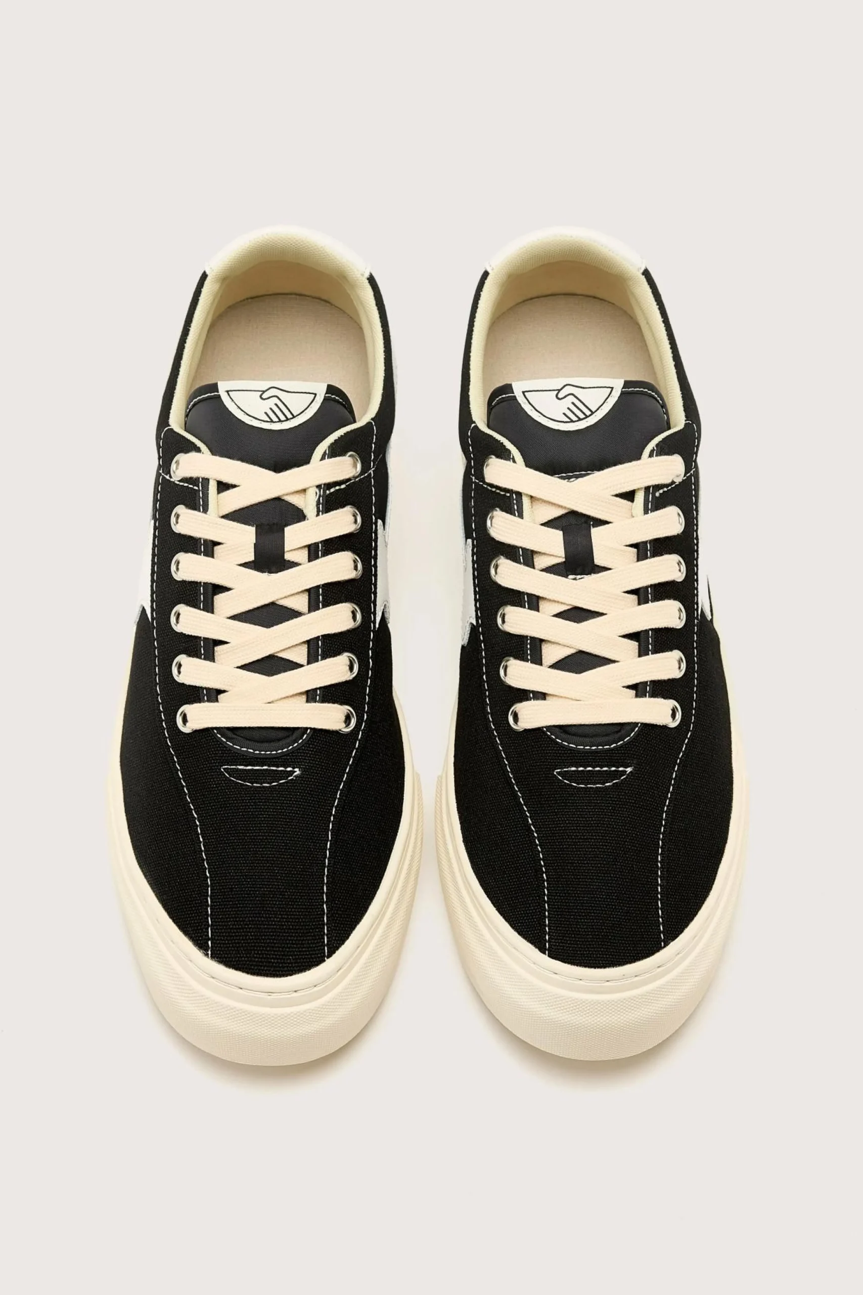 The Stepney Workers Club Dellow S-Strike Cup sneaker features a canvas upper, a leather S-Strike, and high-wall foxings on a rubber cupsole.