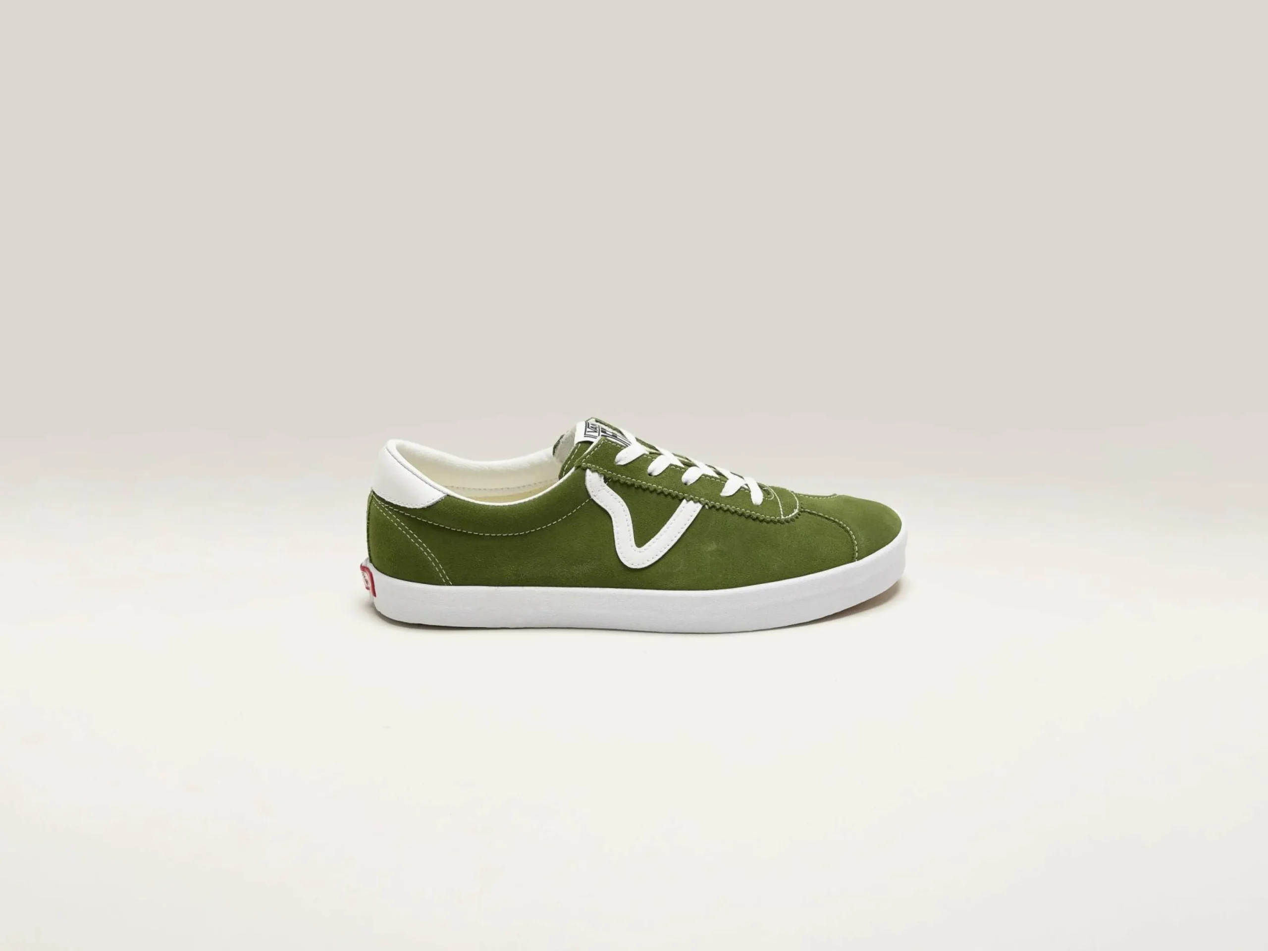 De Vans Sport Low schoenen hebben een lage open kraag, een tweekleurig suède bovenwerk met lederen accenten en een old-school logolabel.
