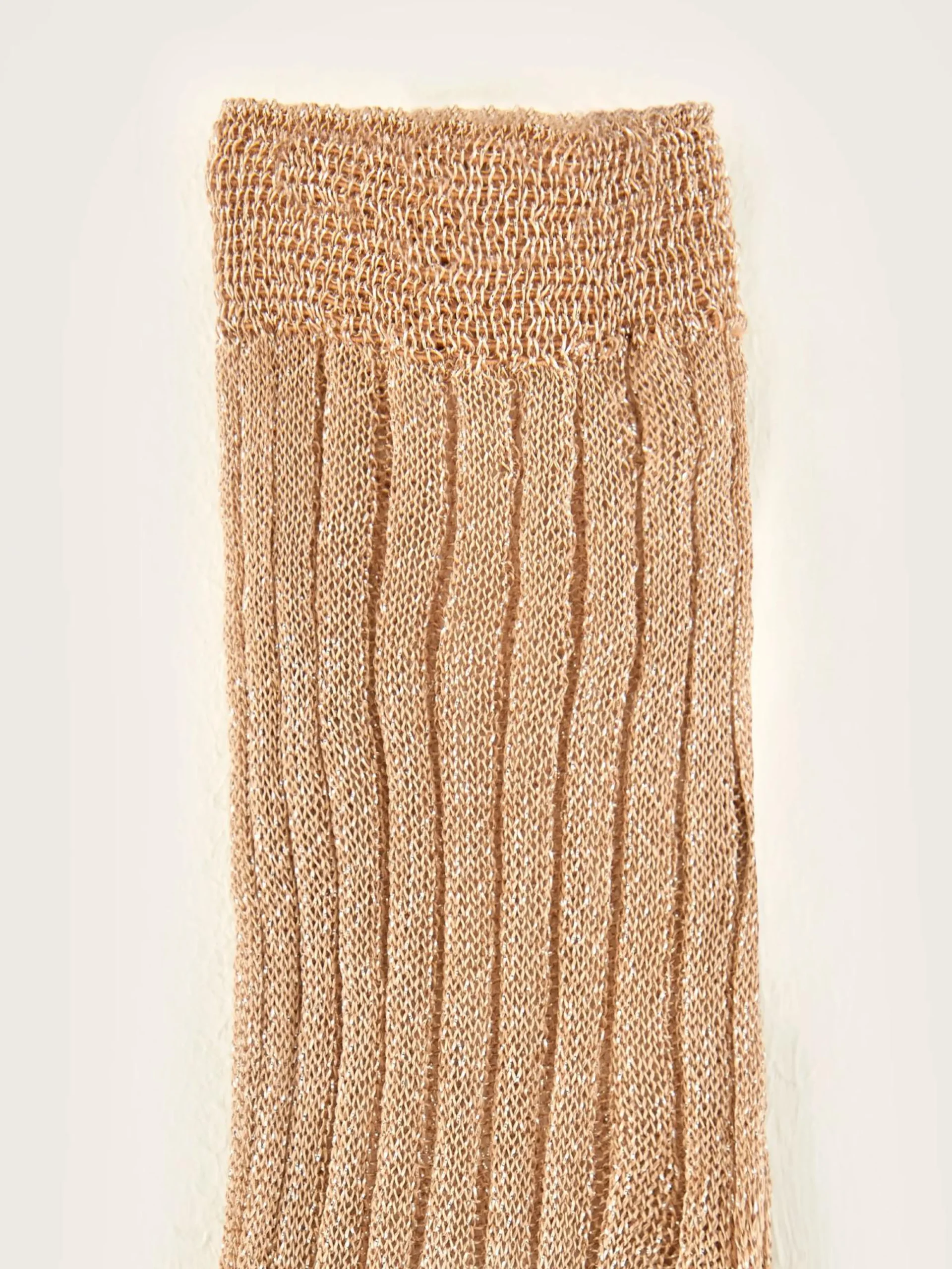 Korte sokken met een geribbelde textuur en een doorzichtige, metallic look. Een subtiel en toch speels accent aan je voeten, dat zijn ze!