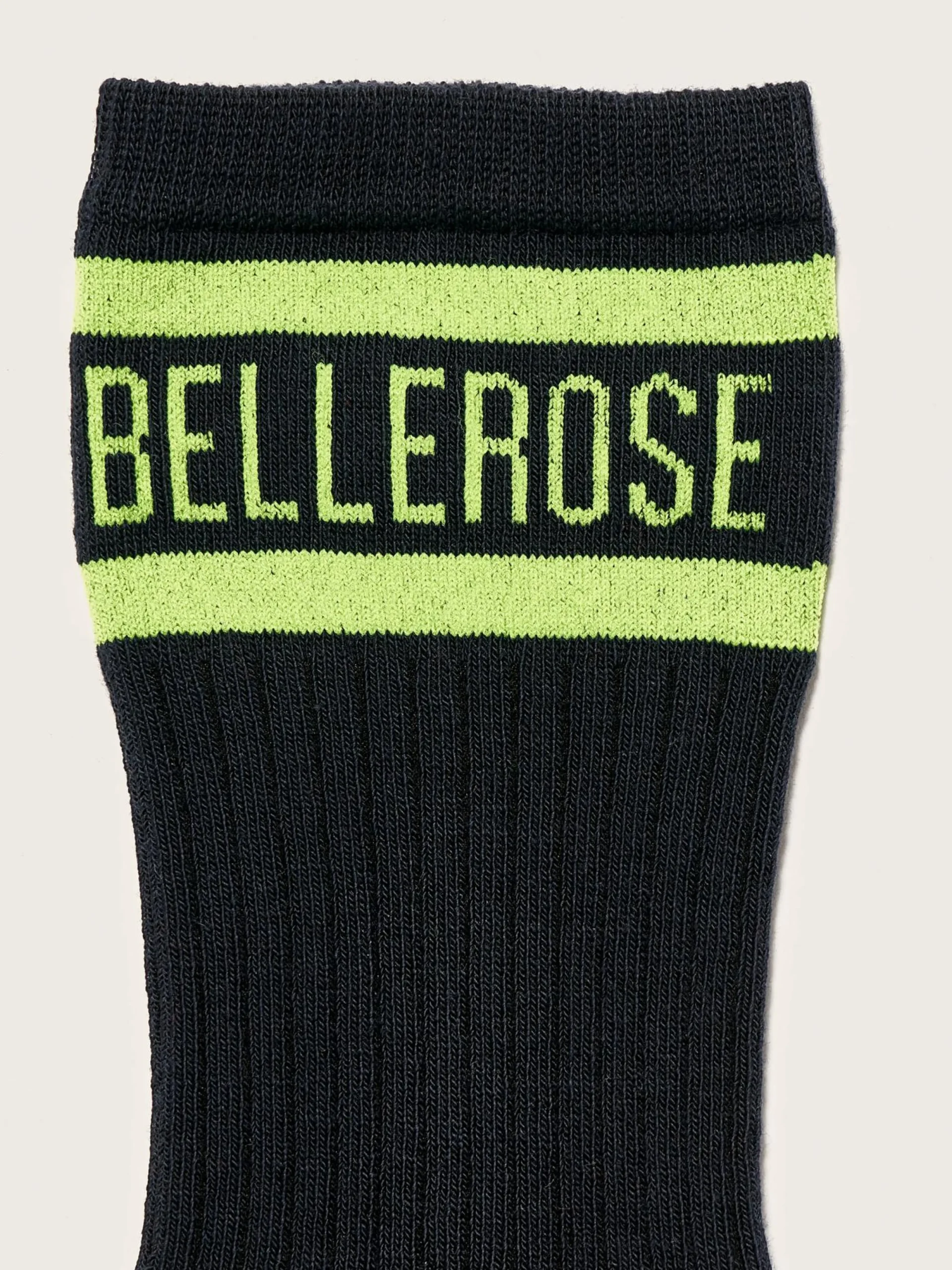 Klassieke sokken in blauw met het Bellerose-logo in geel op de enkel.