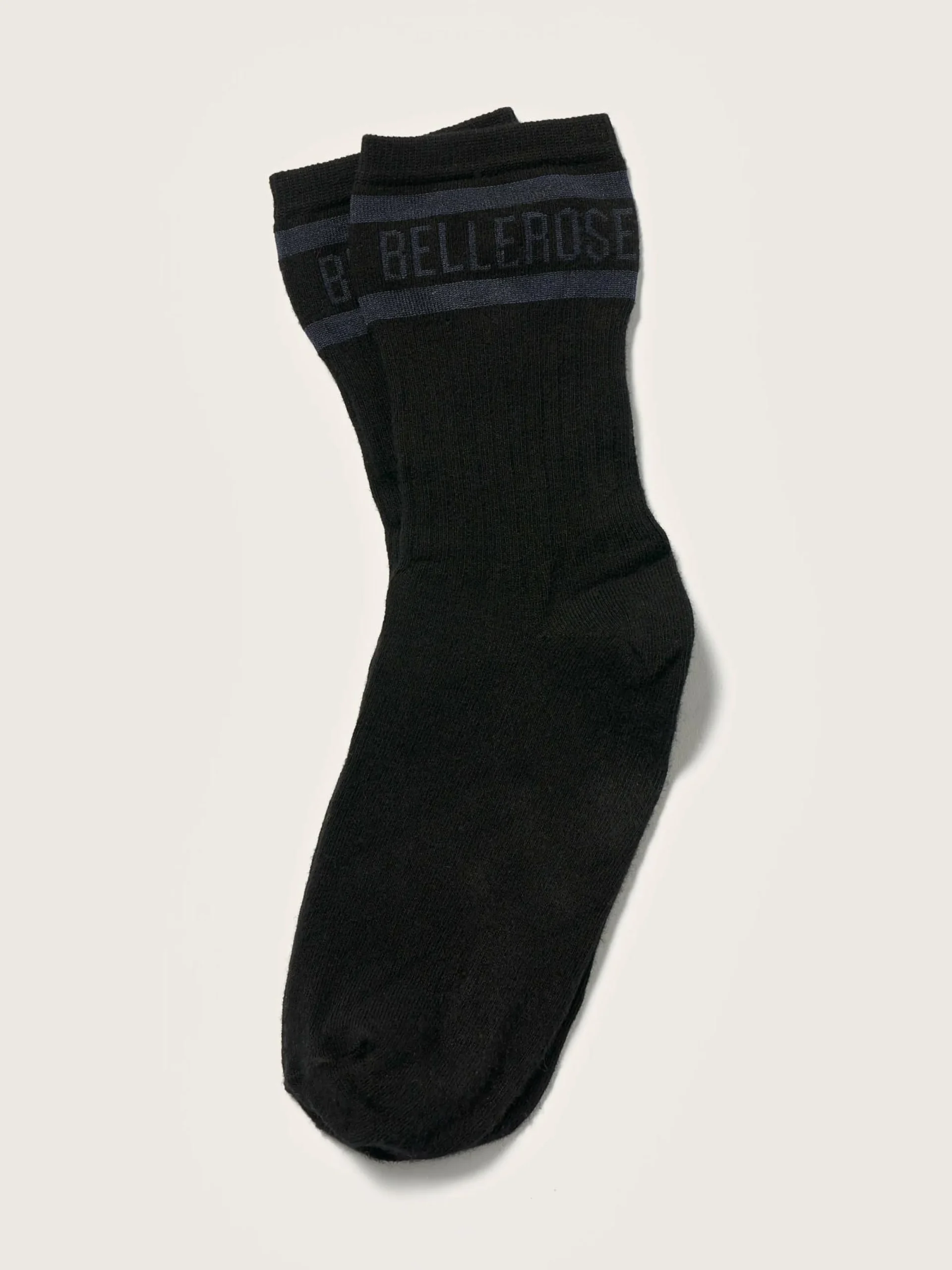 Klassieke sokken in zwart met Bellerose-logo in blauw op de enkel.