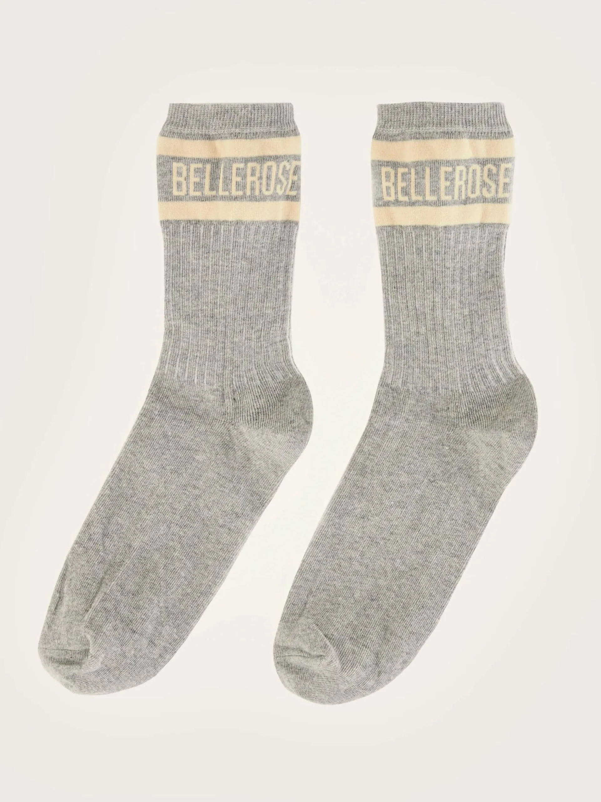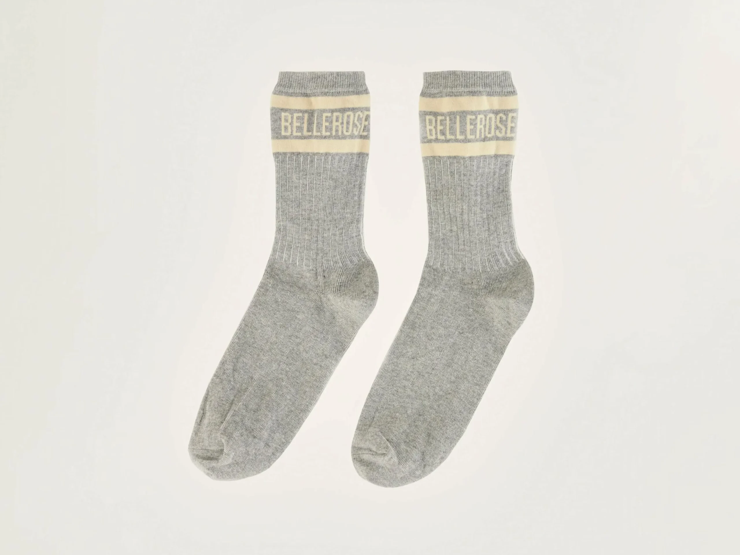 Klassieke sokken in heidegrijs met Bellerose-logo in ecru op de enkel.