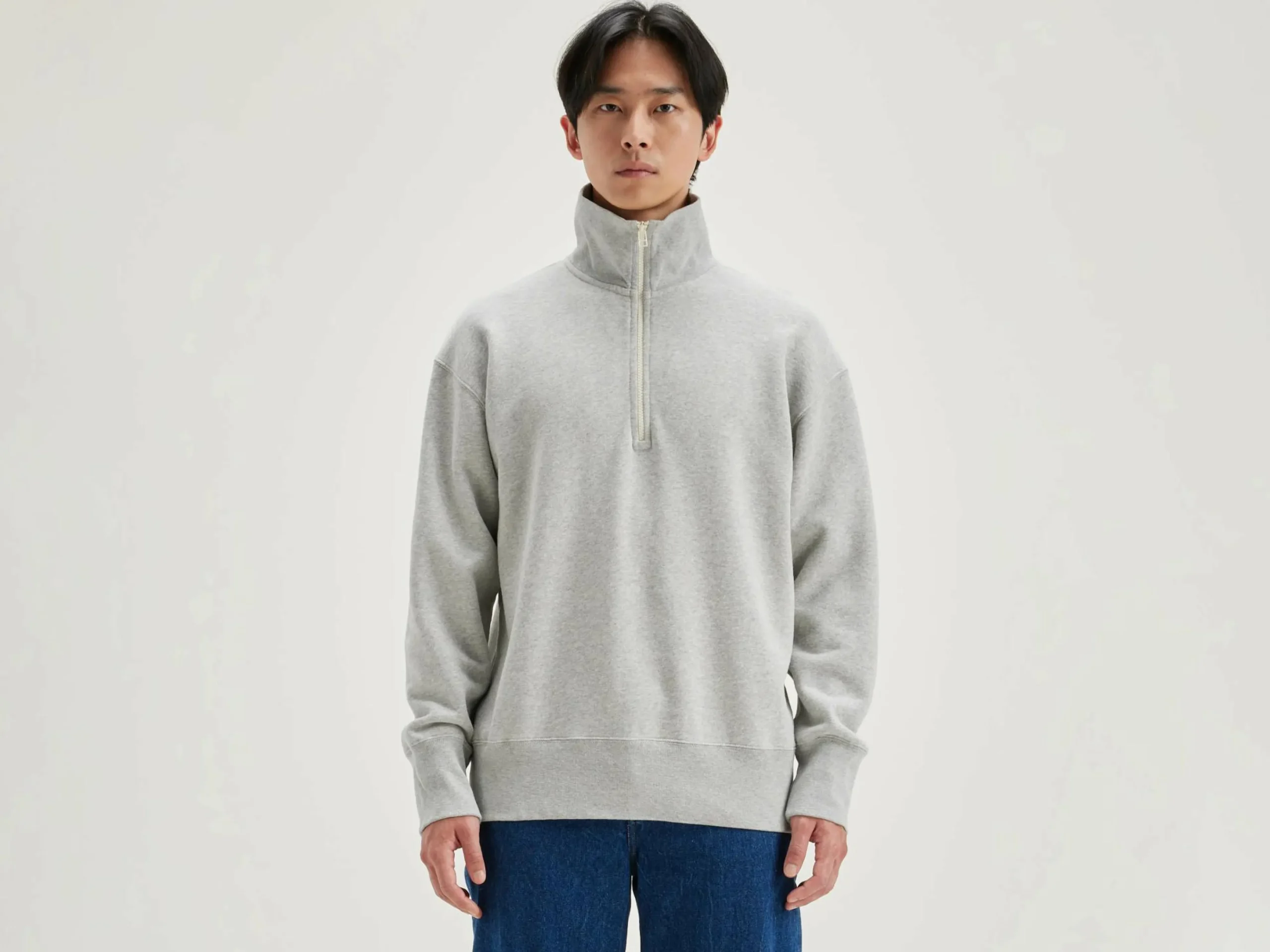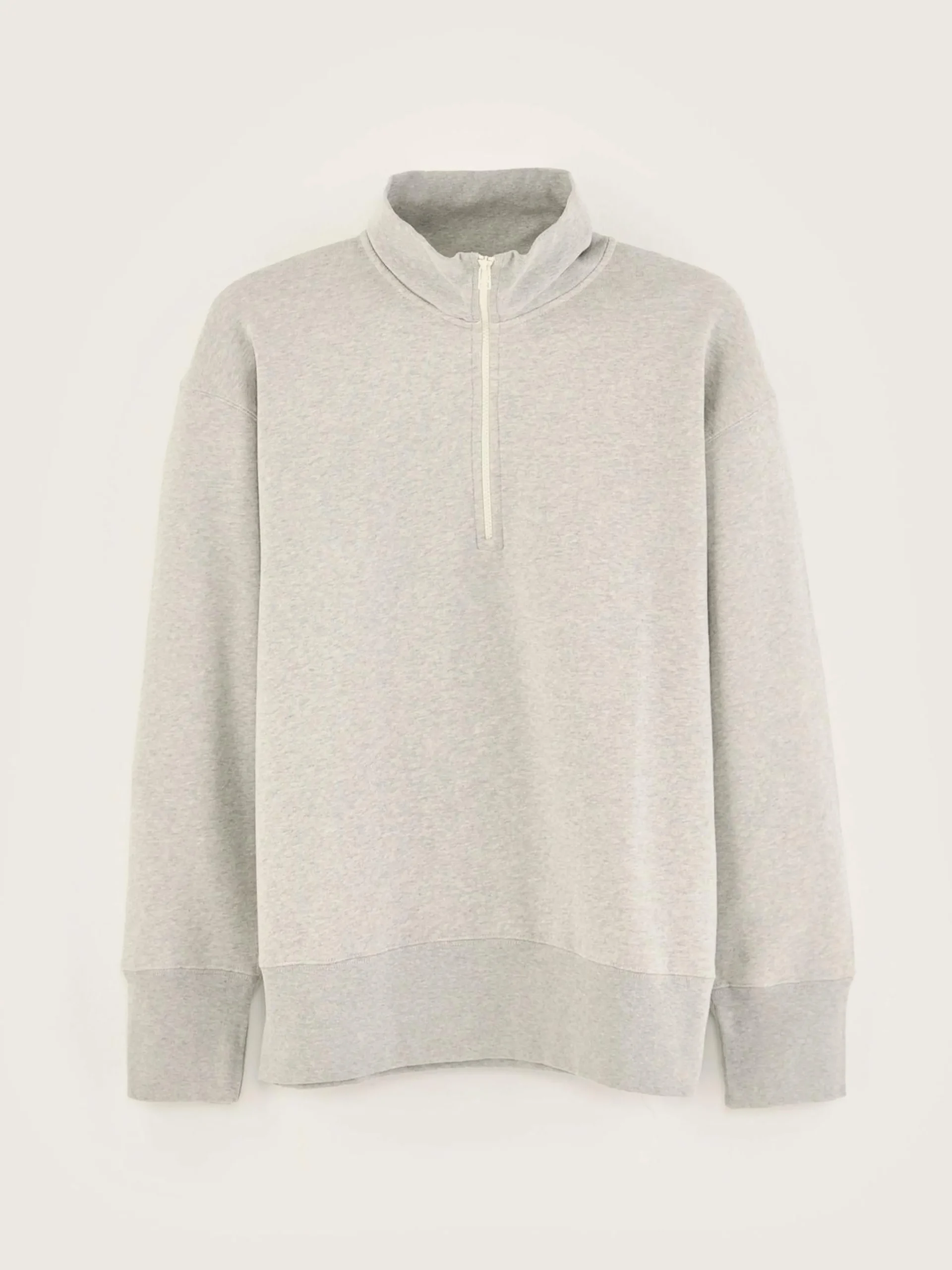 Oversized sweatshirt met opstaande kraag en halve ritssluiting, van heidegrijze katoenjersey.