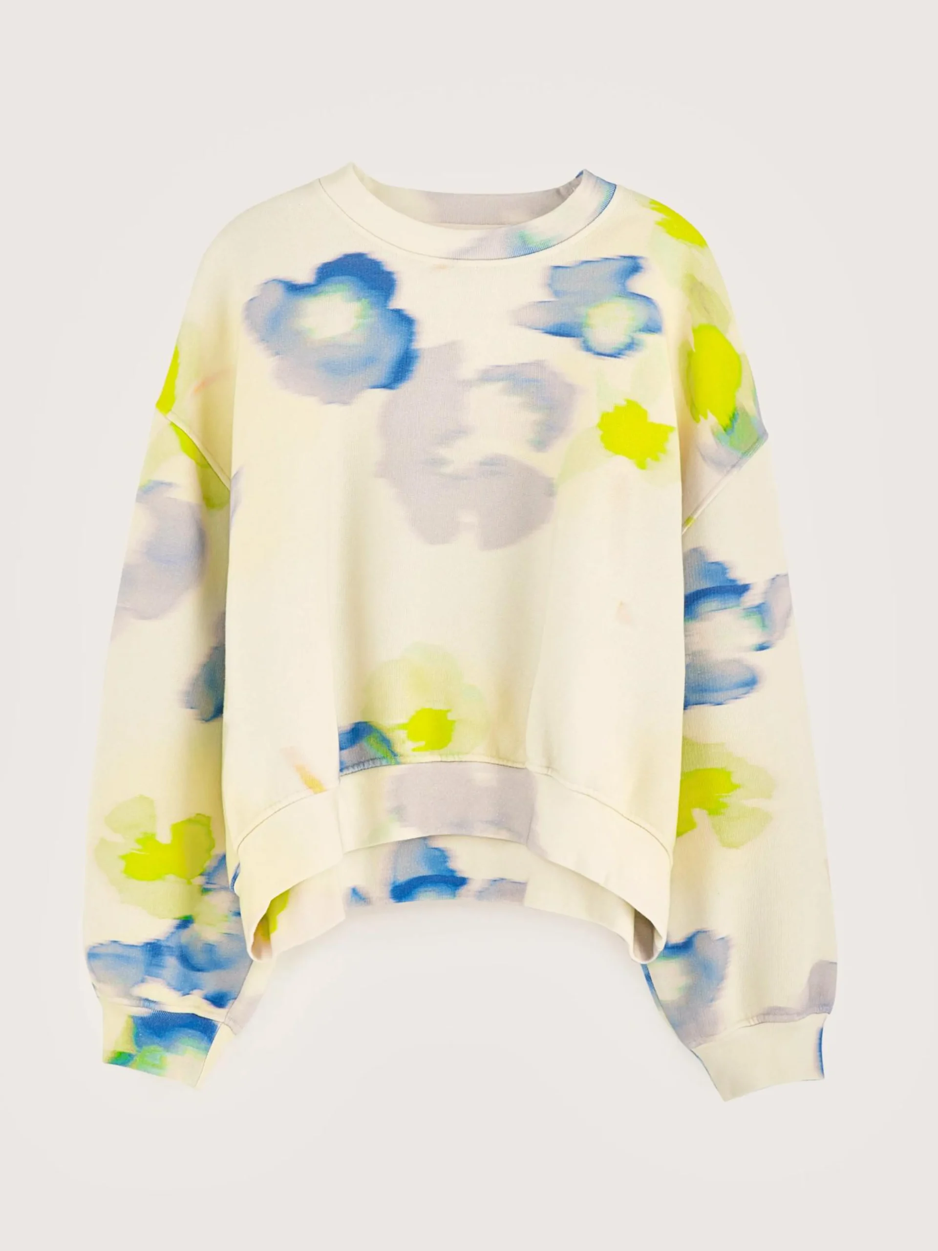 Oversized sweatshirt van jerseyfleece, met afgewassen bloemenprint.
