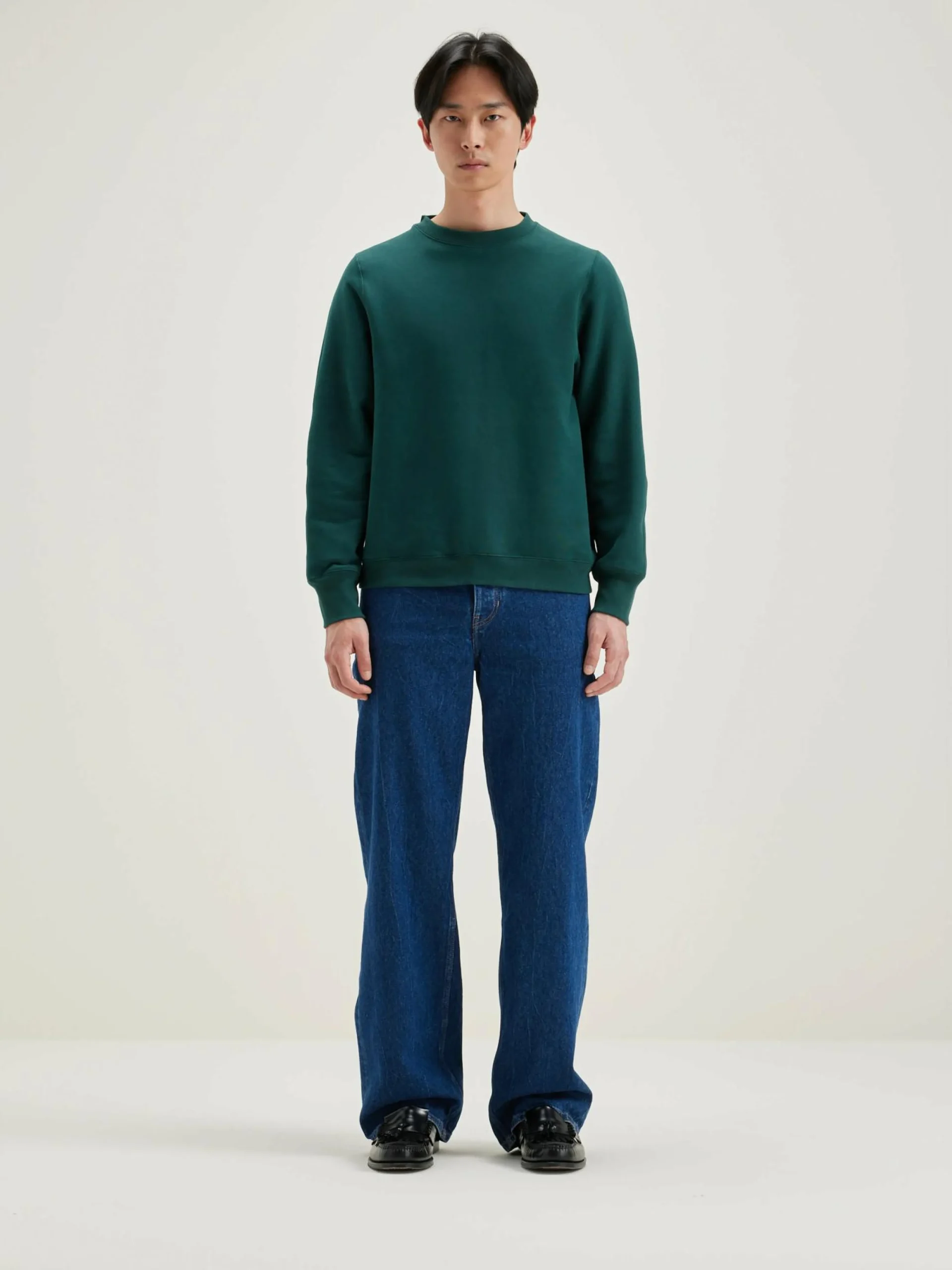 Klassiek sweatshirt met ronde hals, van groene jersey met neopreeneffect.