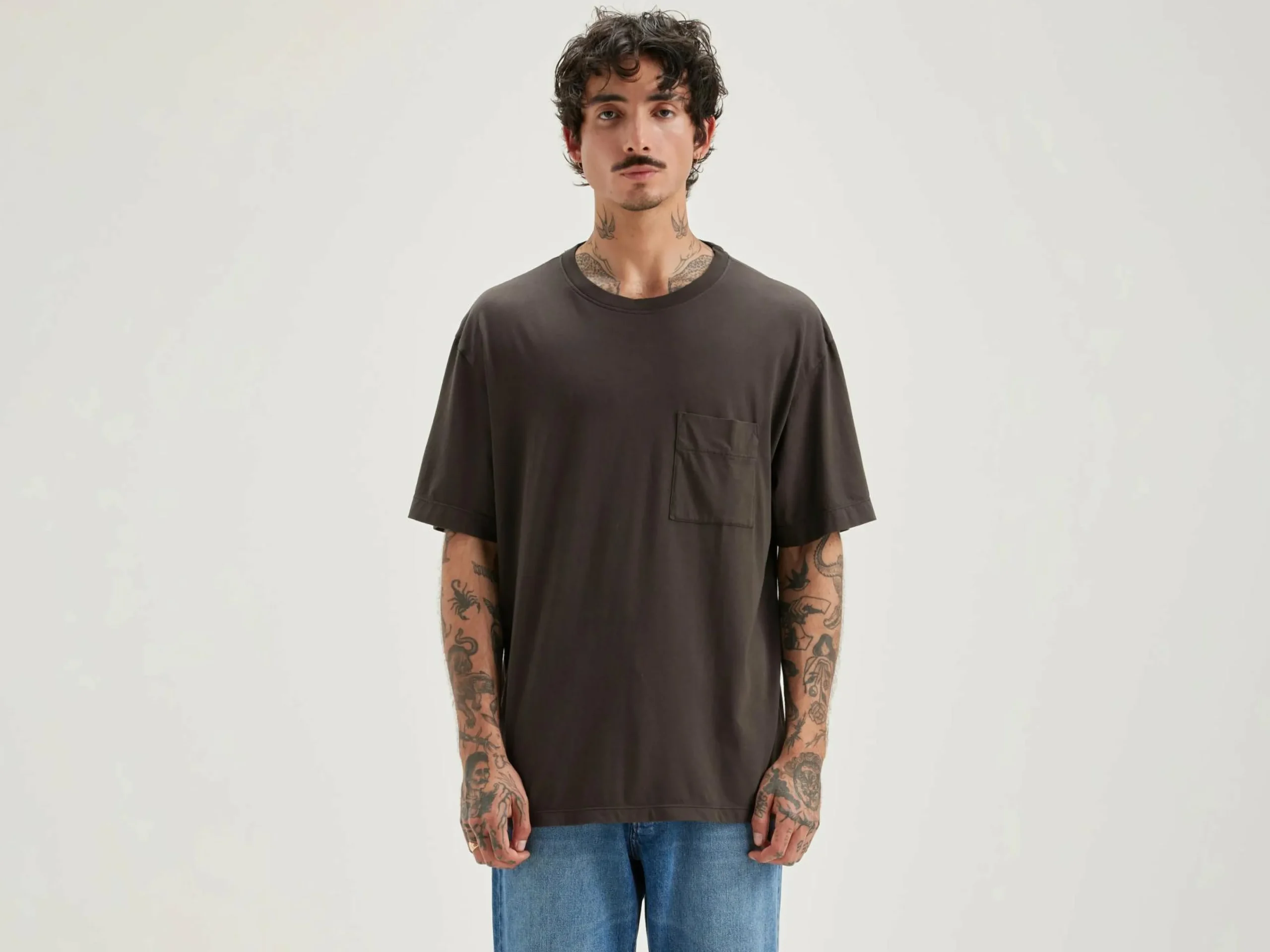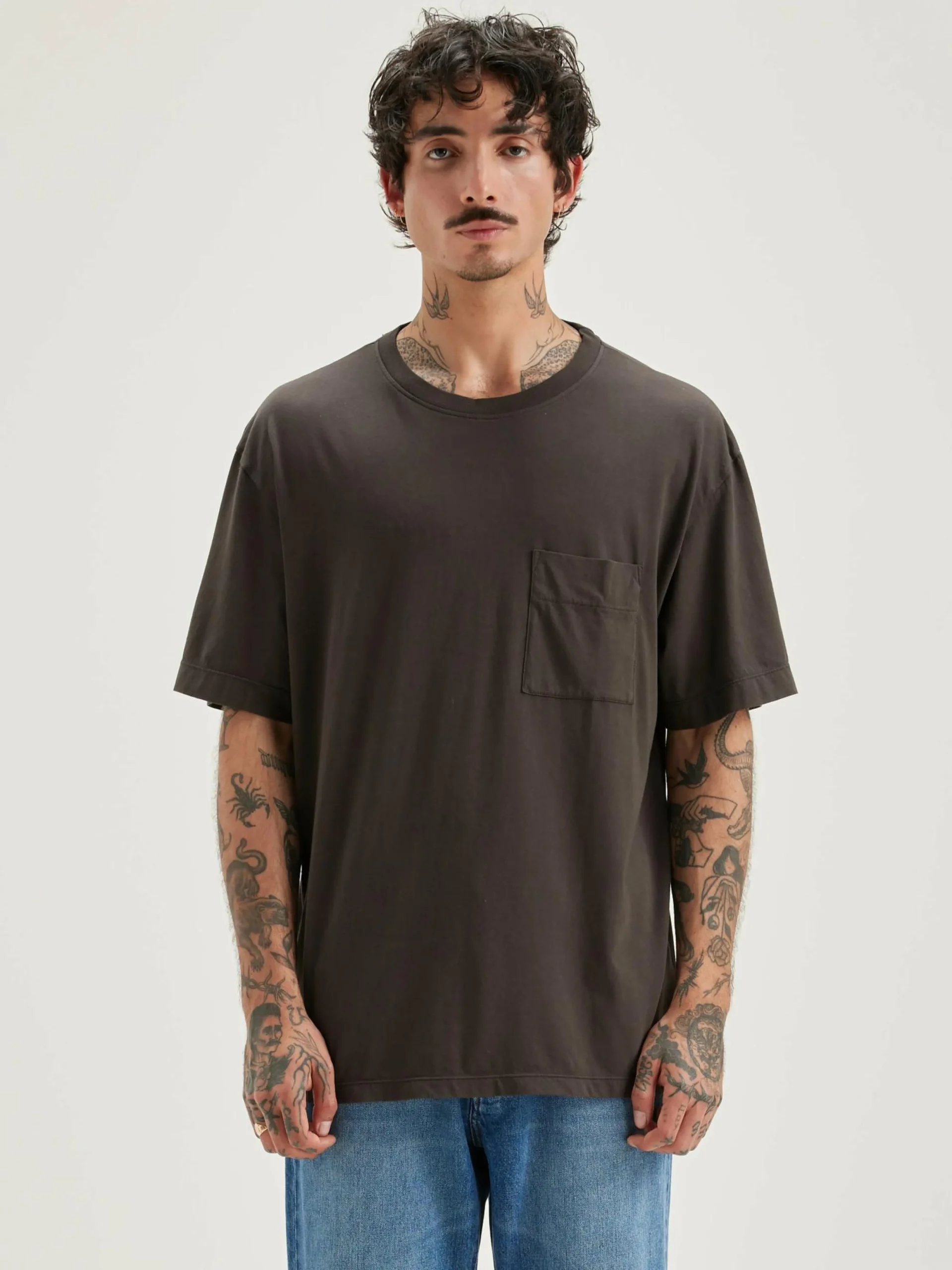 Oversized, donkergrijs T-shirt met korte mouwen, van lichte katoenjersey.