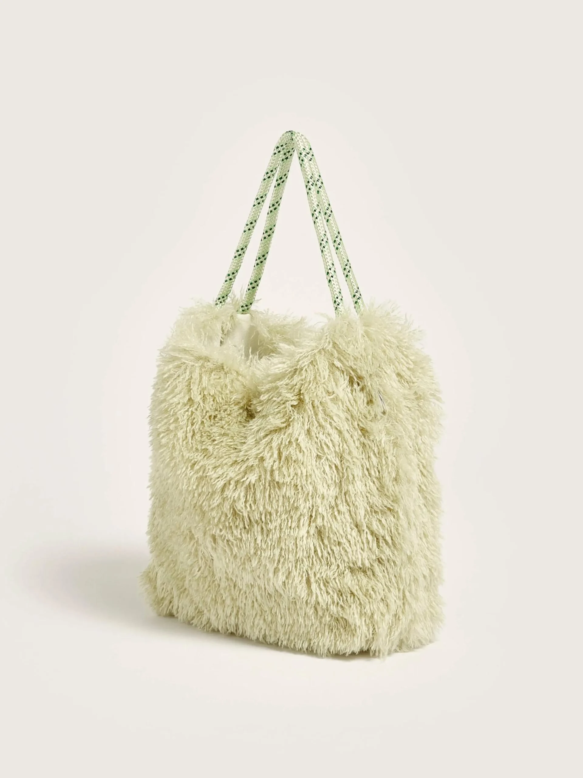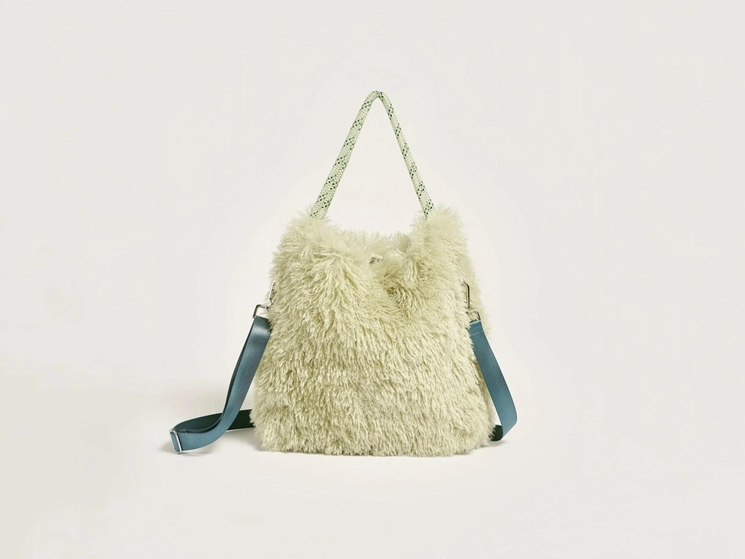Omkeerbare, kardemomgroene tas van nepleer met twee paar handvaten.