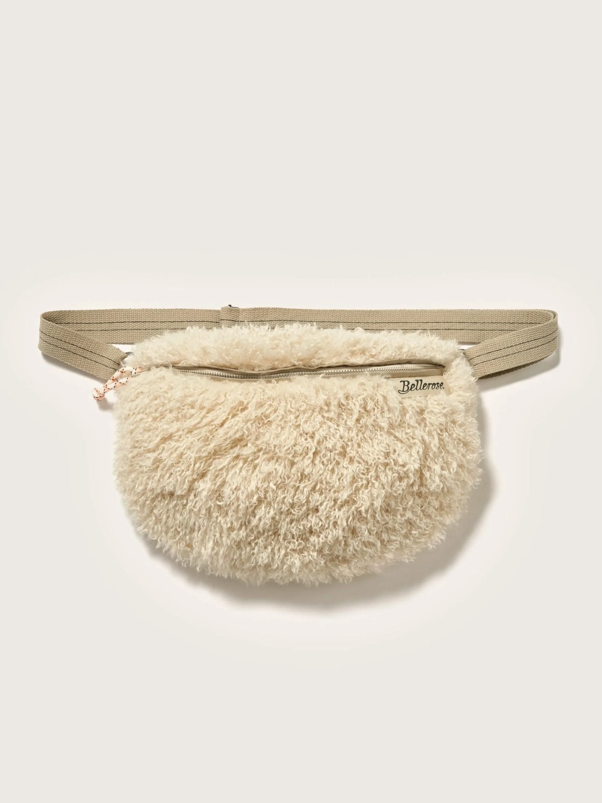 Sling bag met ritssluiting vooraan, van lichtbeige nepbont.