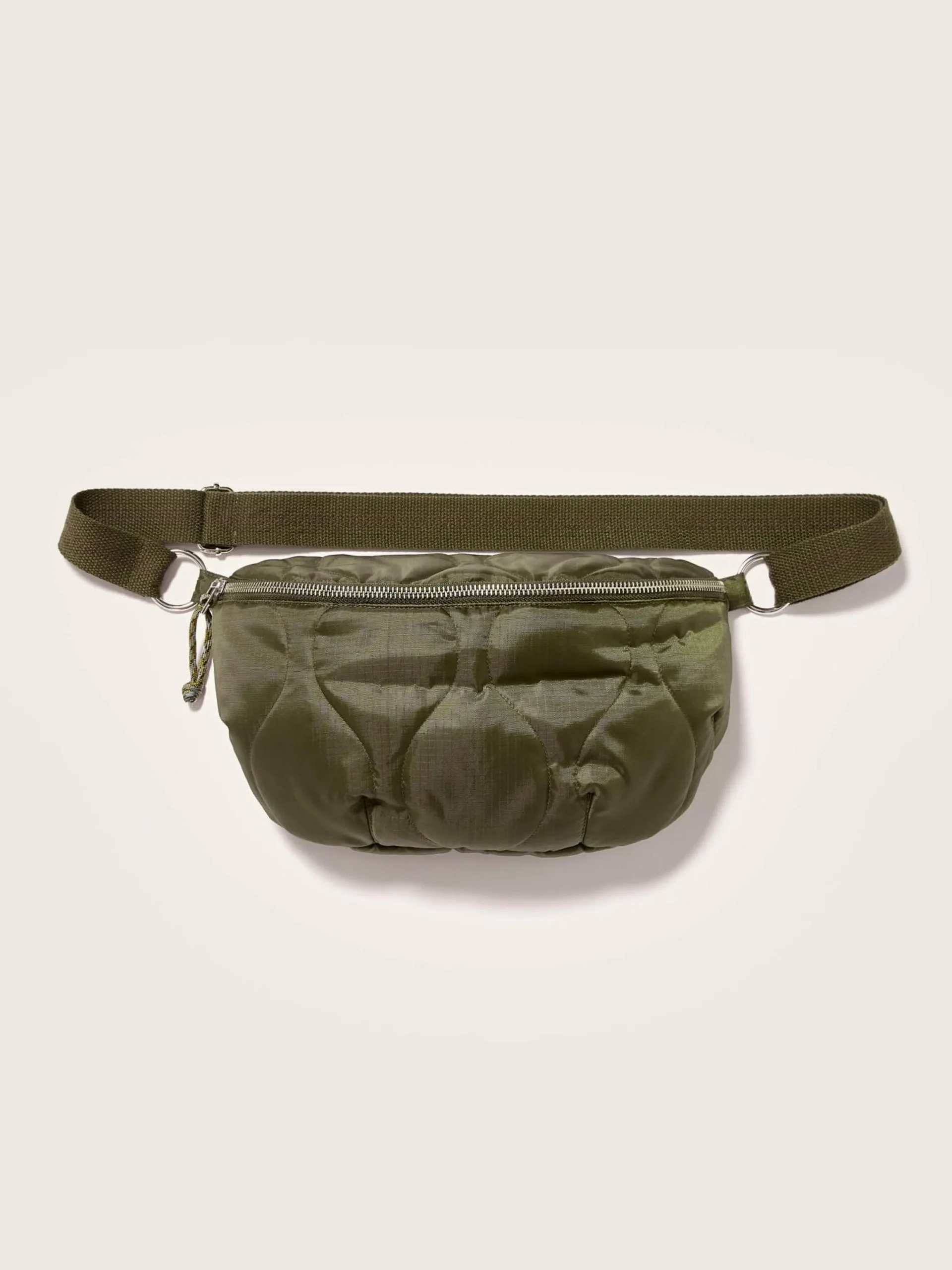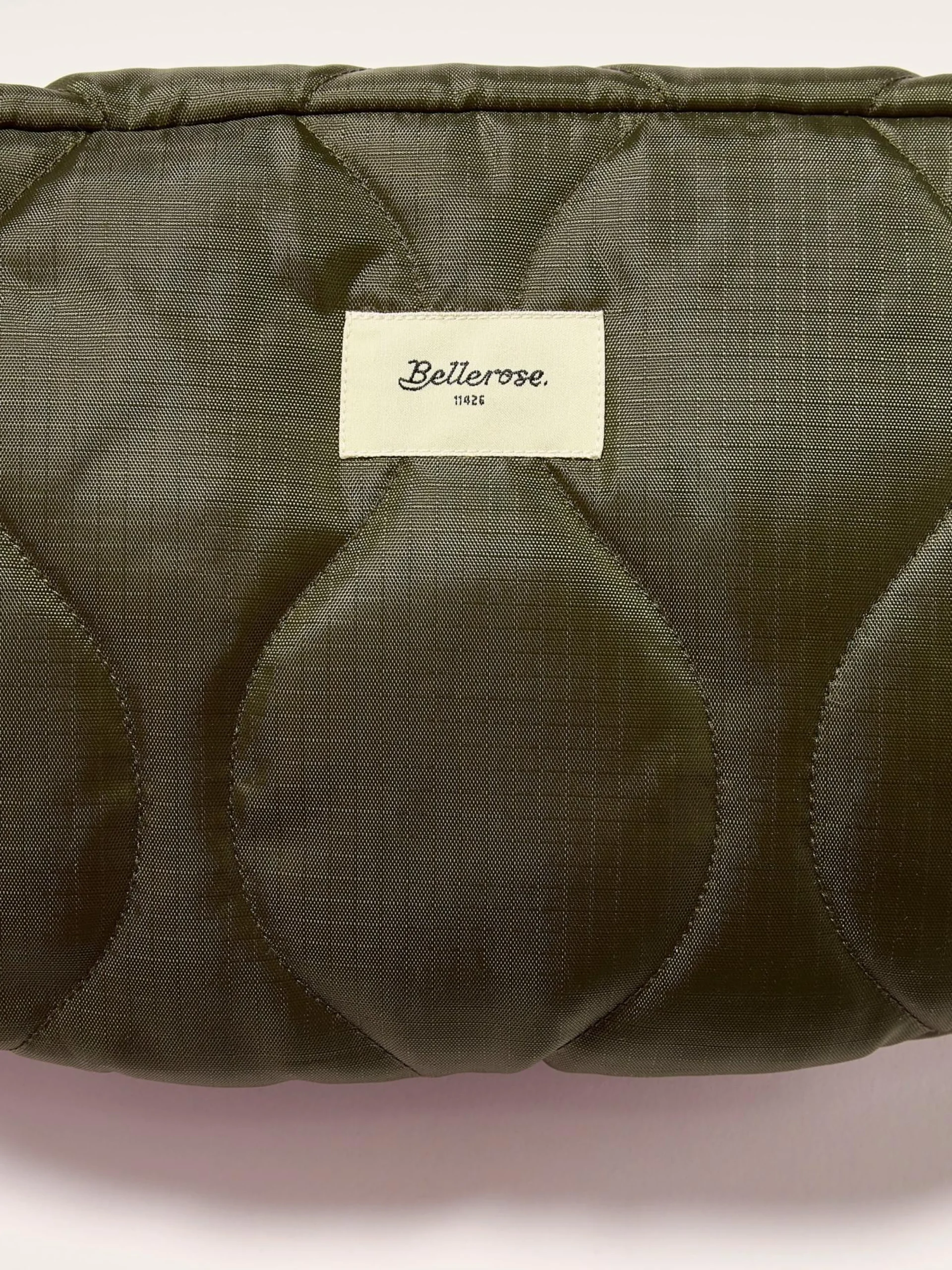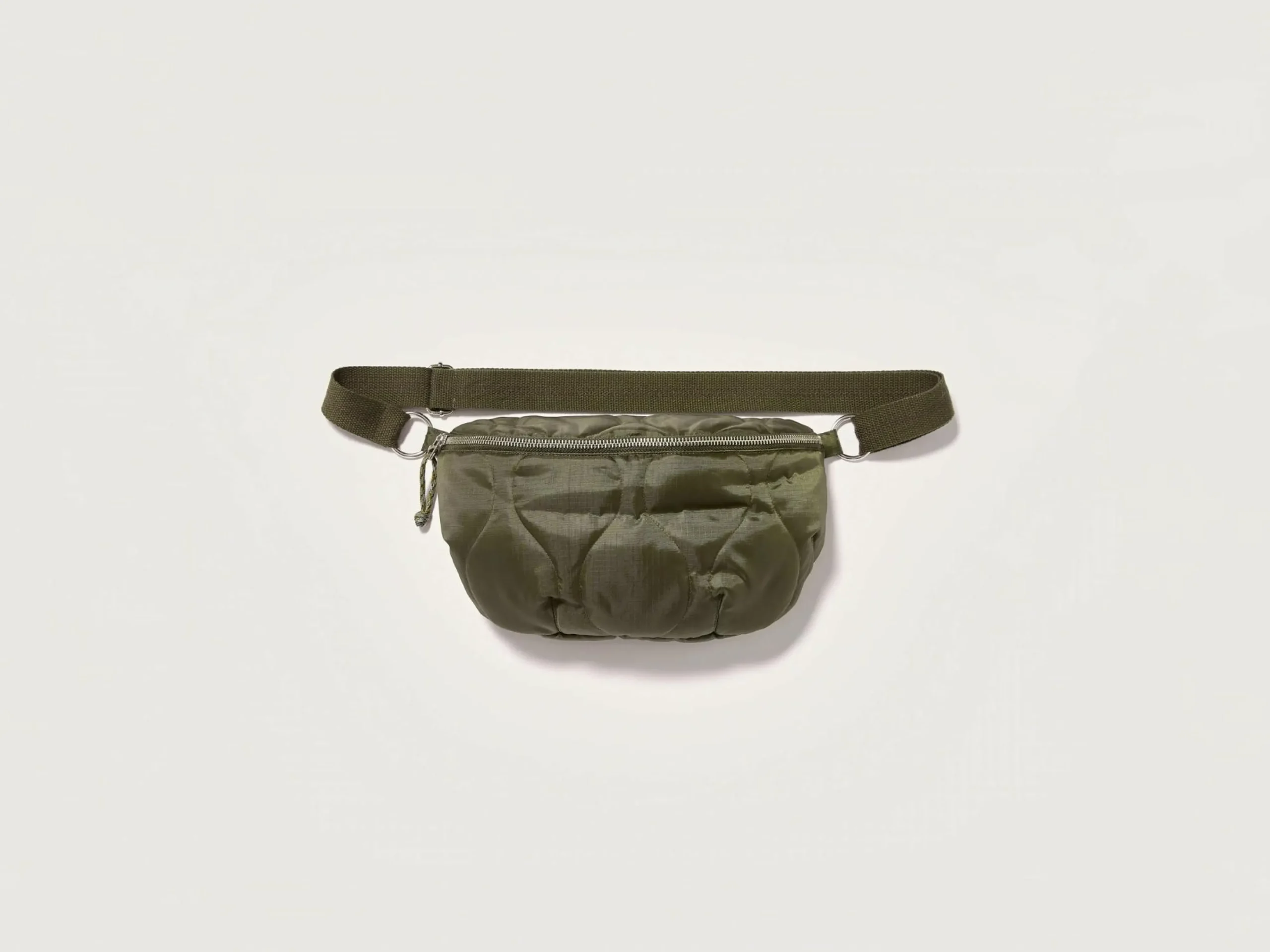 Sling bag met ritssluiting vooraan, van mosgroen, gewatteerd nylon.