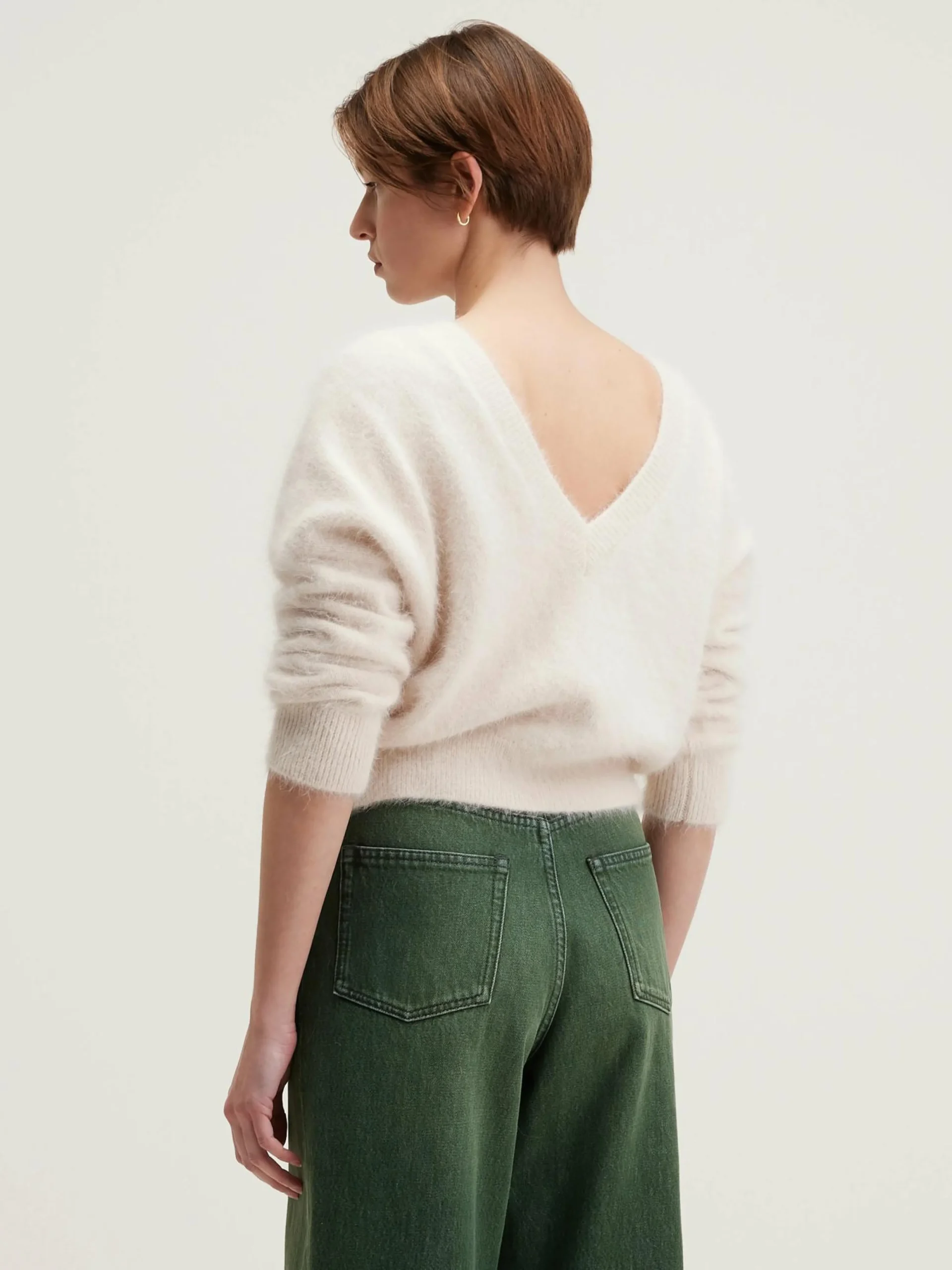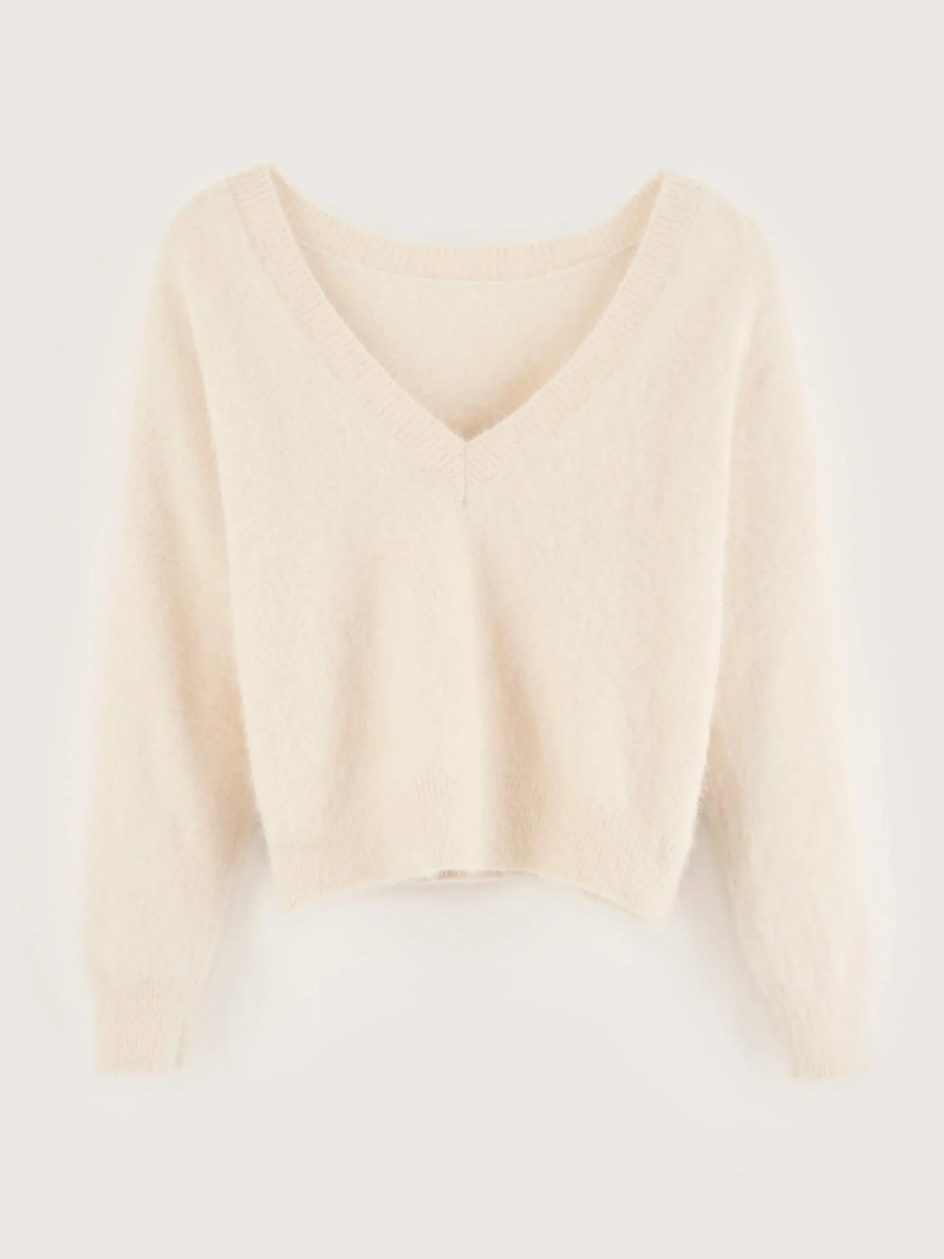 Omkeerbare crèmekleurige trui met V-hals, van angorablend.