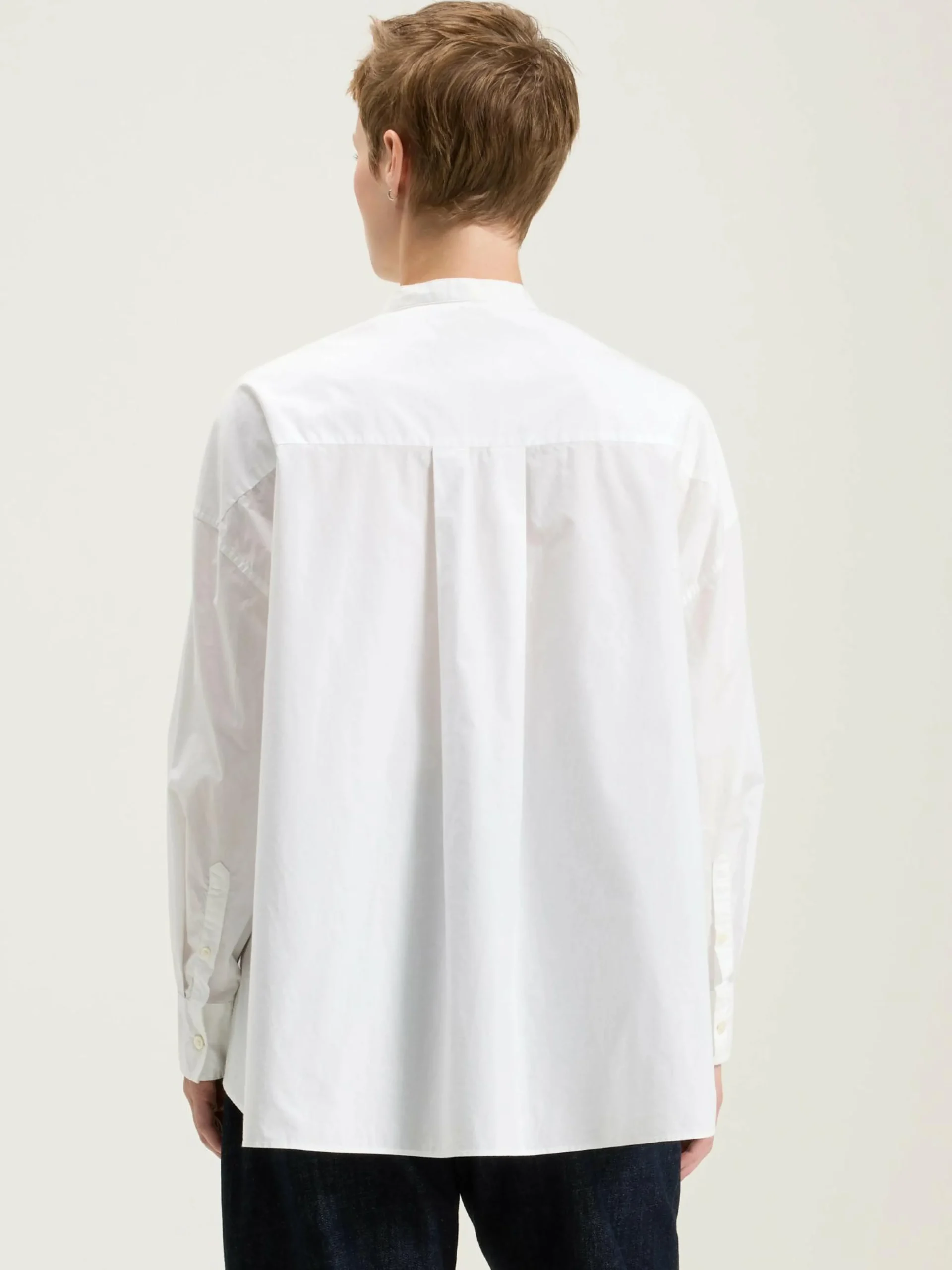 Oversized button-down hemd van wit popelinekatoen met een opgestikte zak en een kleine opstaande kraag.