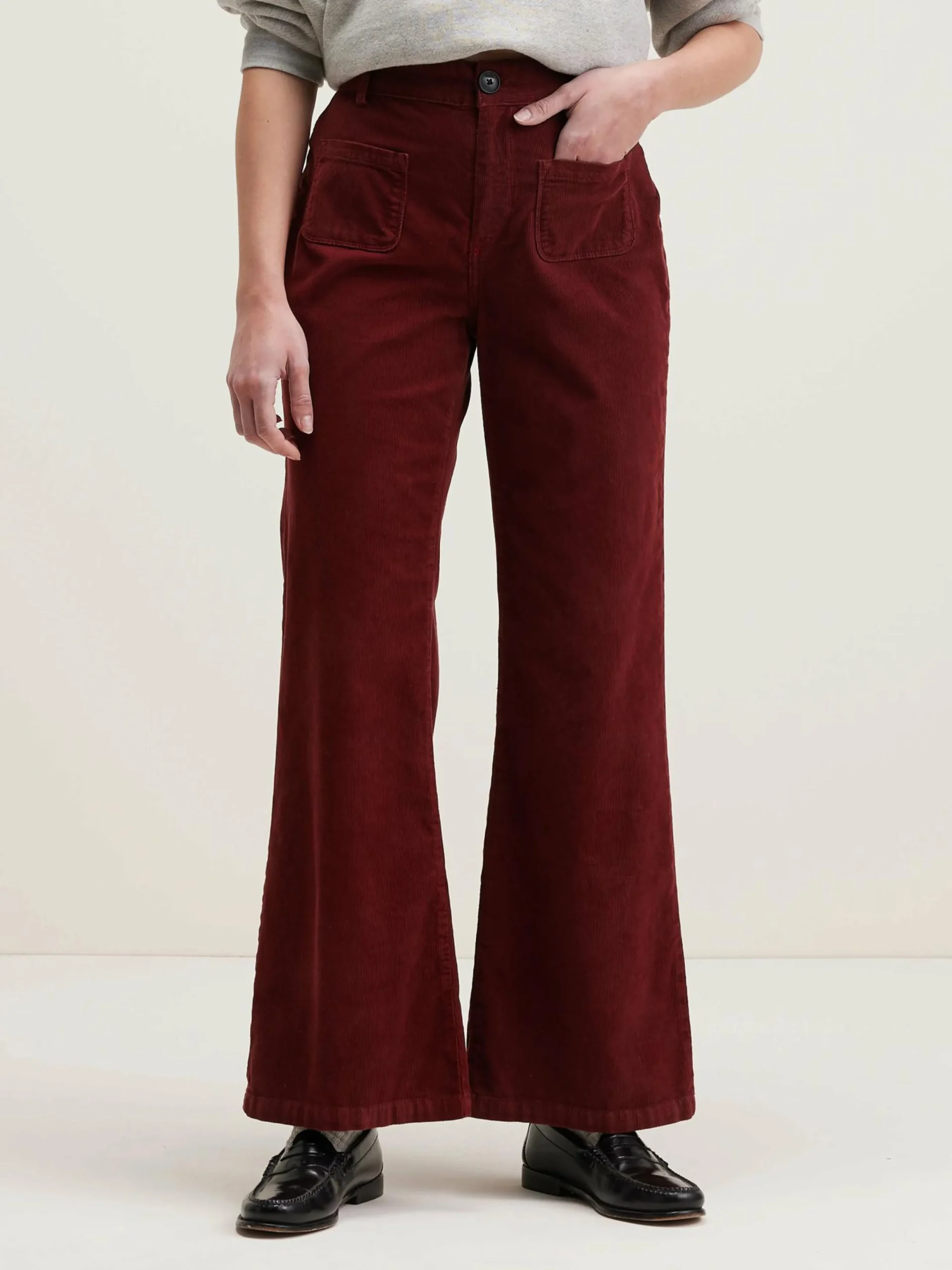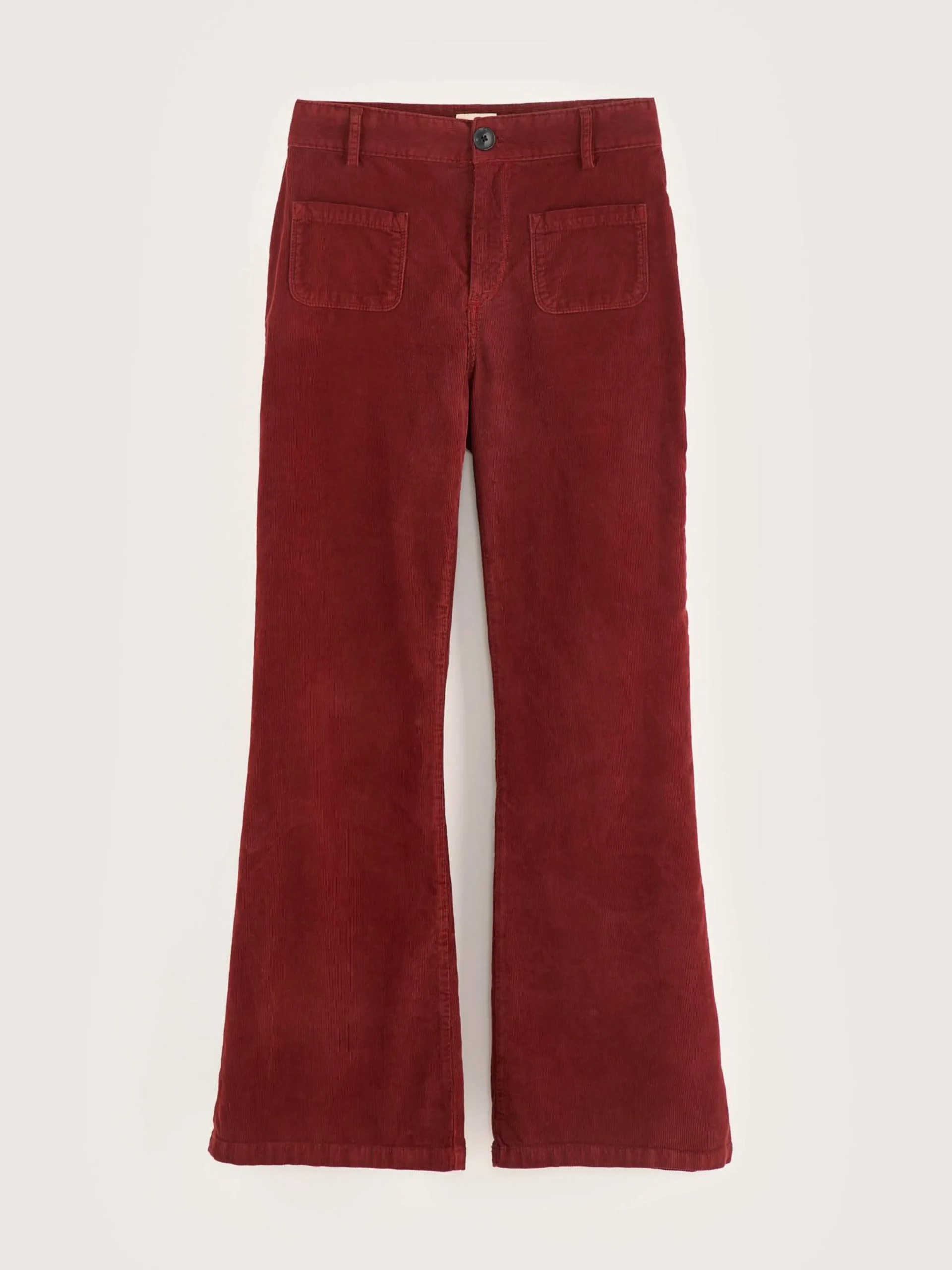 High-waist broek van rode baby corduroy stof met flared pijpen.