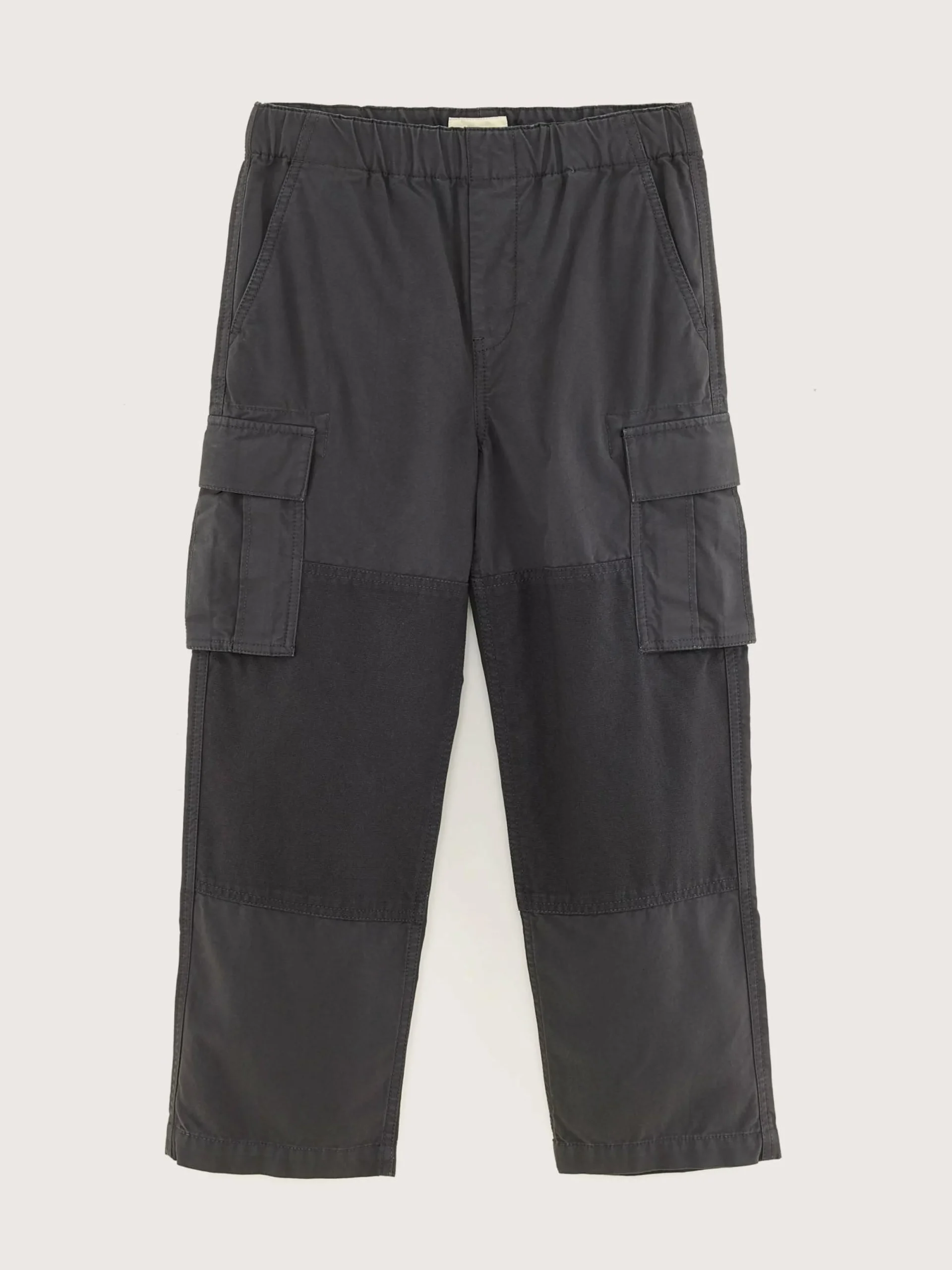 Relaxede zwarte cargobroek met wijde pijpen, van ripstop katoen.