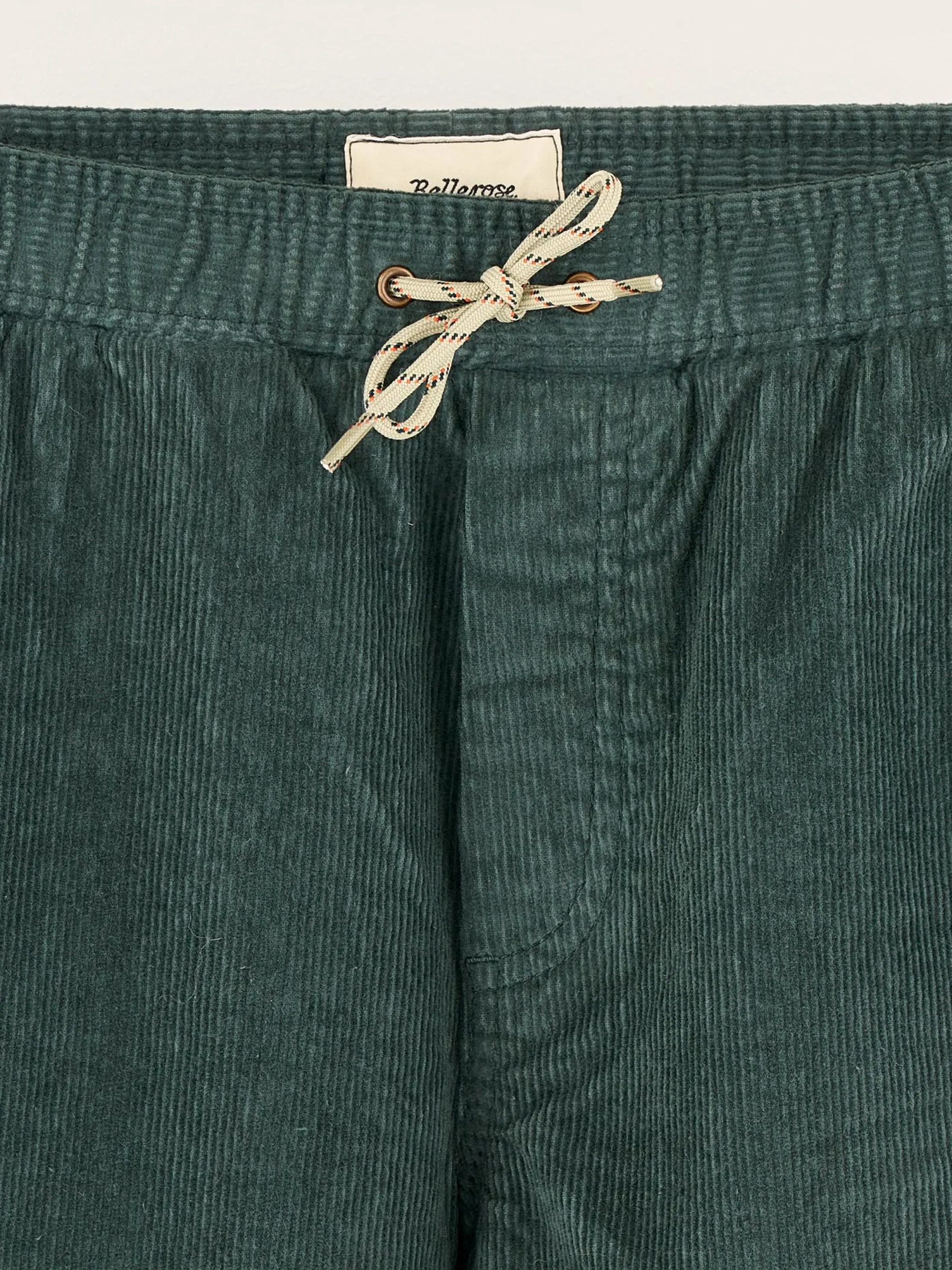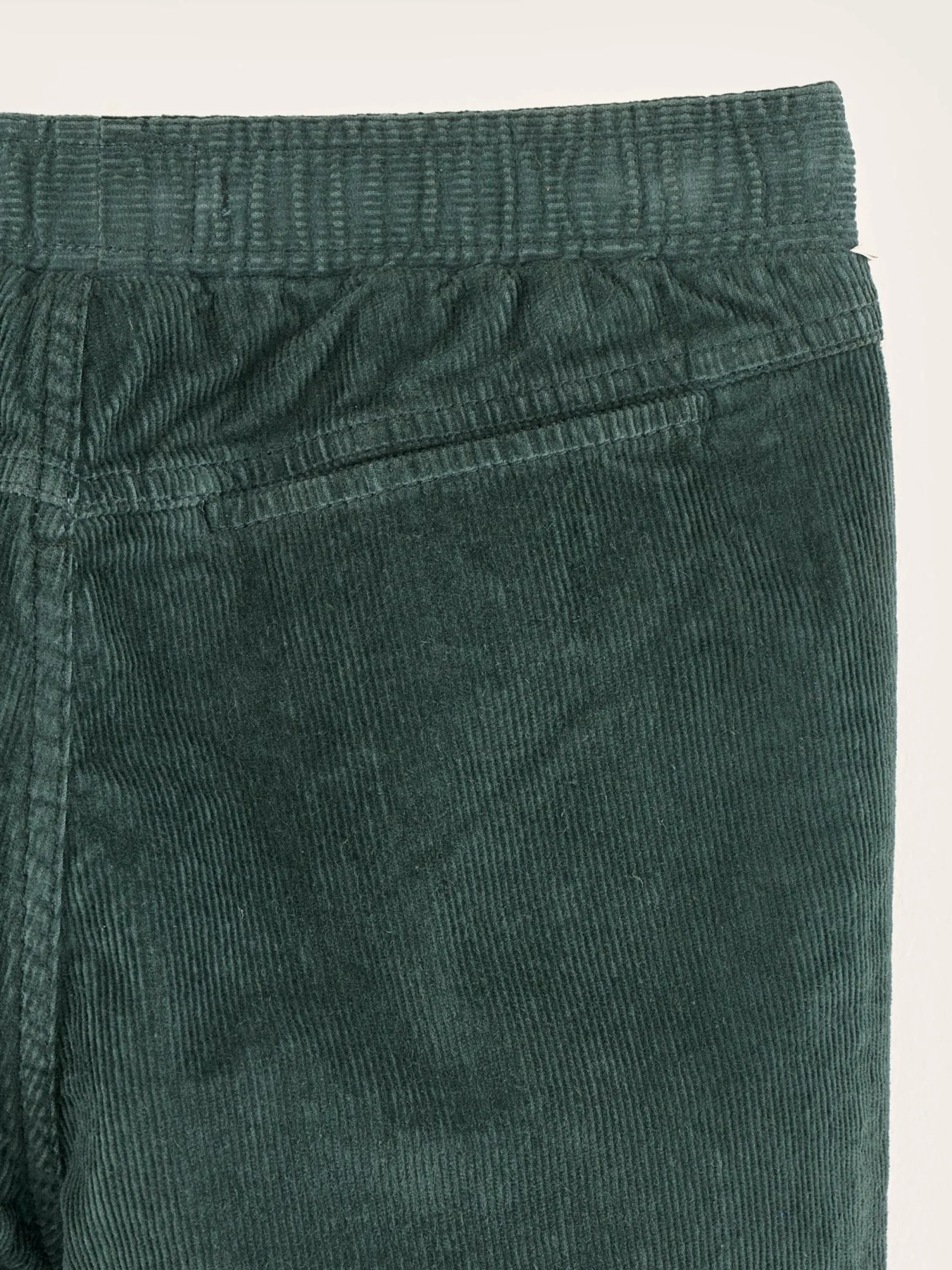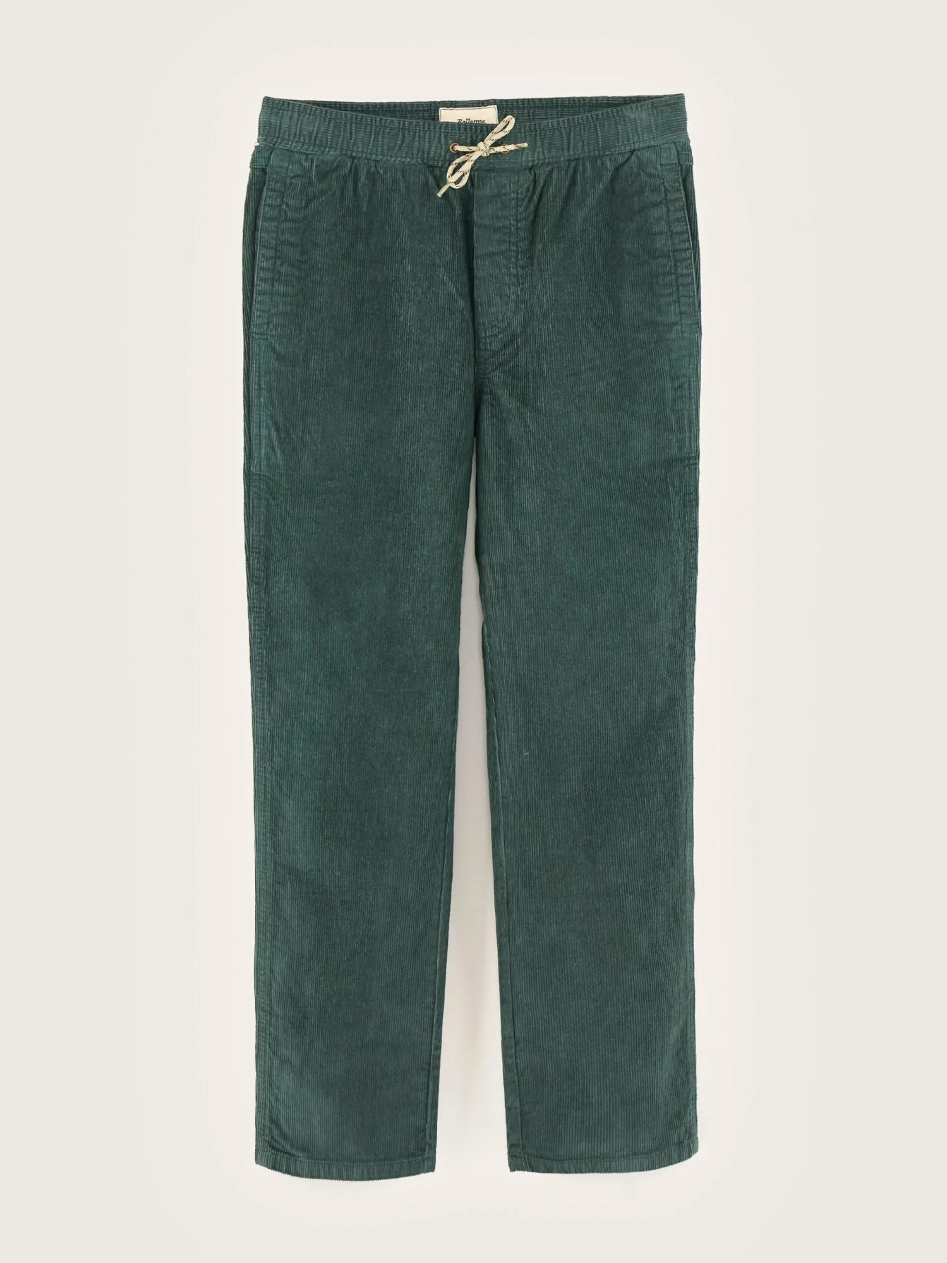 Comfortabele, flesgroene corduroy broek met taps toelopende pijpen en elastische taille met rijgkoord.