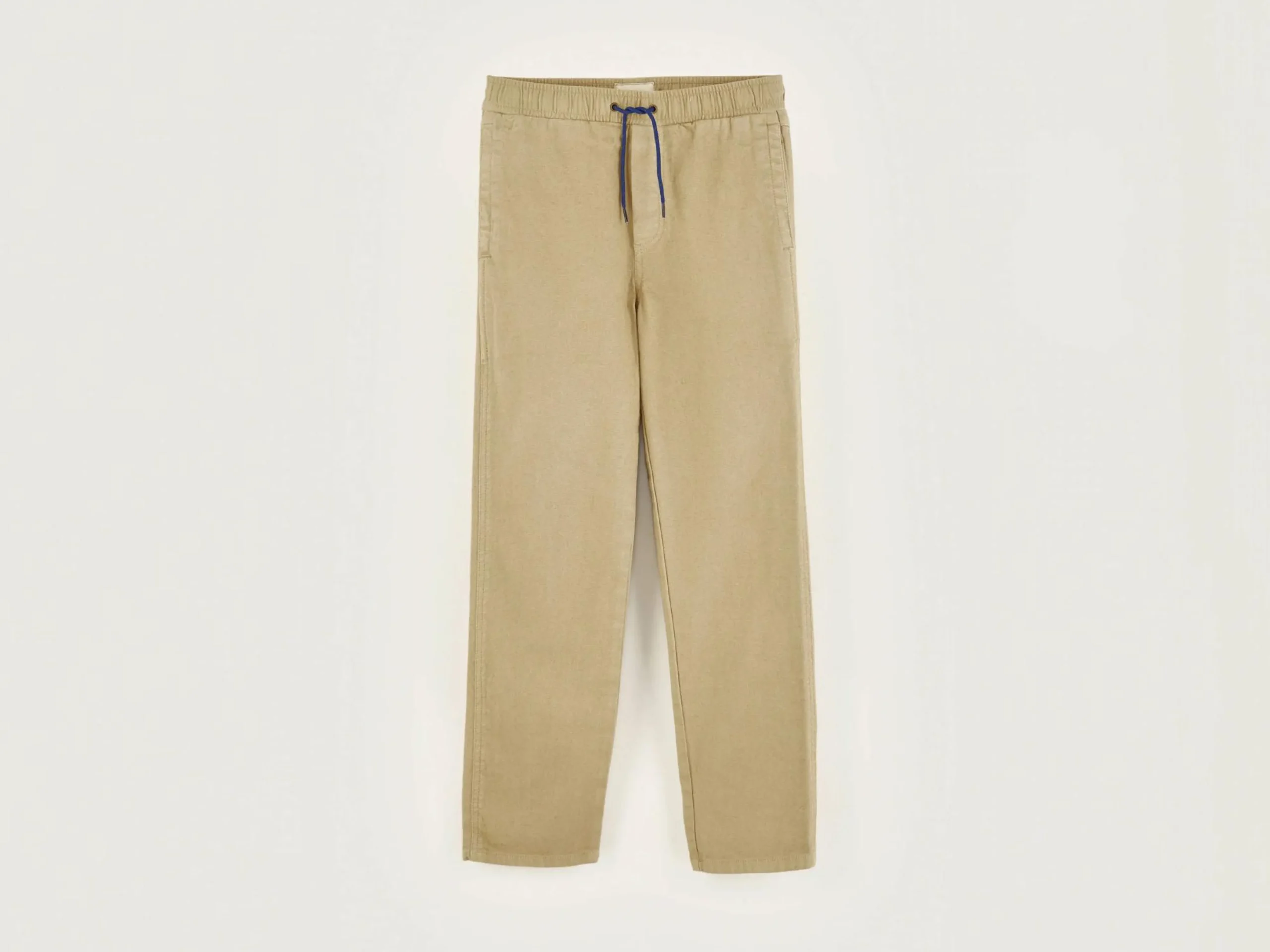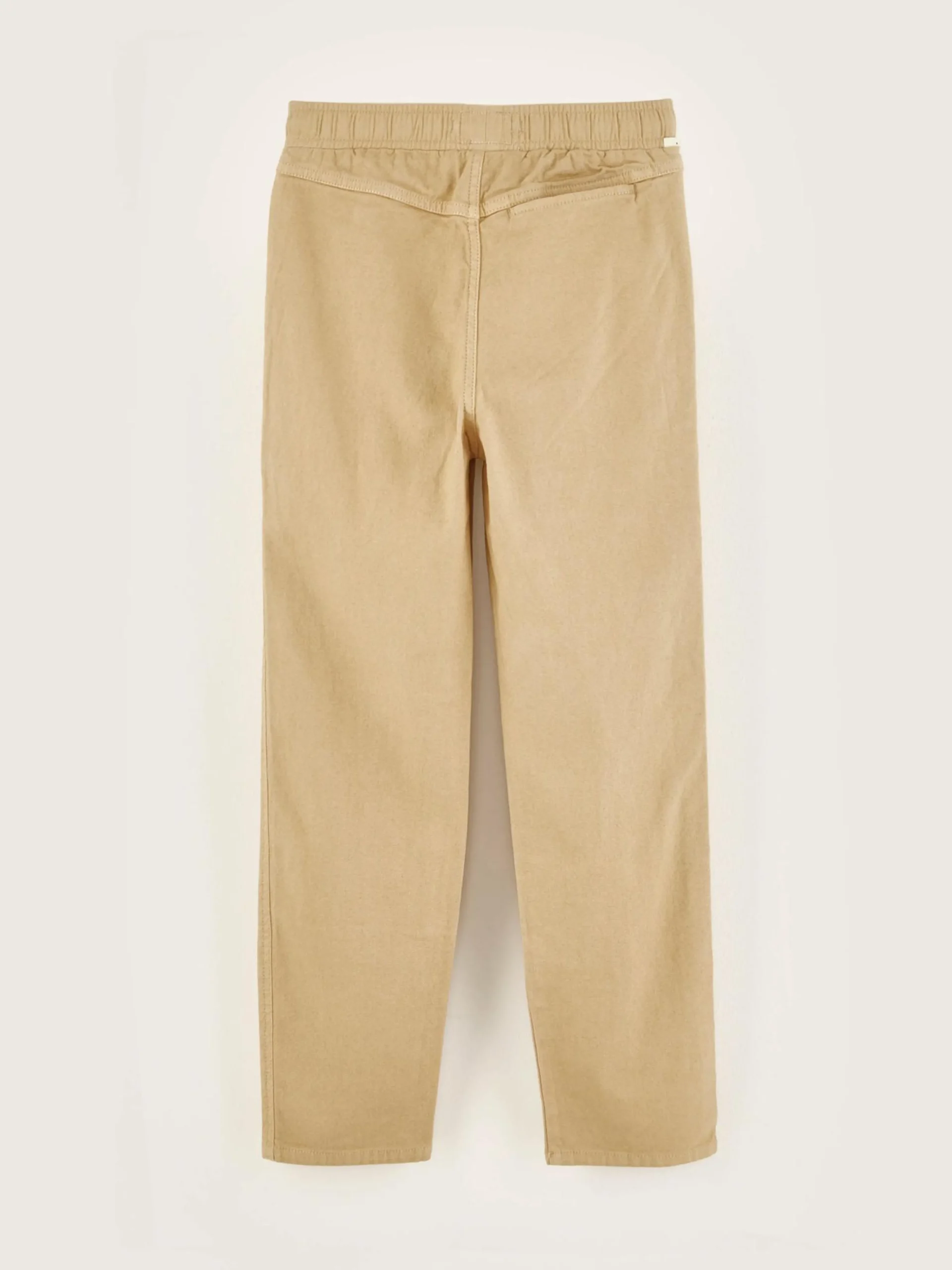 Comfortabele, greige broek van canvas katoen, met taps toelopende pijpen en elastische taille met rijgkoord.