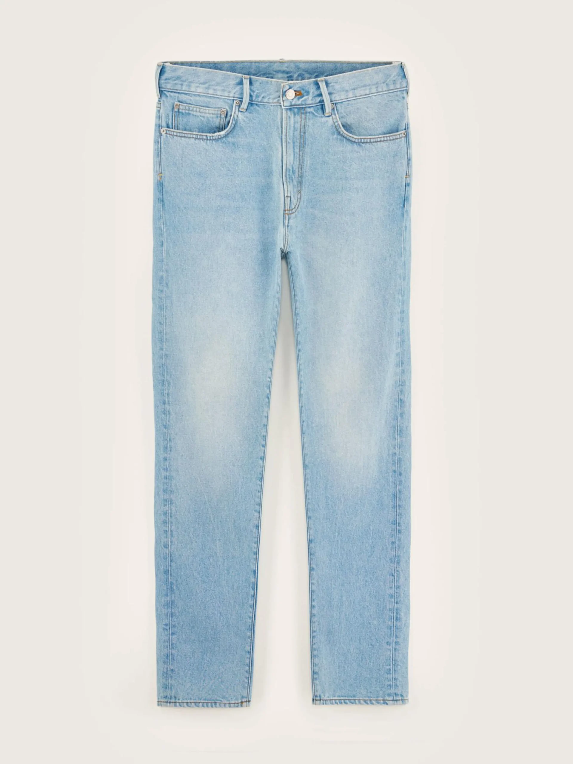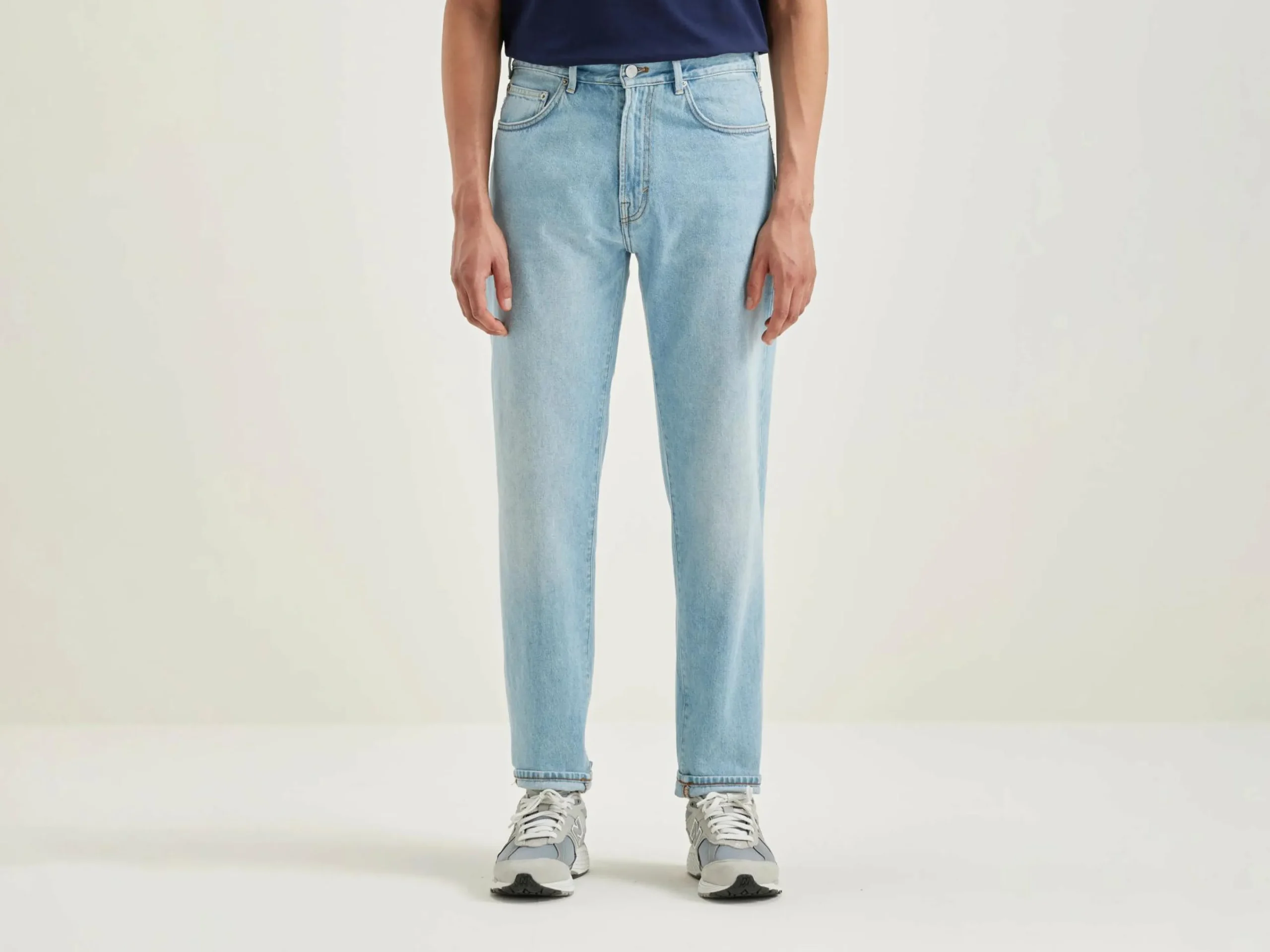 Slim fit jeans met taps toelopende pijpen in vintage lichtblauw katoendenim.