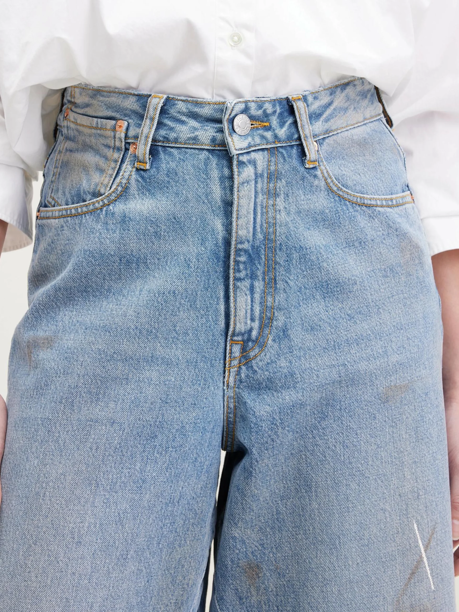 High-waist cropped jeans met brede pijpen, van vintage lichtblauw denim.