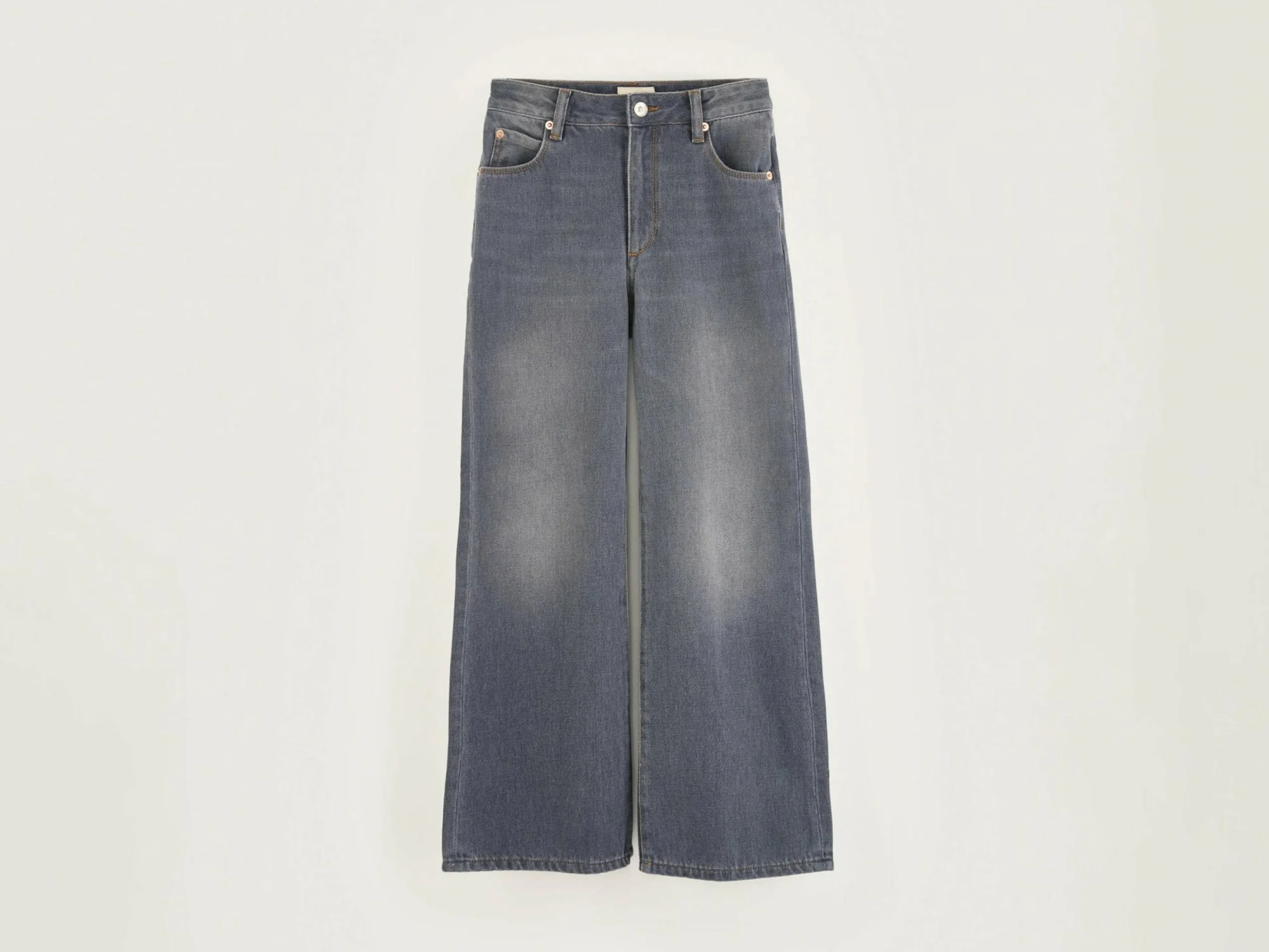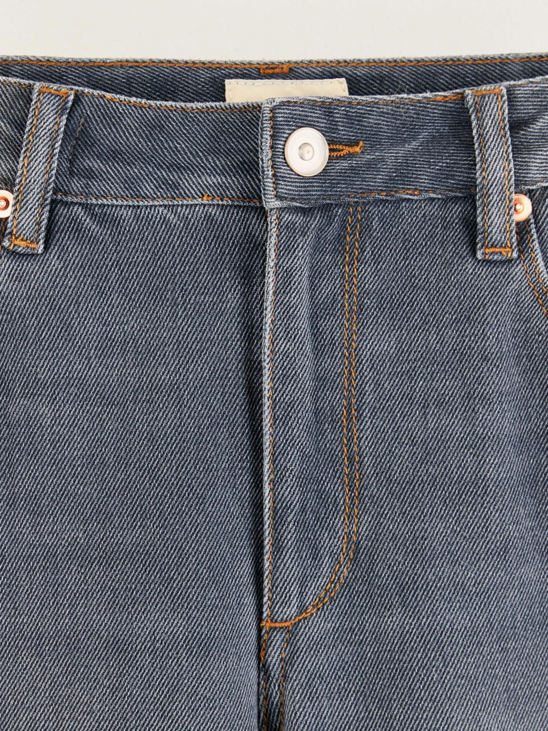 Hoge taille jeans met flared pijpen van grijs katoendenim met een versleten look.