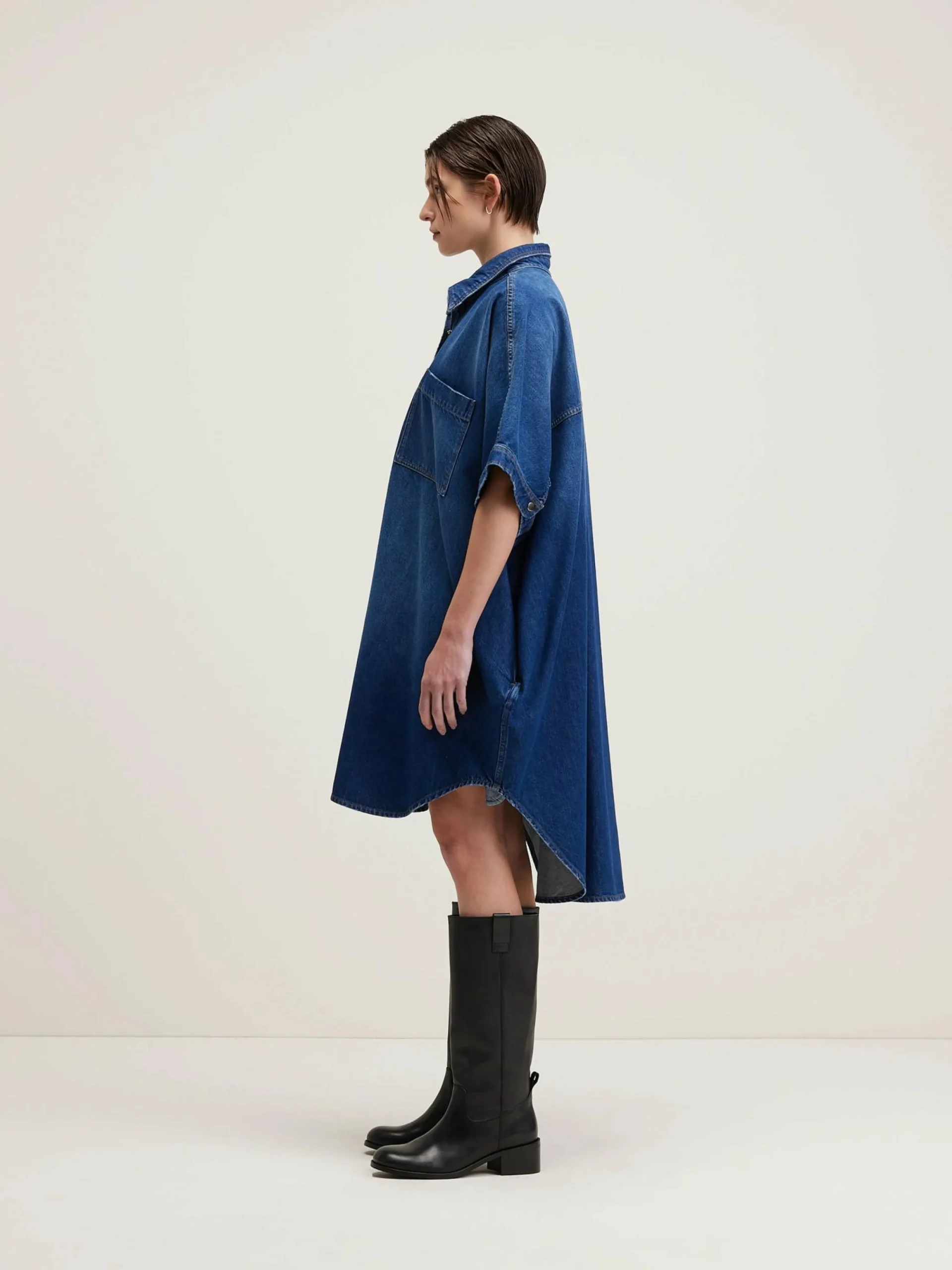 Oversizede hemdjurk van blauw stonewashed denim.
