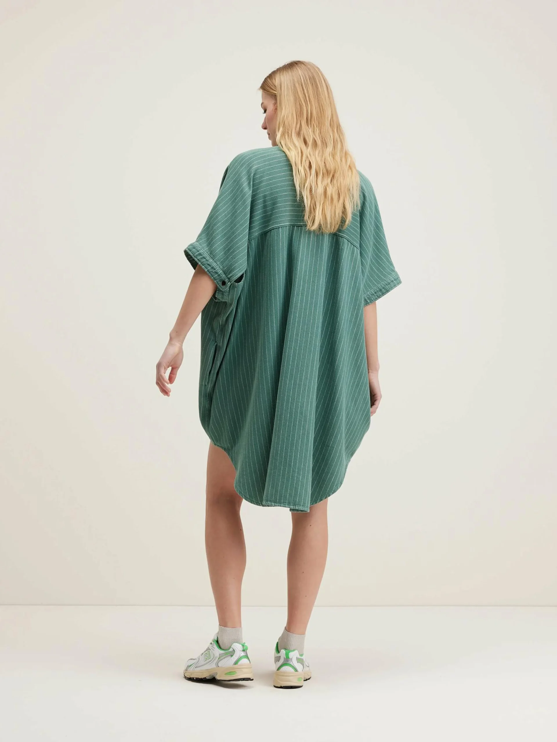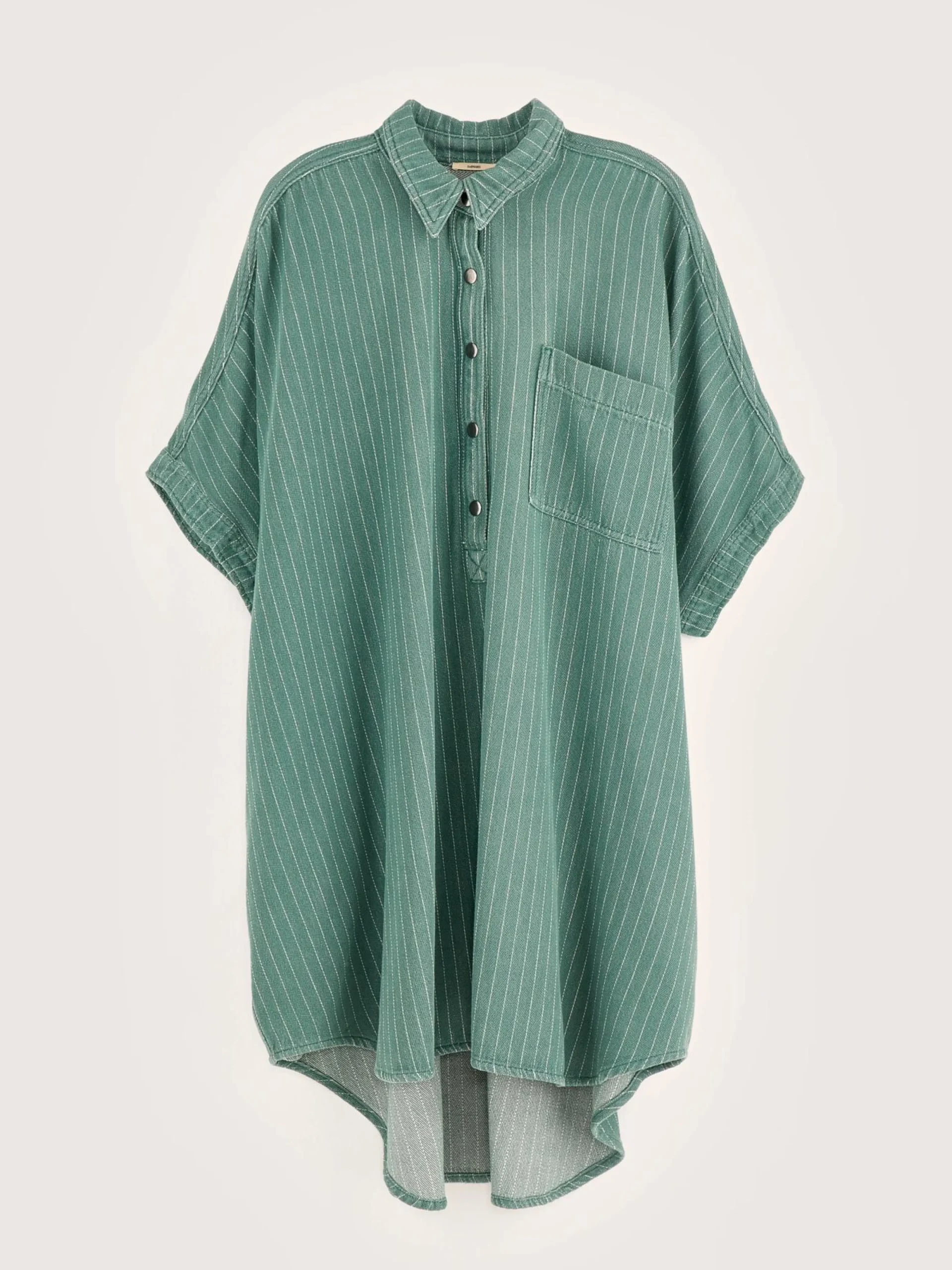 Oversizede hemdjurk van gestreept, licht stonewashed denim.