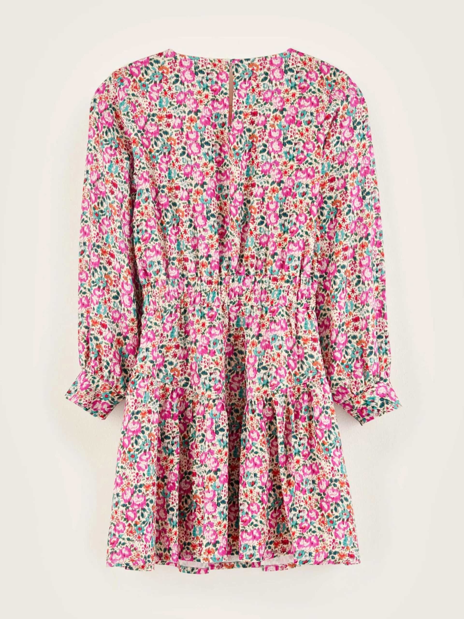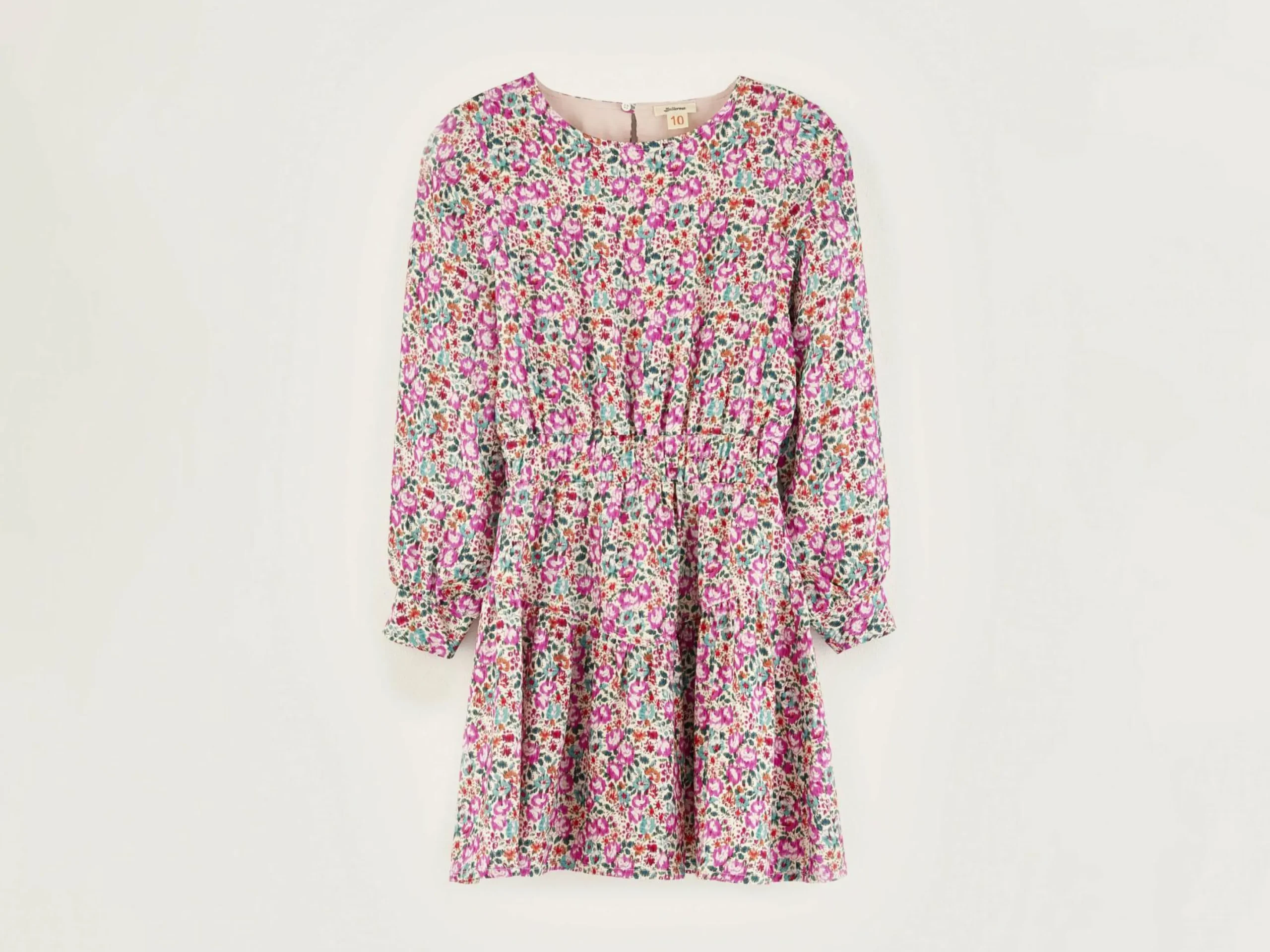 Mini-jurk met lange mouwen, van viscose en bedrukt met bloemenprint.
