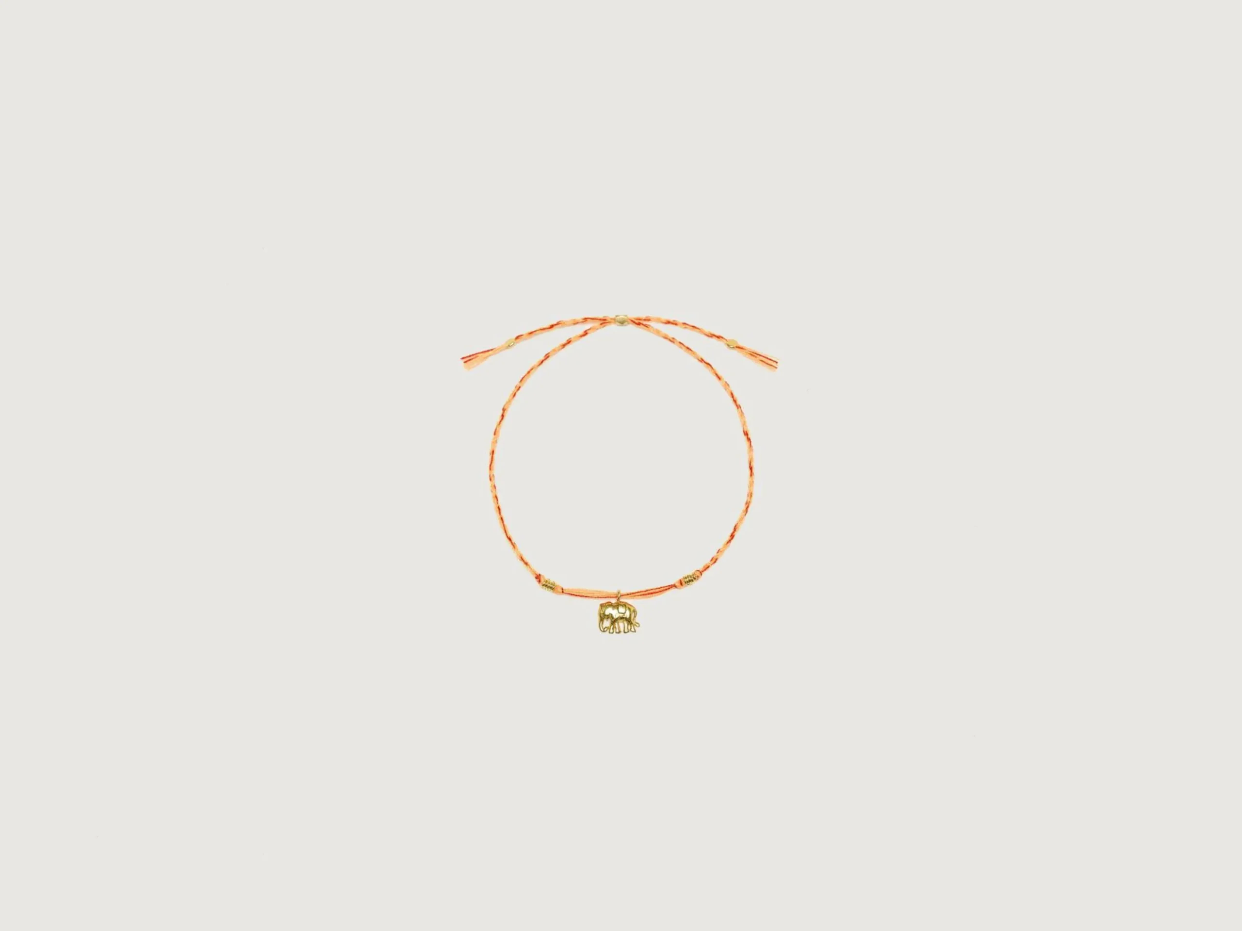 De Ellie armband is een handgemaakte, verstelbare vlecht van fijn koord versierd met een vergulde olifantenbedel.